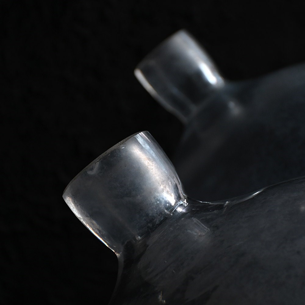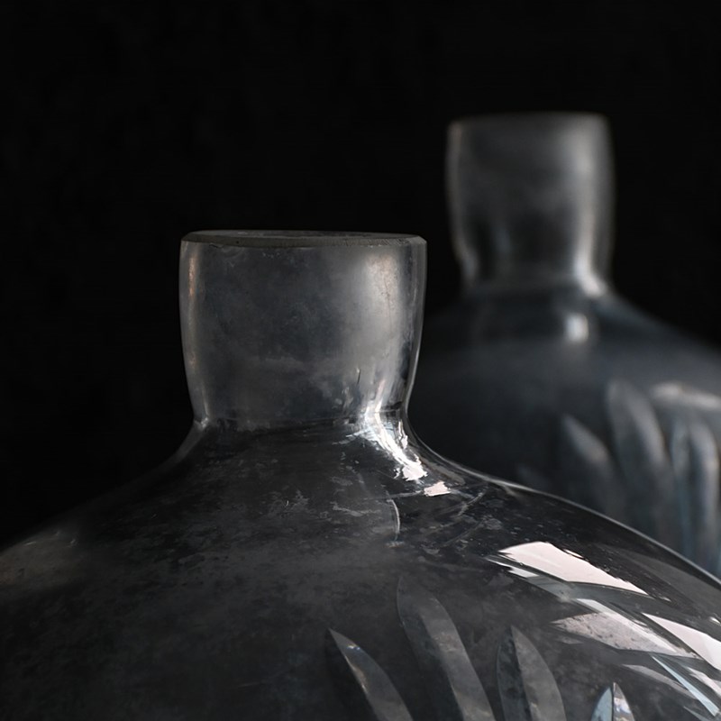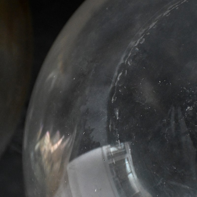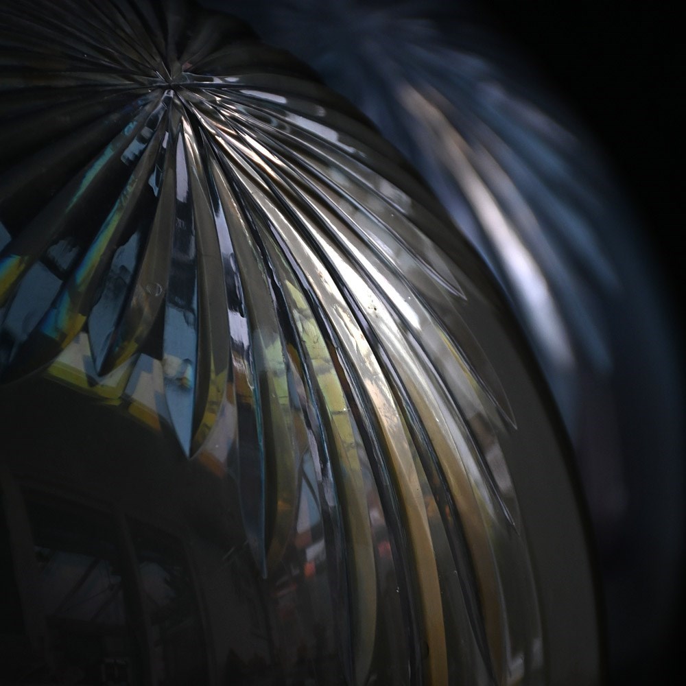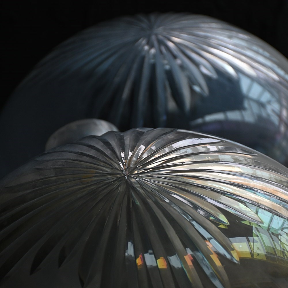 A huge pair of glass chemists advertising carboy, hand blown, with large wheel cut stars to the front, once filled with colourful liquid & graced a chemist window as part of an eye-catching advertising display.