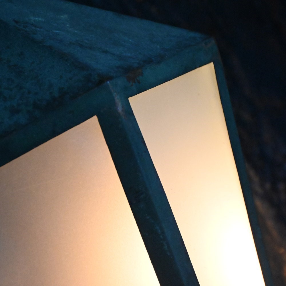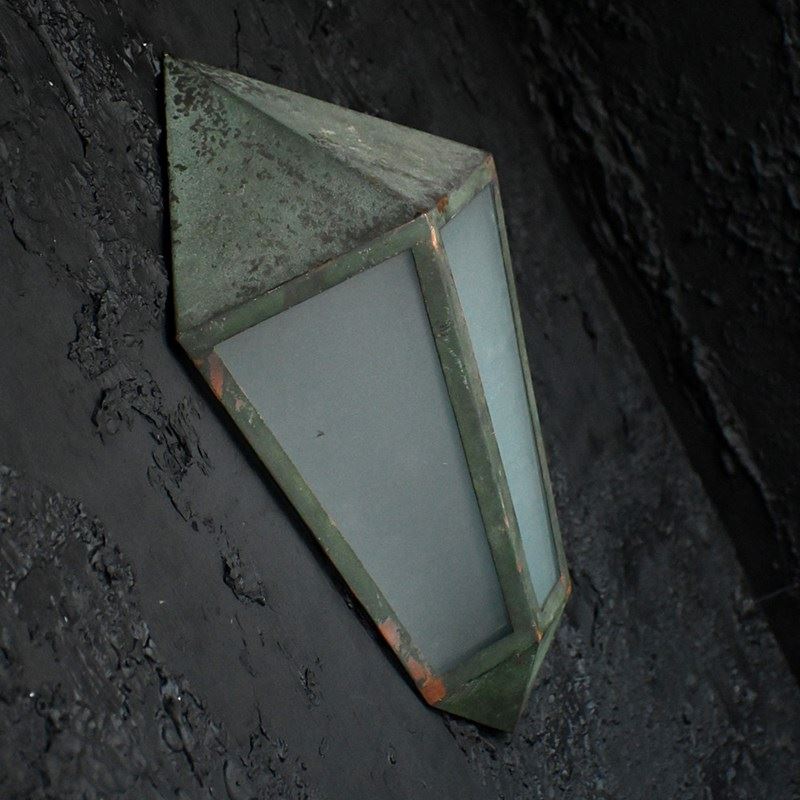 With opaque glass inserted to give a soft warm glow this English copper wall light shows nice age with a deep patina across all its surface as shown. The light needs to be wired to your needs, no light fitting is supplied as part of this sale.