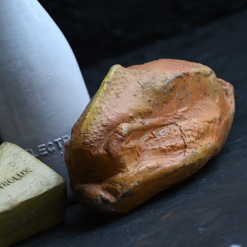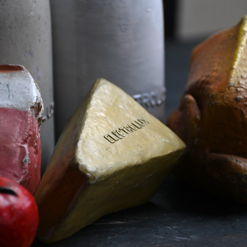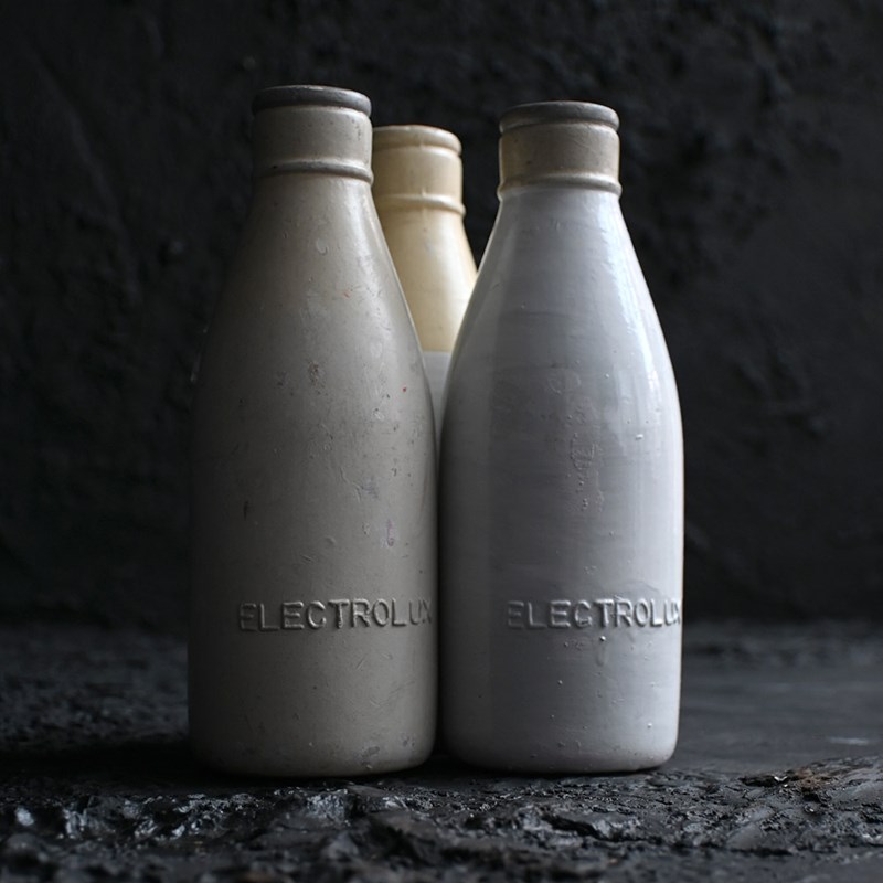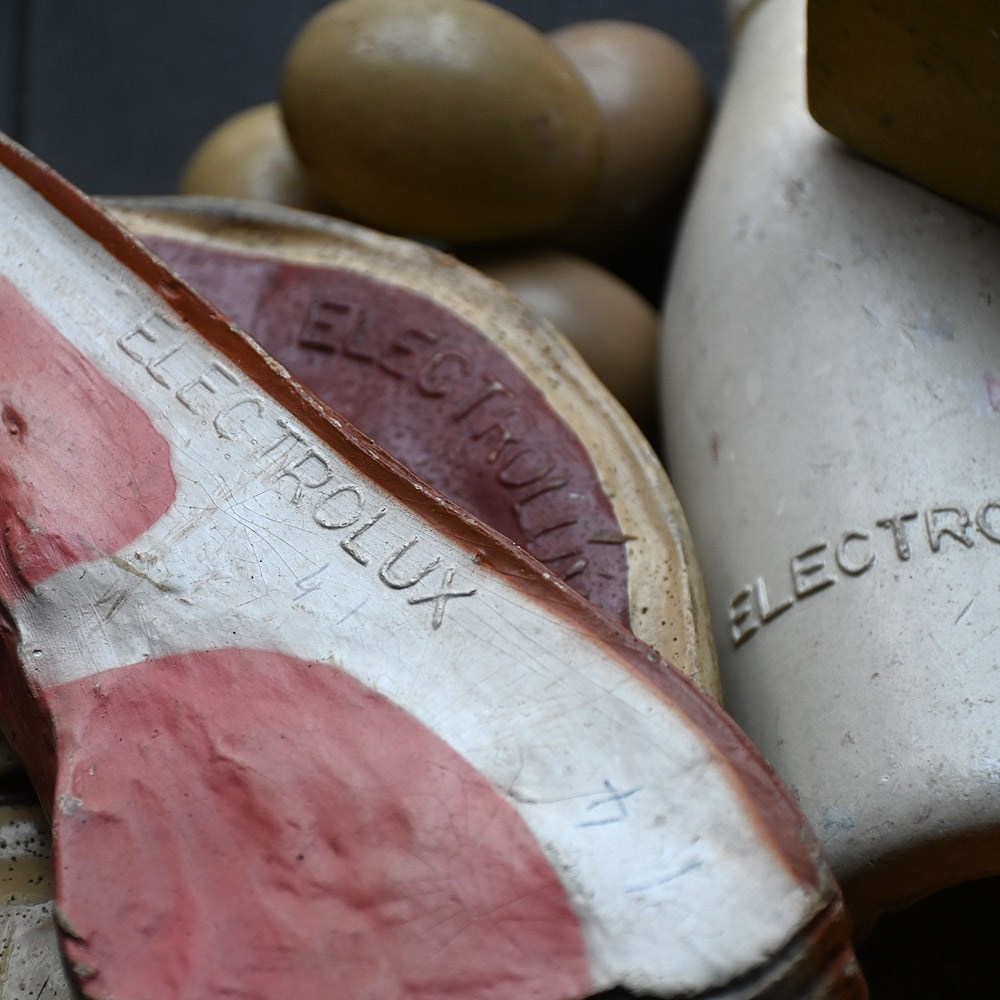 Used in the mid-20th century by Electrolux Corporation these rare survivors are in the form of hand painted hardened Ruberoid display groceries. Designed for display in point-of-sale fridges in stores and the like. Most objects shown with branded text. You just don’t see these items anymore and it’s rare to get such a complete set in original condition.