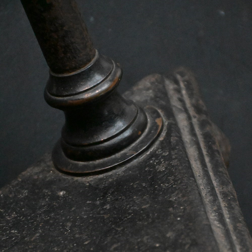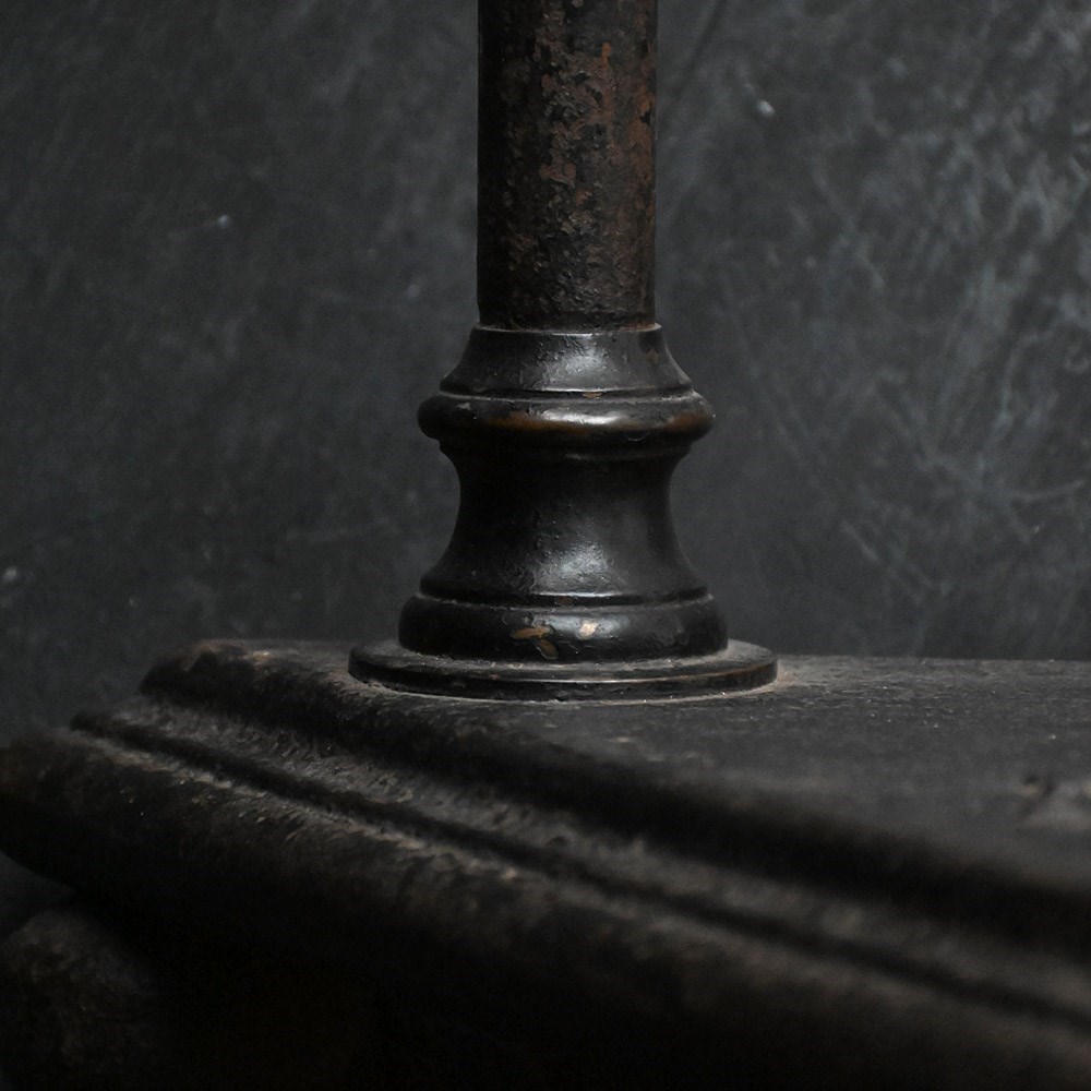 A rare example from the turn of the century in the form of an English iron and brass retail shop display. Stamped T. Griffiths & Co Dale end Birmingham at the base. A very stylish & functional interior feature. The glass shelves are detachable, with simple yet elegant design that would fit well into any home interior.