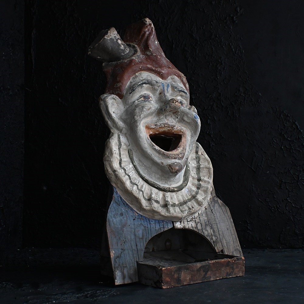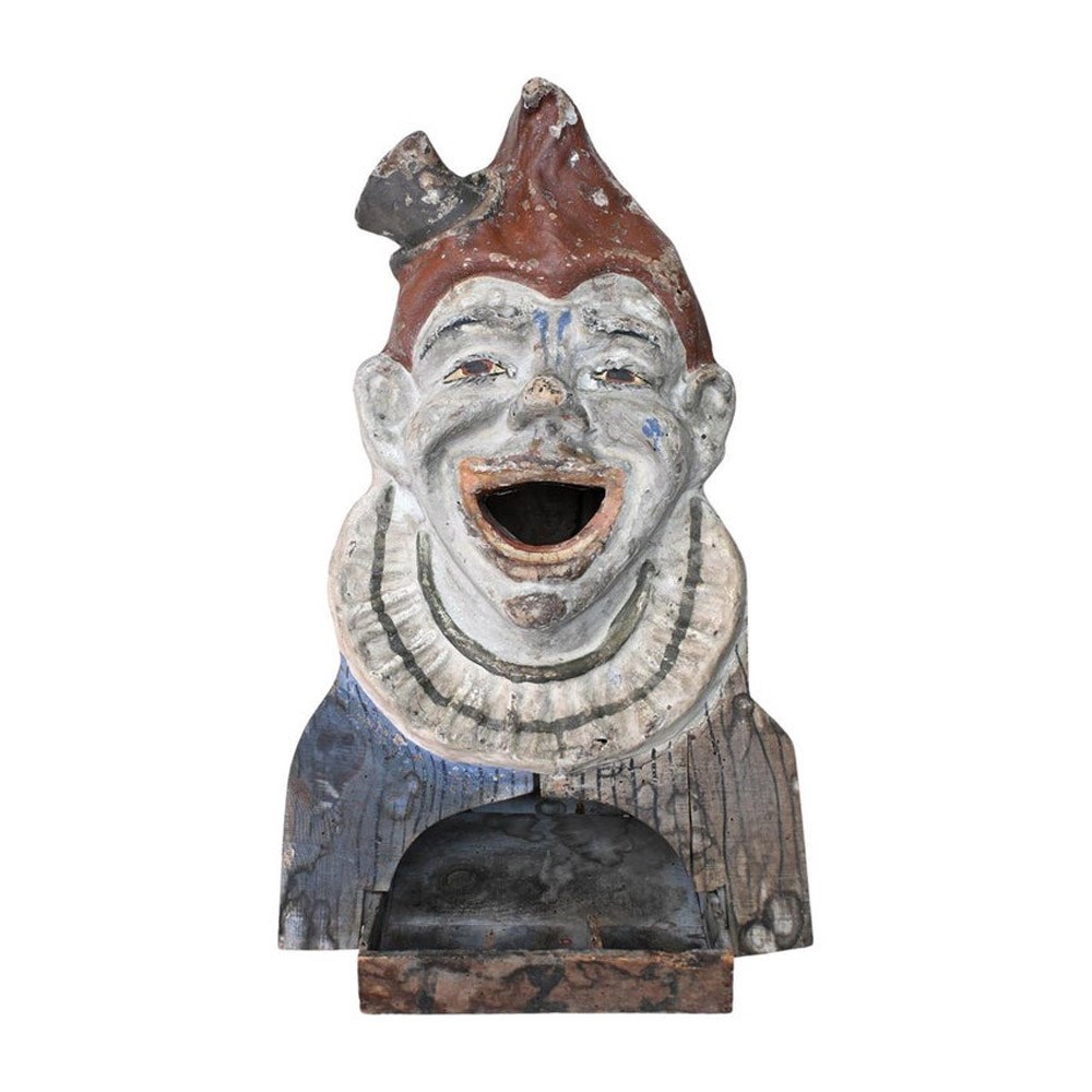 A rare example of a French Passe Boule fairground amusement game in the form of a jester/clown. Hand crafted detail with respectable age.