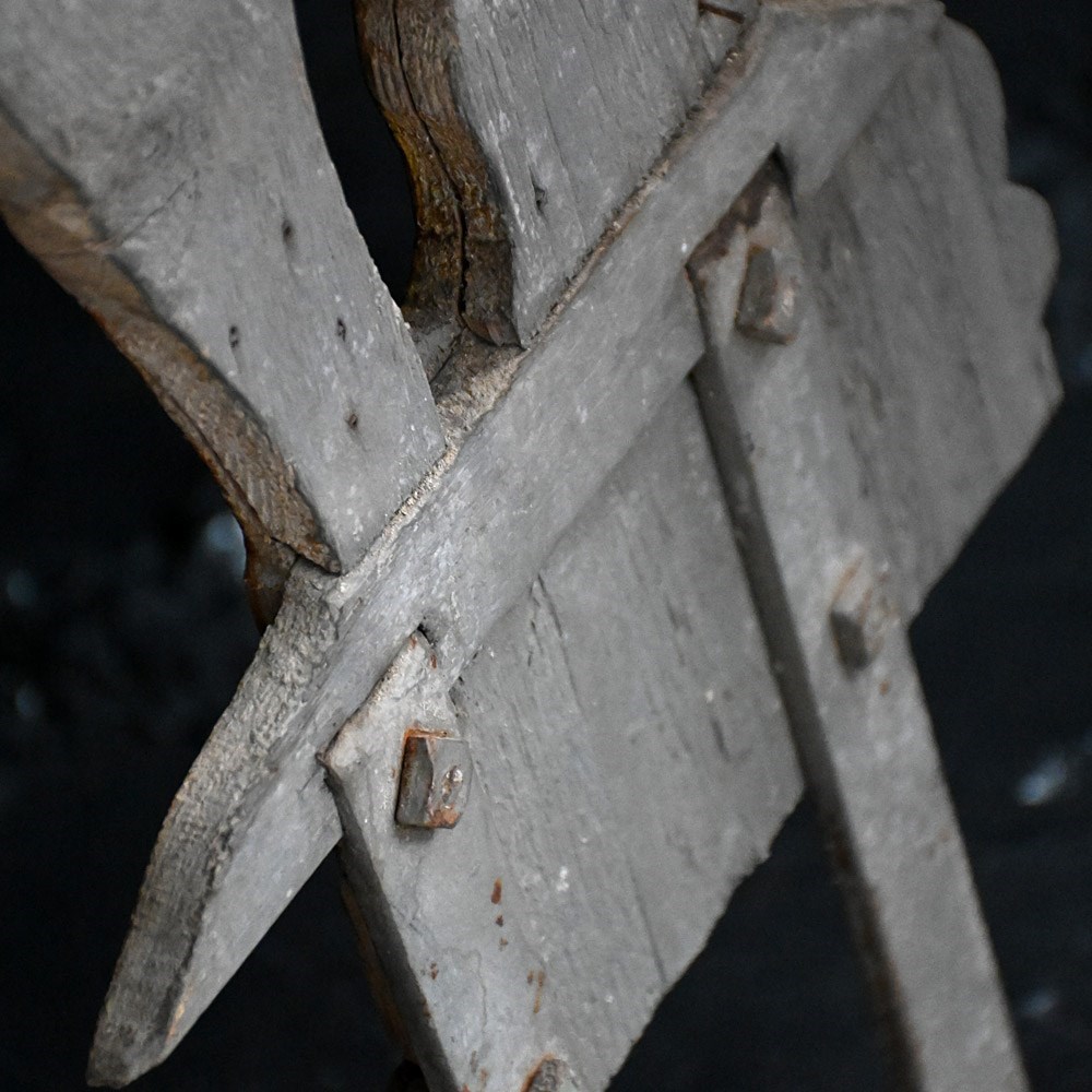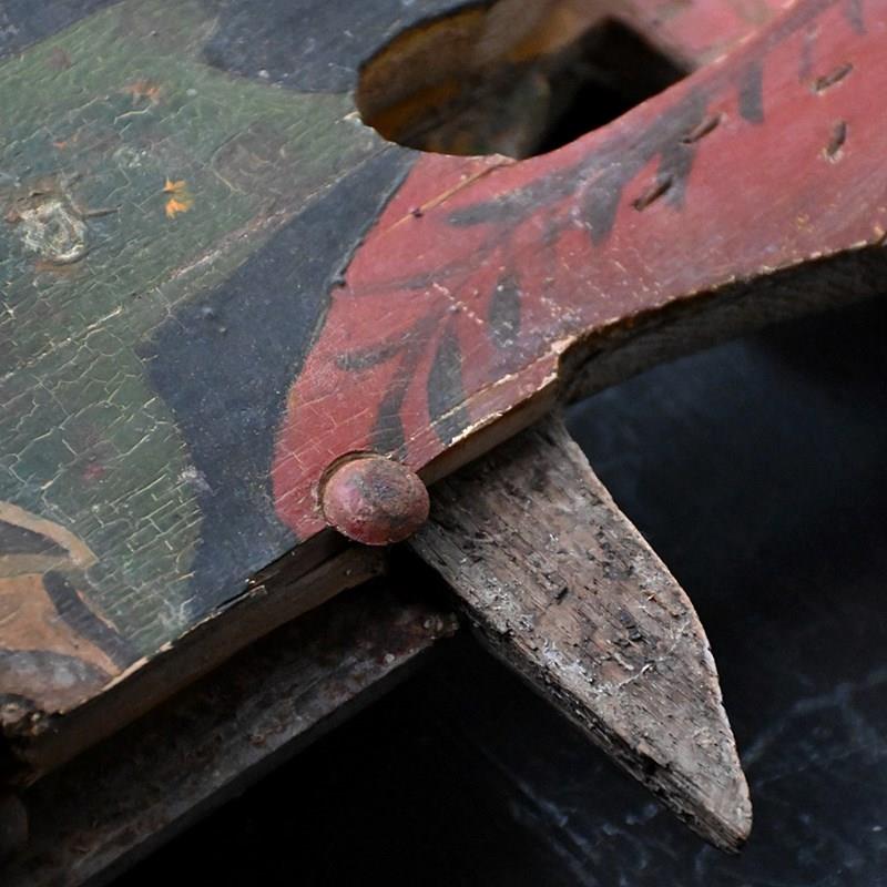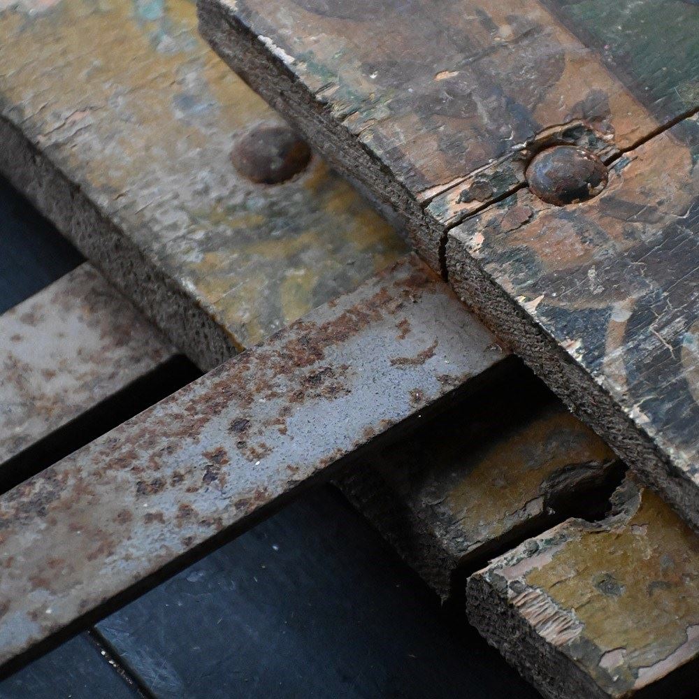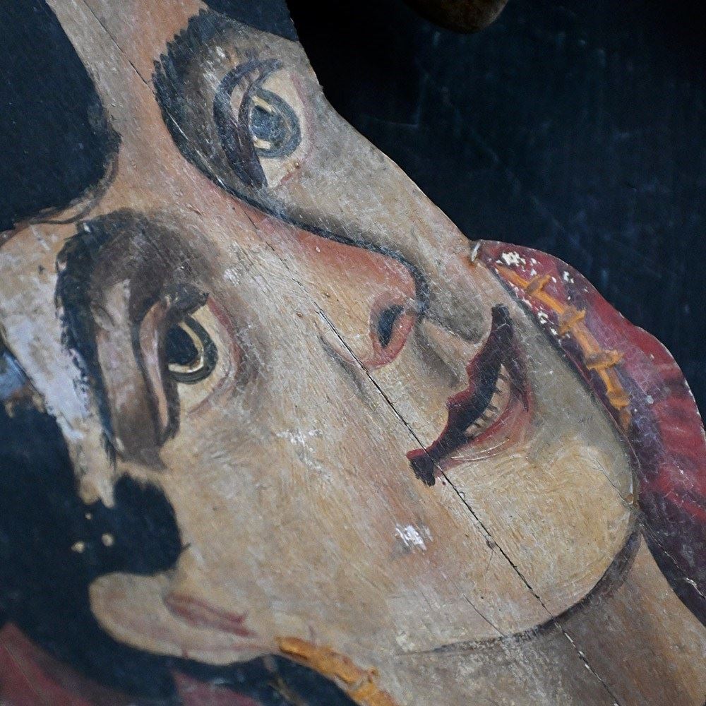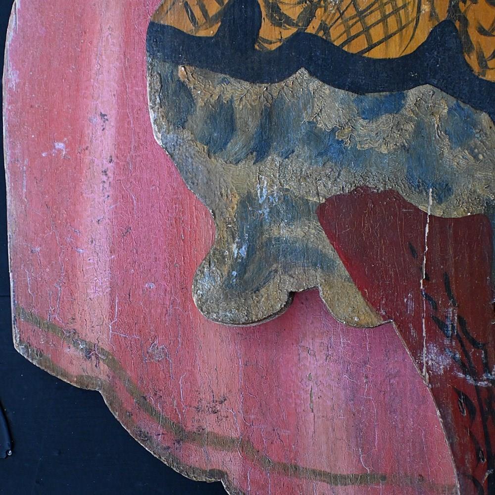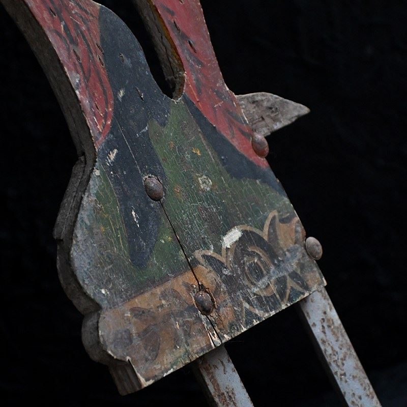 An unusual hand-crafted pair of pine fairground display figures. Hand painted detail with cast metal support base brackets still in place. We assume these figures would have been attached to a moving amusement of sorts.