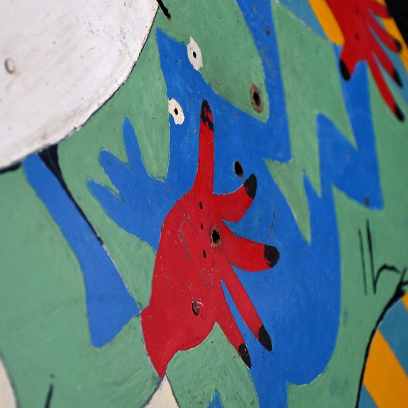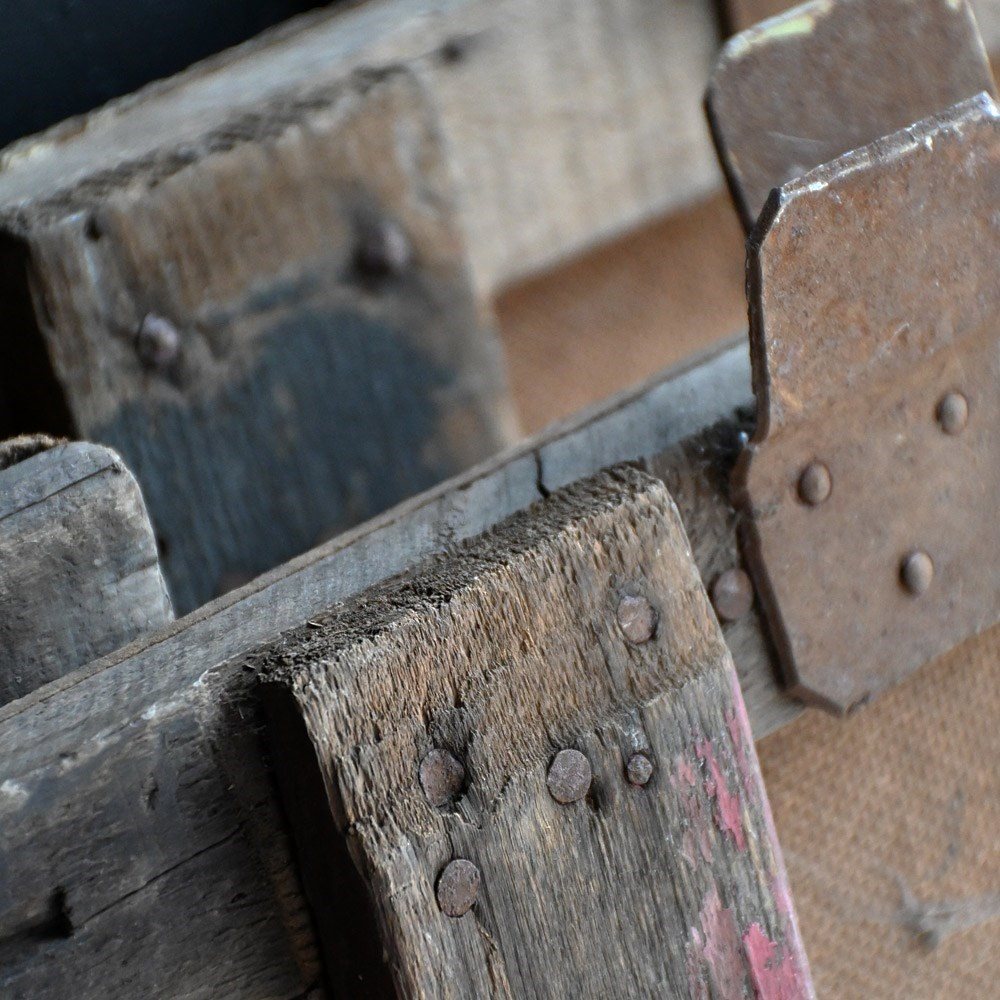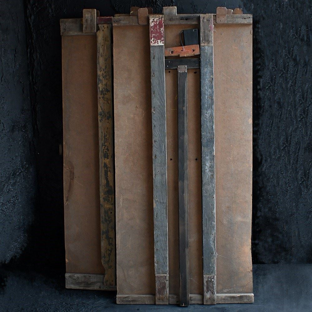 With natural wear and tear due to their age and obvious use. The wooden reverse sections show their age with rusty nails and worn wood. The from paint is firmly in place and a few sections are missing some detail (towards the edges) In overall very presentable condition and considering their use and age in very good (decorative) conditions.