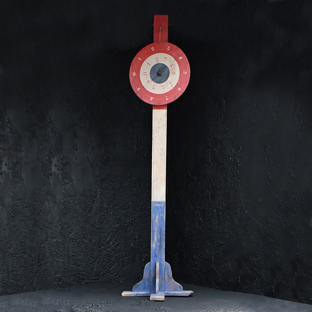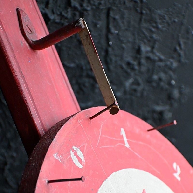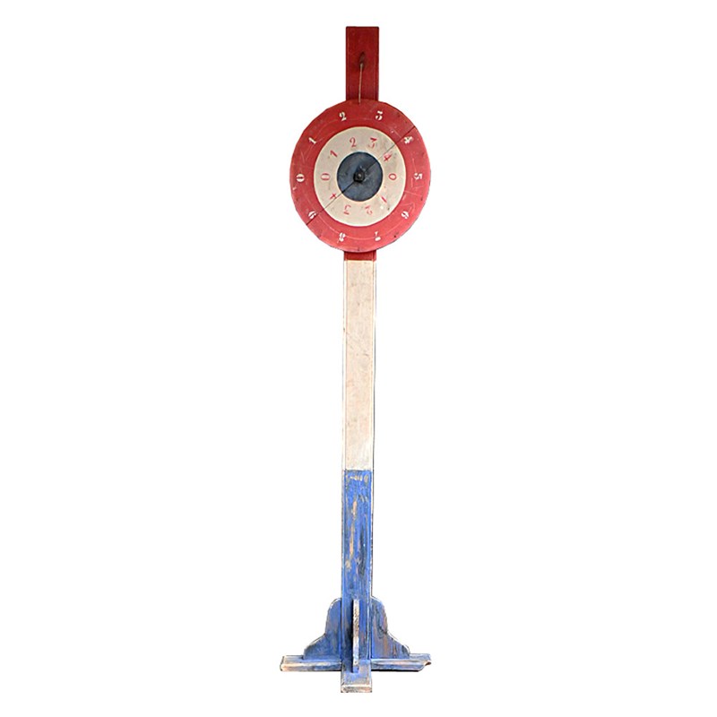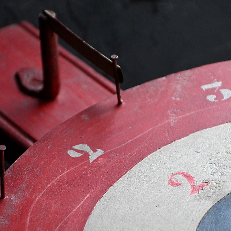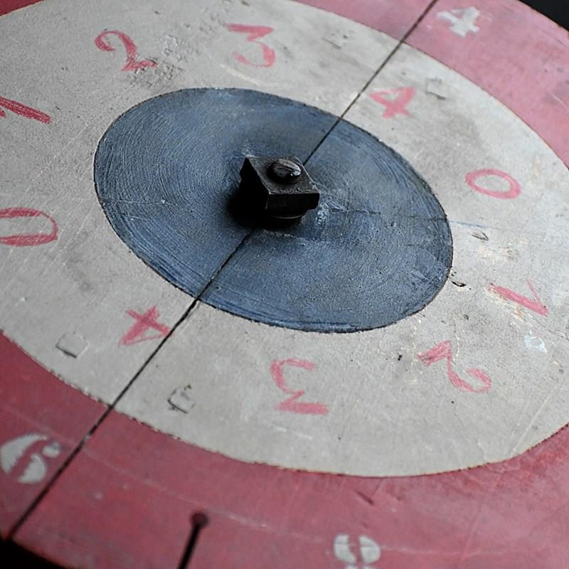 French in its origin, this early 20th century hand crafted pine roulette wheel is in full working order. With its original metal wheel stopper still in place. Stood on a 4-tier raised platform and still with all its original painted surface present. A great piece of interior décor and fun piece of fairground history.