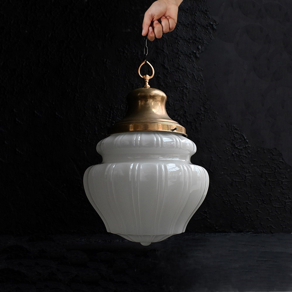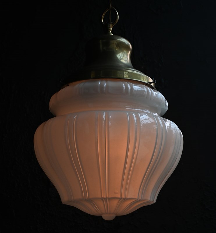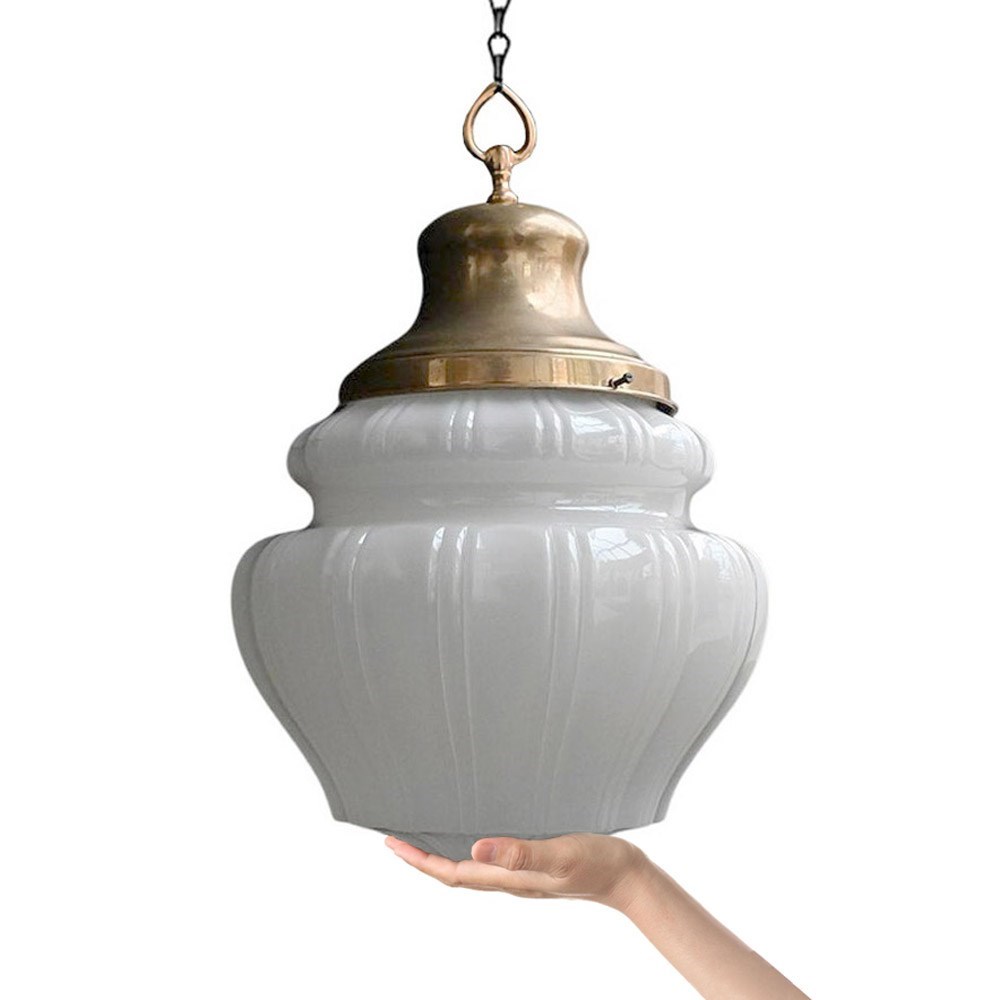 Early 20th Century Huge English Pharmacy Moonstone Glass Pendant Light