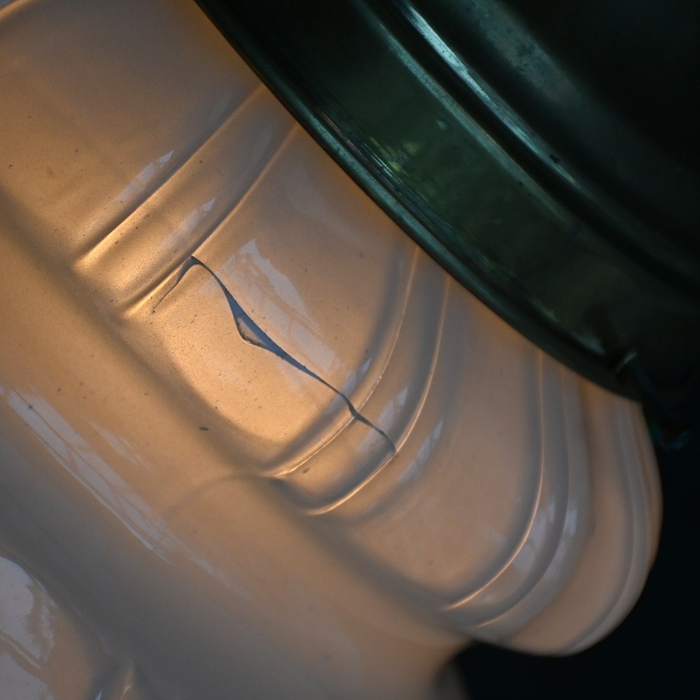 As shown in the photos provided we have detailed the 2 cracks in the glass both with and without the light on to show its effect with this damage, please observe closely, the glass is very stable even with these cracks FYI.