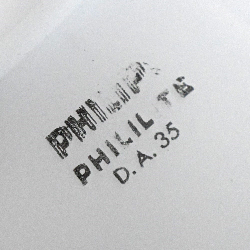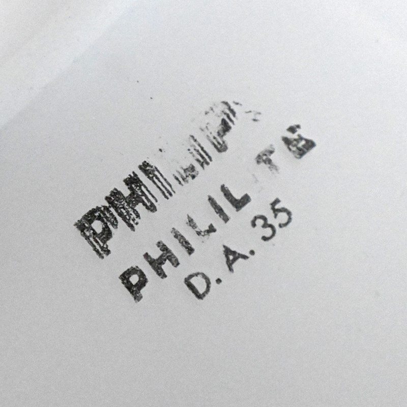 A huge example of a mid-20th century Philips glass pendant light with brass gallery. In overall good condition and ready to be rewired with brass bayonet in place.