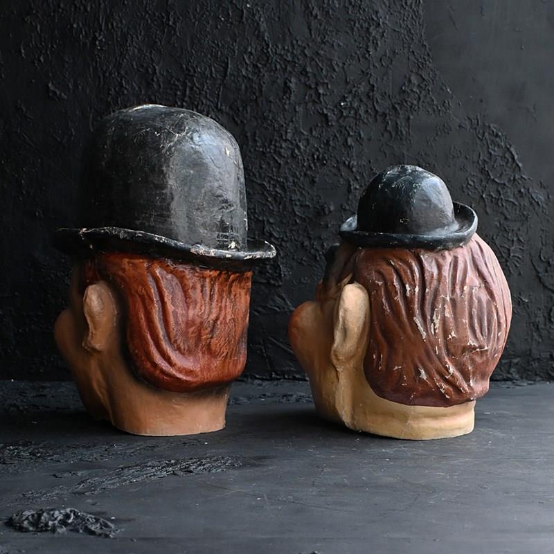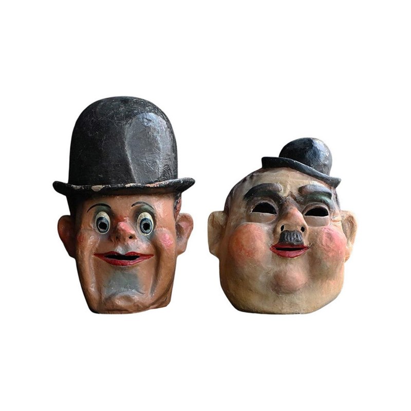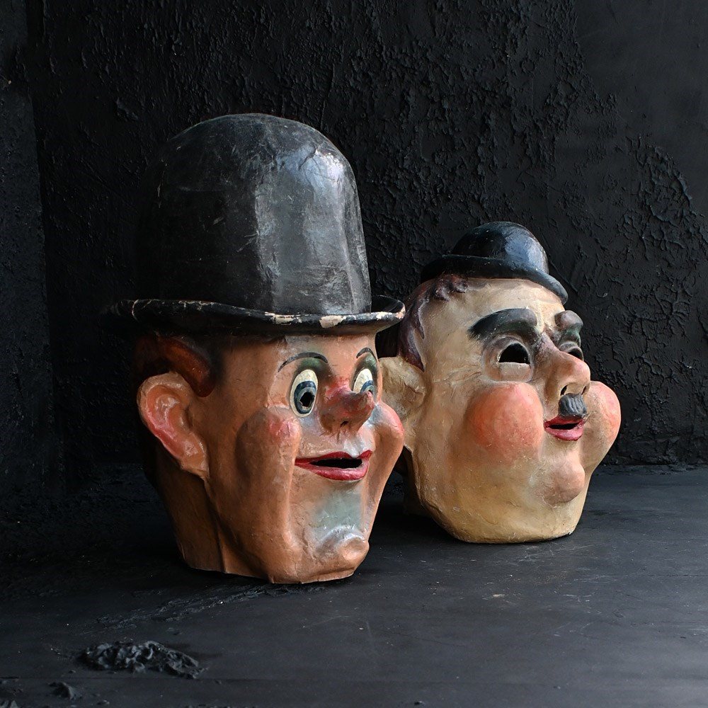 Pair of Mid-20th Century Laurel and Hardy Theatre Masks