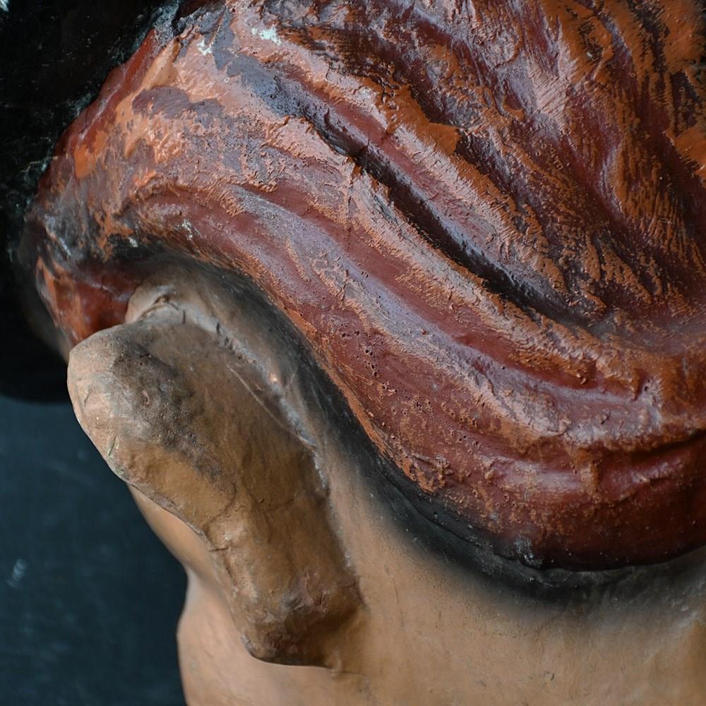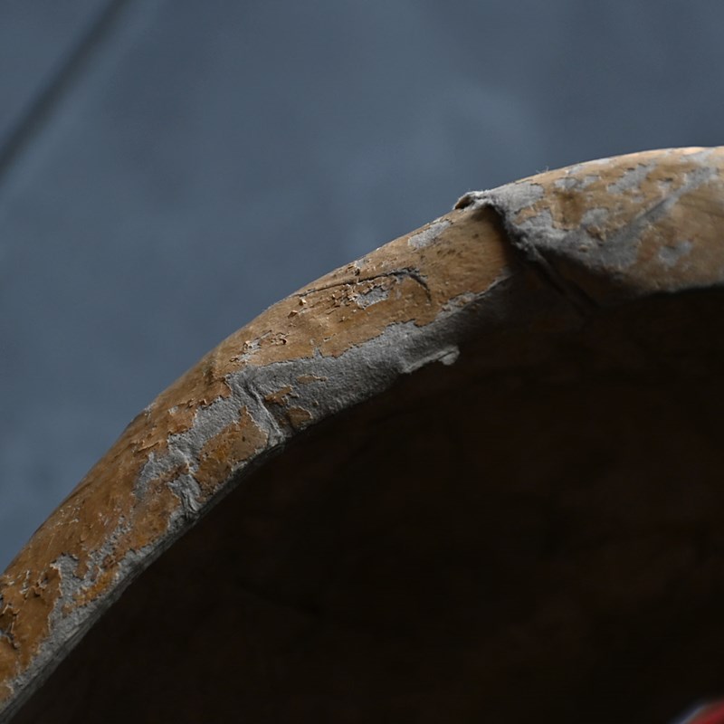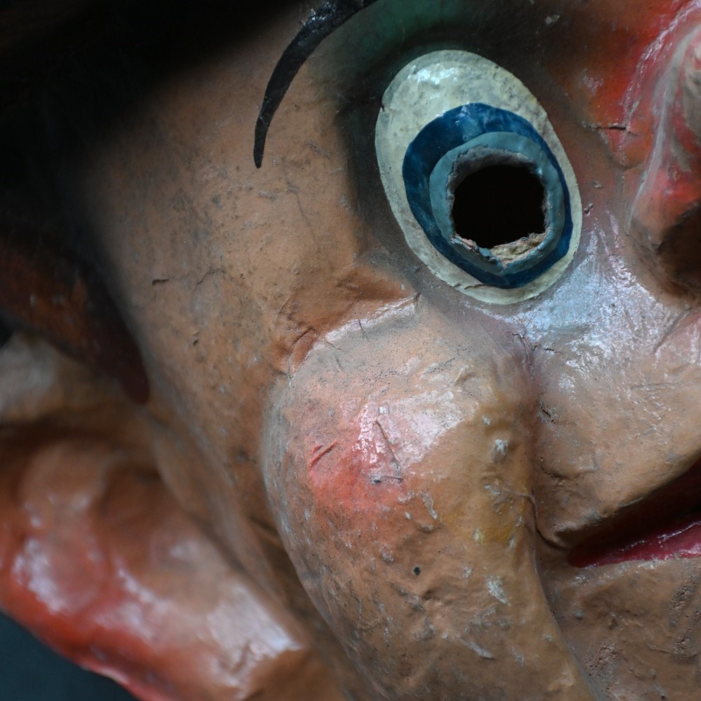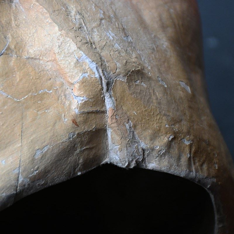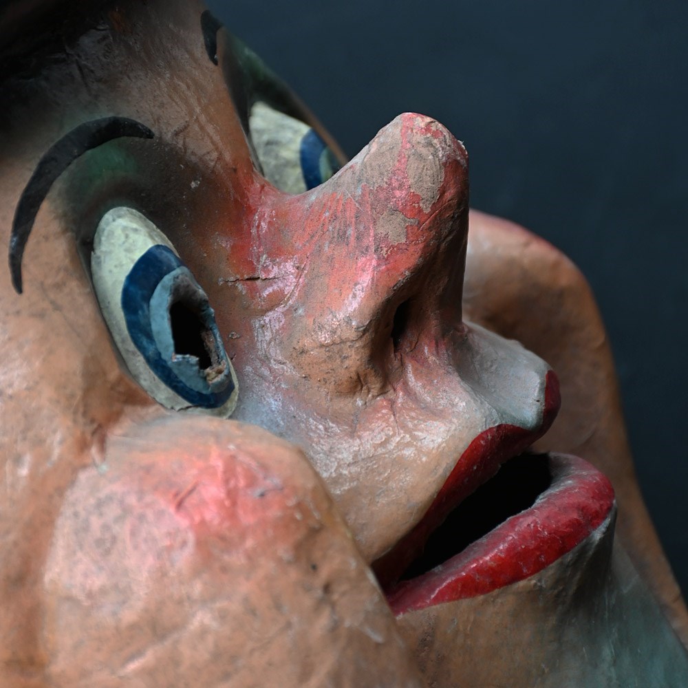 Completely solid in structure and form, aged surface area as shown with loss of paint and aged surface cracks and splits to the paper around the neck area. Both these masks are solid and still in completely original untouched condition.