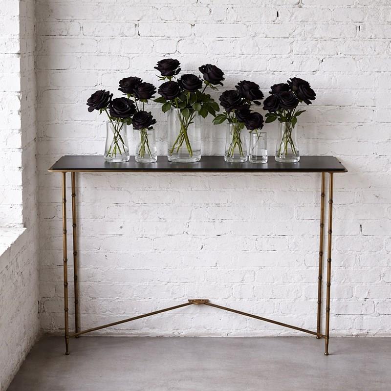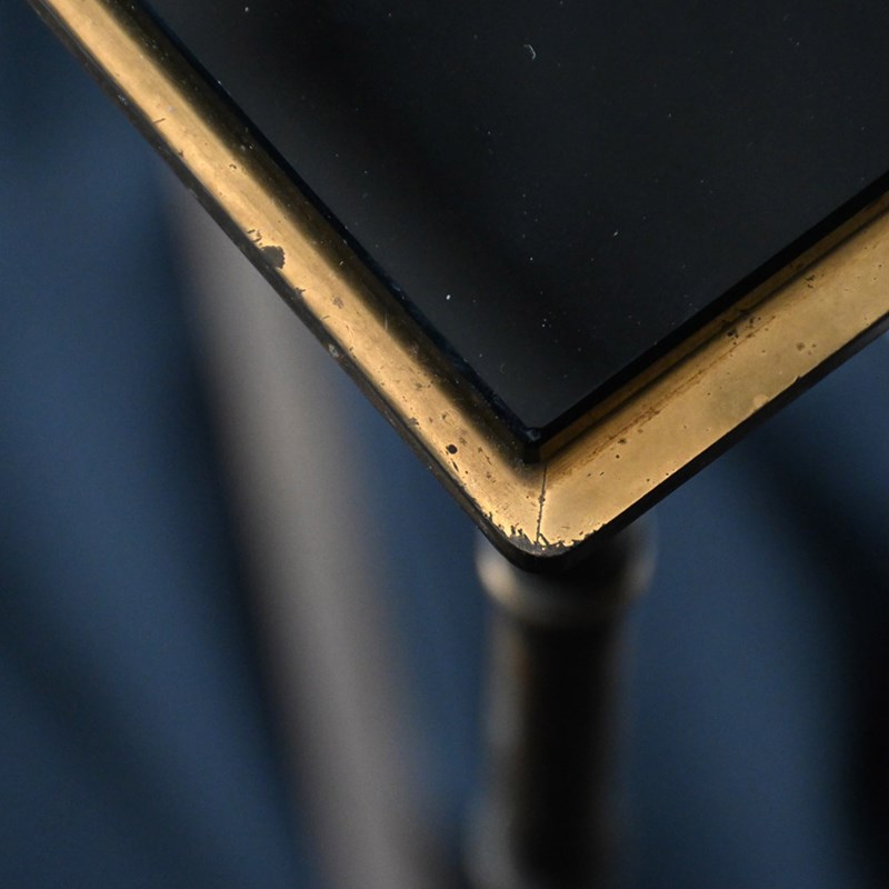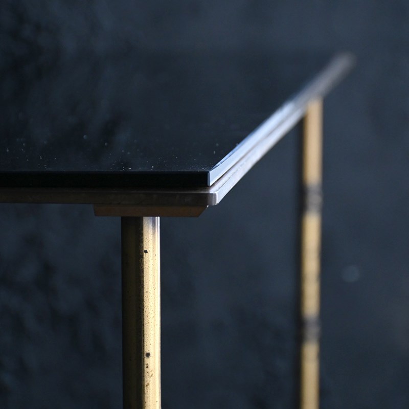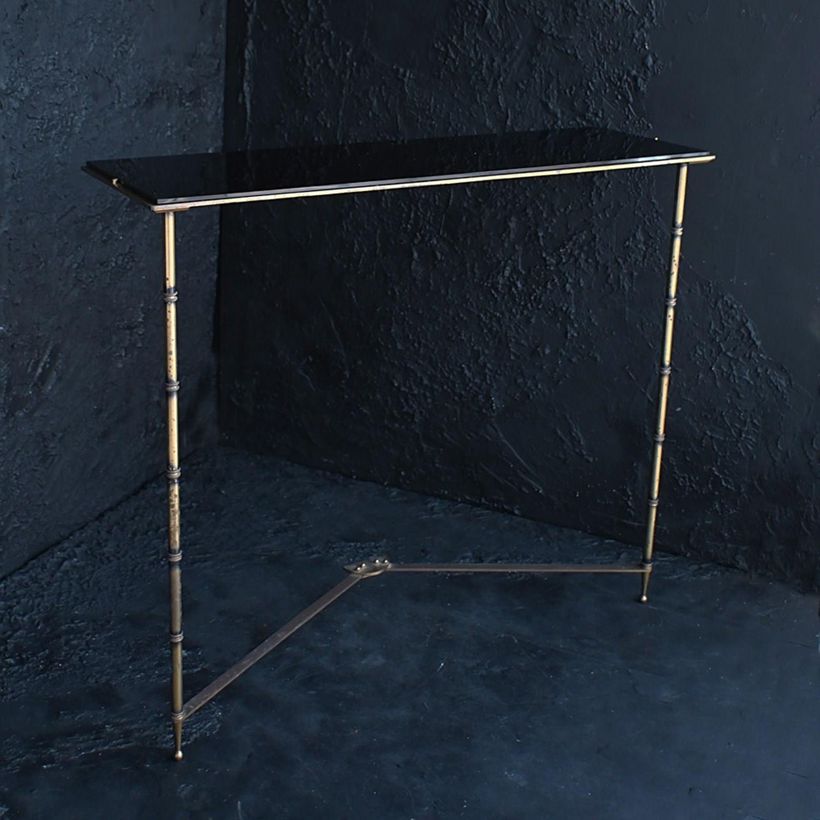 An elegant and stylish piece of mid-20th century furniture attributed to the master craftsman Maison Bauges. With its original detached black glass, slender lines and minimalistic design, this example would look perfect sat in any elegant or stylish hallway entrance.