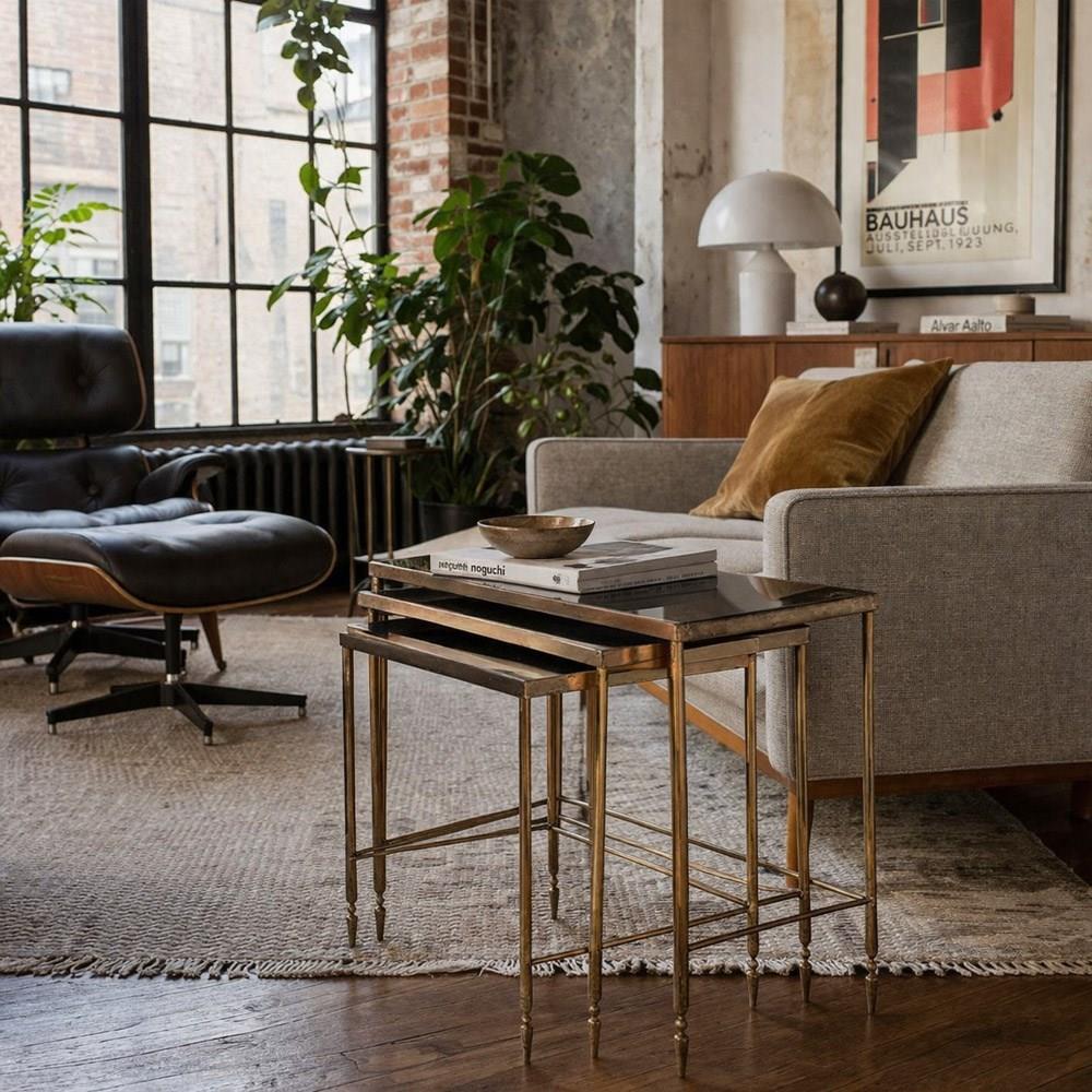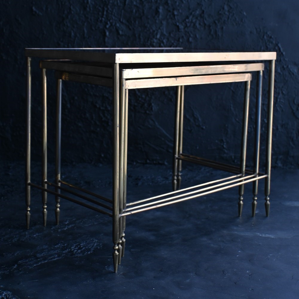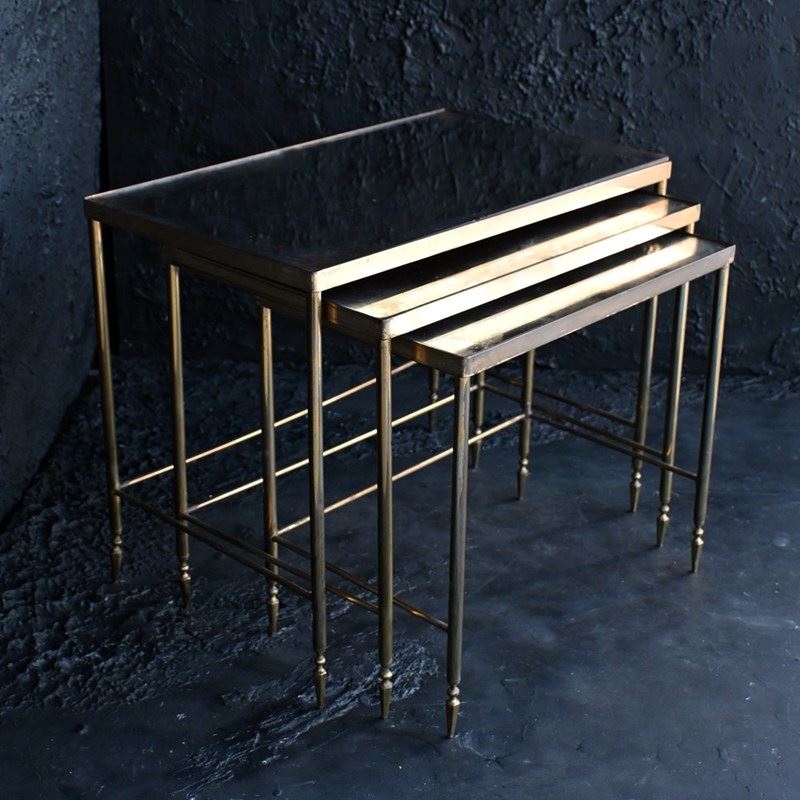Mid-20th Century Brass and original mirror Masion Jansen nesting tables