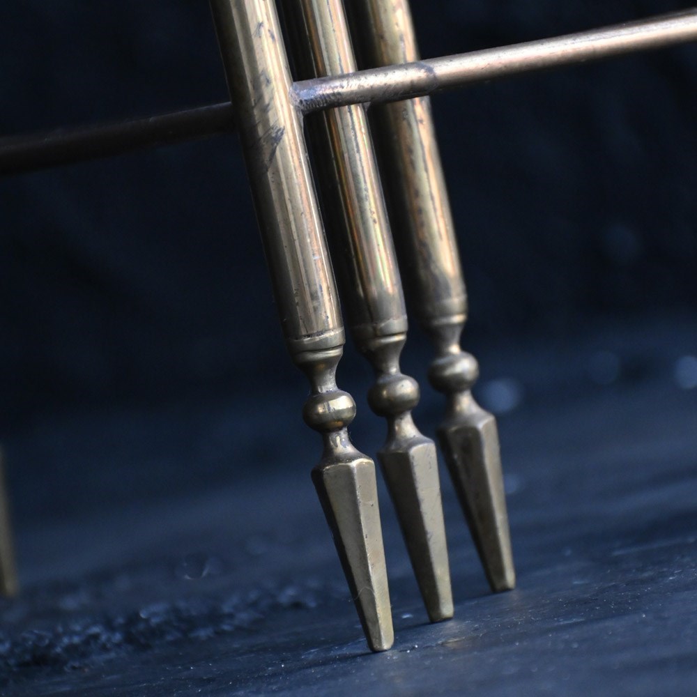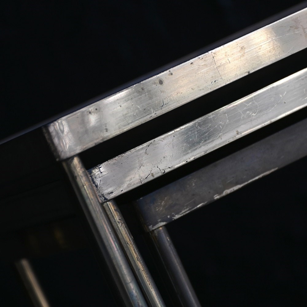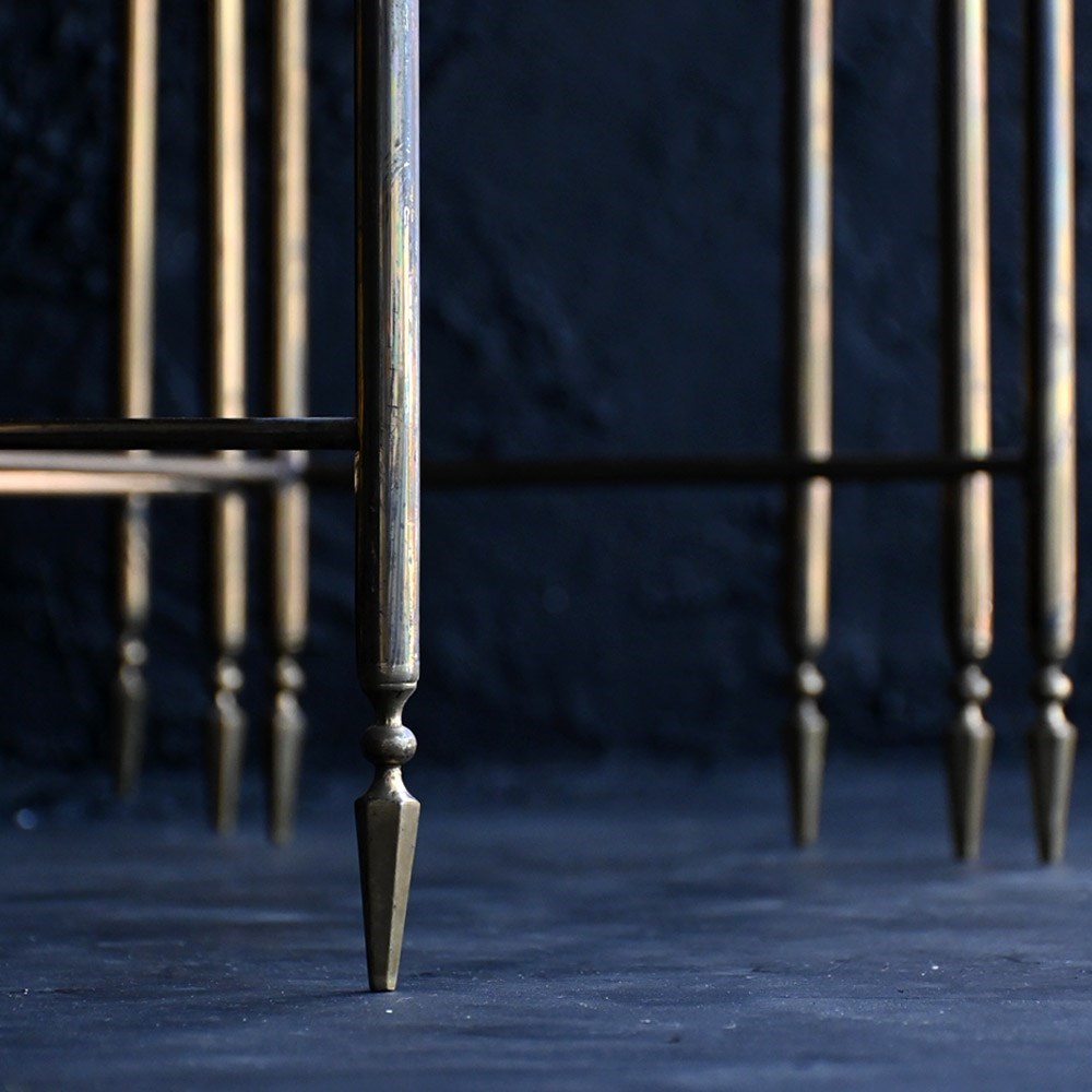 Still with their original foxed mirror removable plates, these nest of 3 Maison Jansen brass tables date to the mid-20th century and are elegant in form with slender detail, very functional and highly stylish in this original condition.