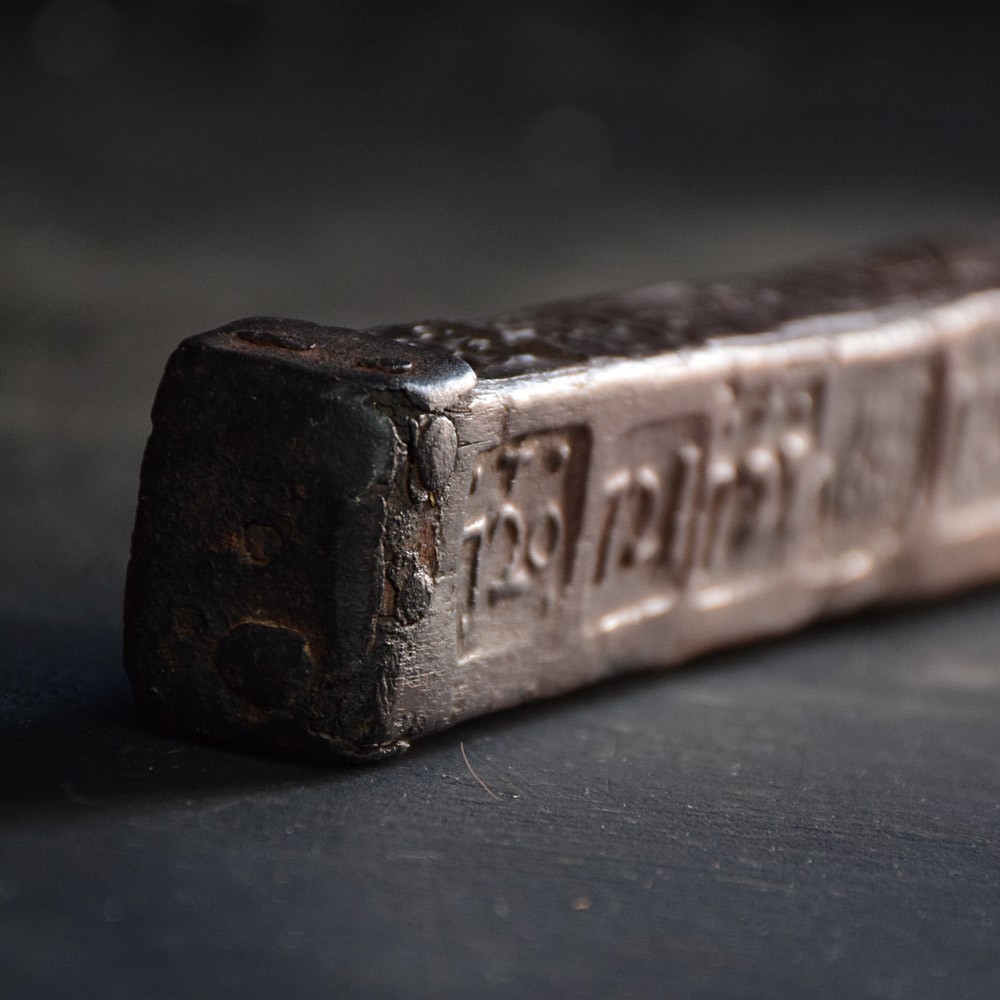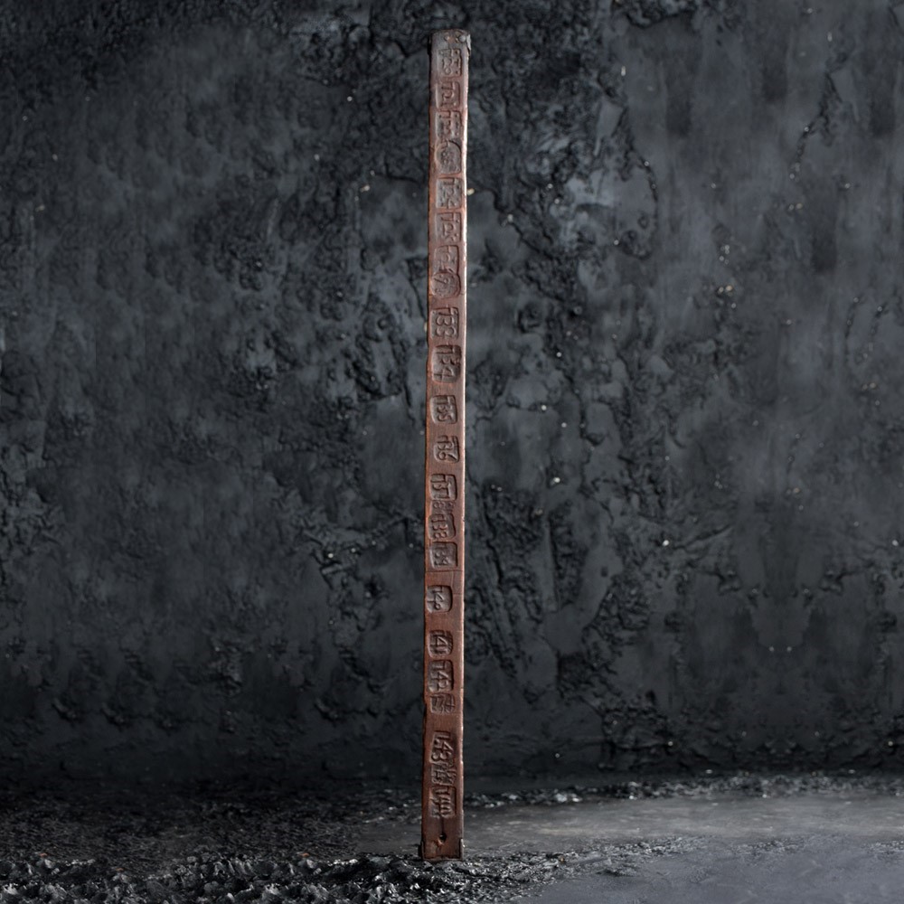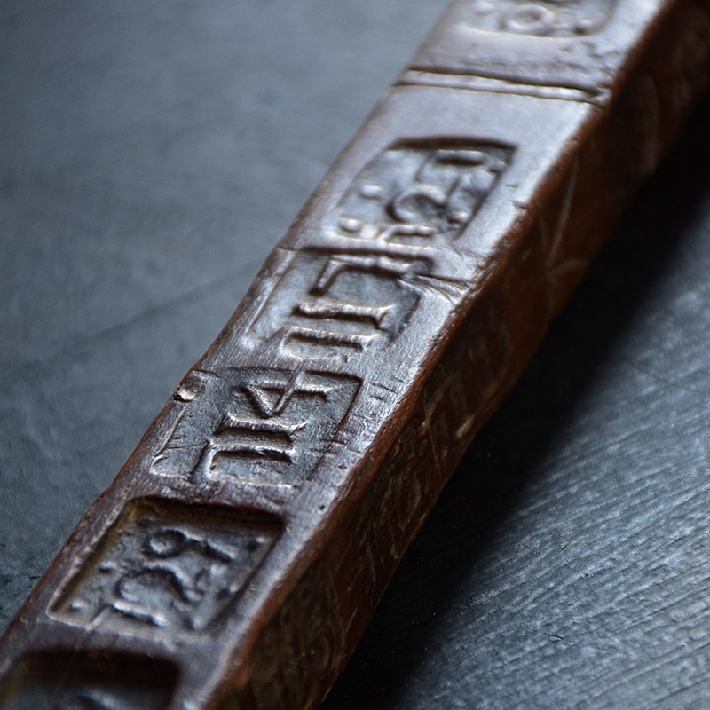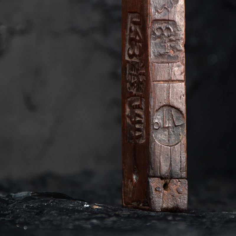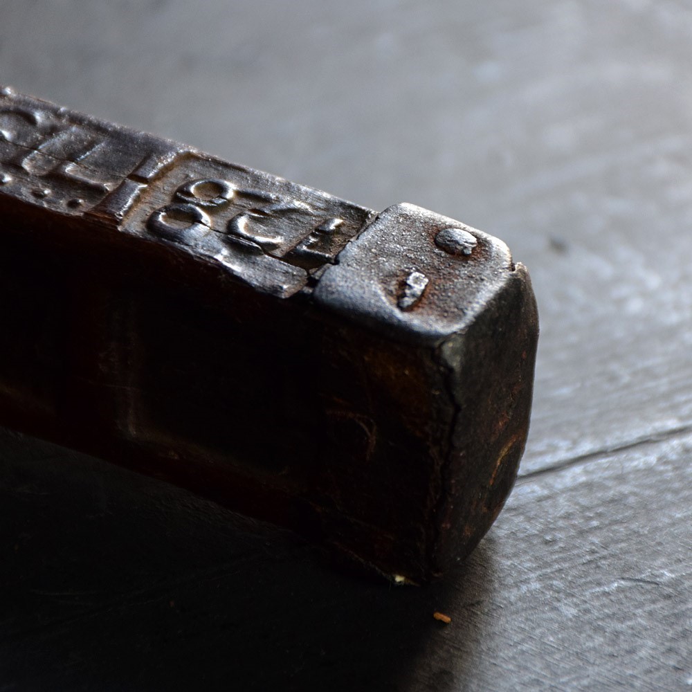 One of the most unusual and tactile objects we have uncovered for our store. A hand carved early 19th century four sided numerically detailed measuring stick of sorts. Believed to be used as an instrument to measure bags of grain from the Tibetan regions. Both ends have a metal nailed section and loophole which could have been attached to a rope at some point. The patination and natural wear across the surface of this artefact is outstanding, a true work of art in our humble opinion.