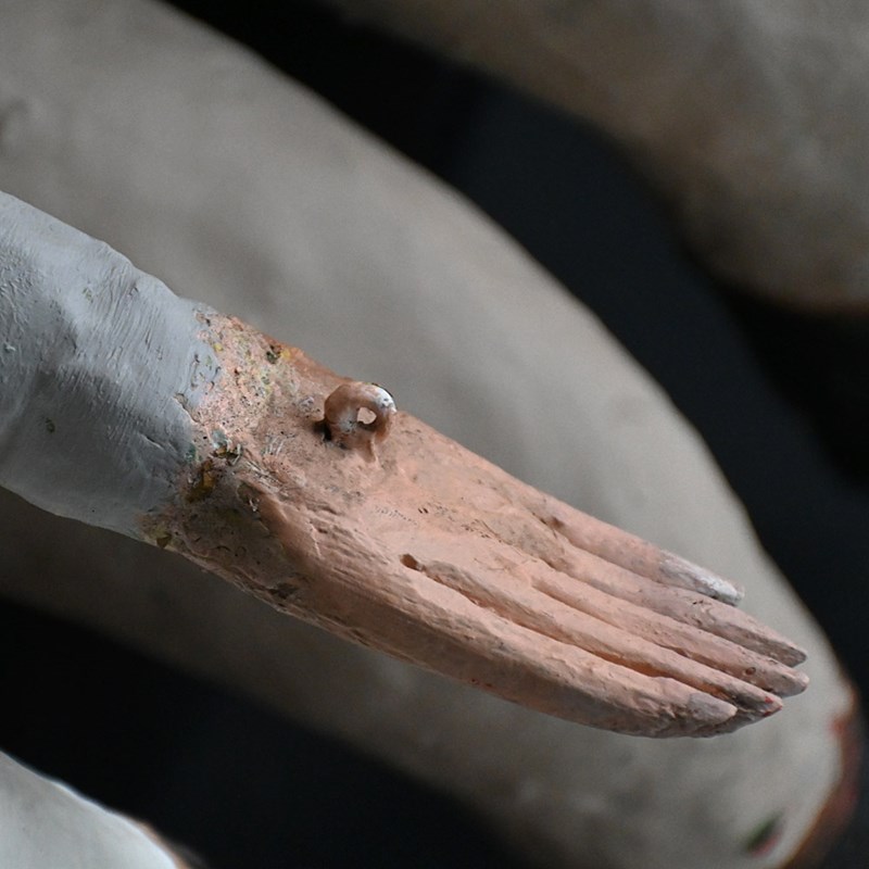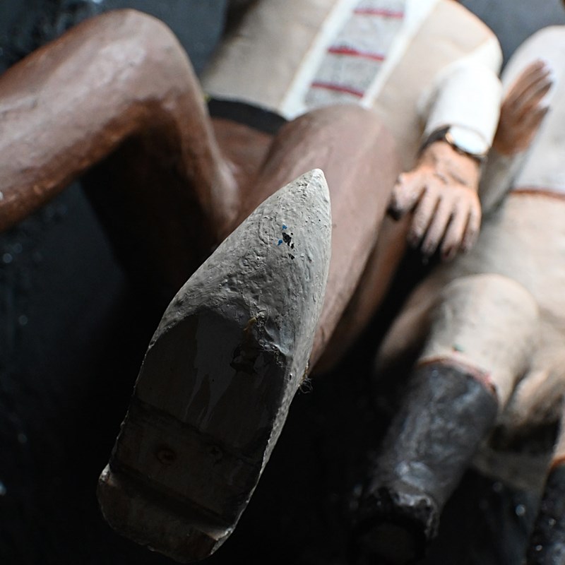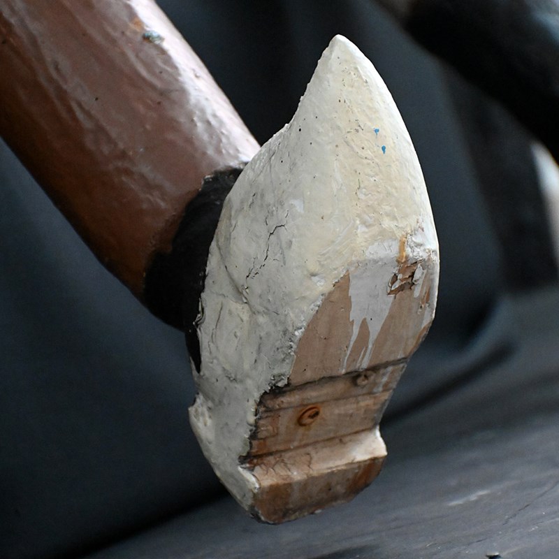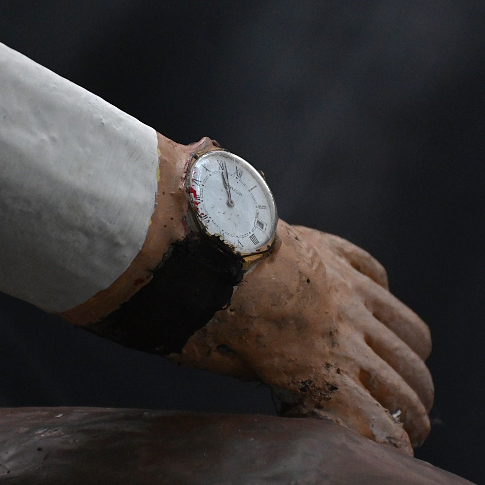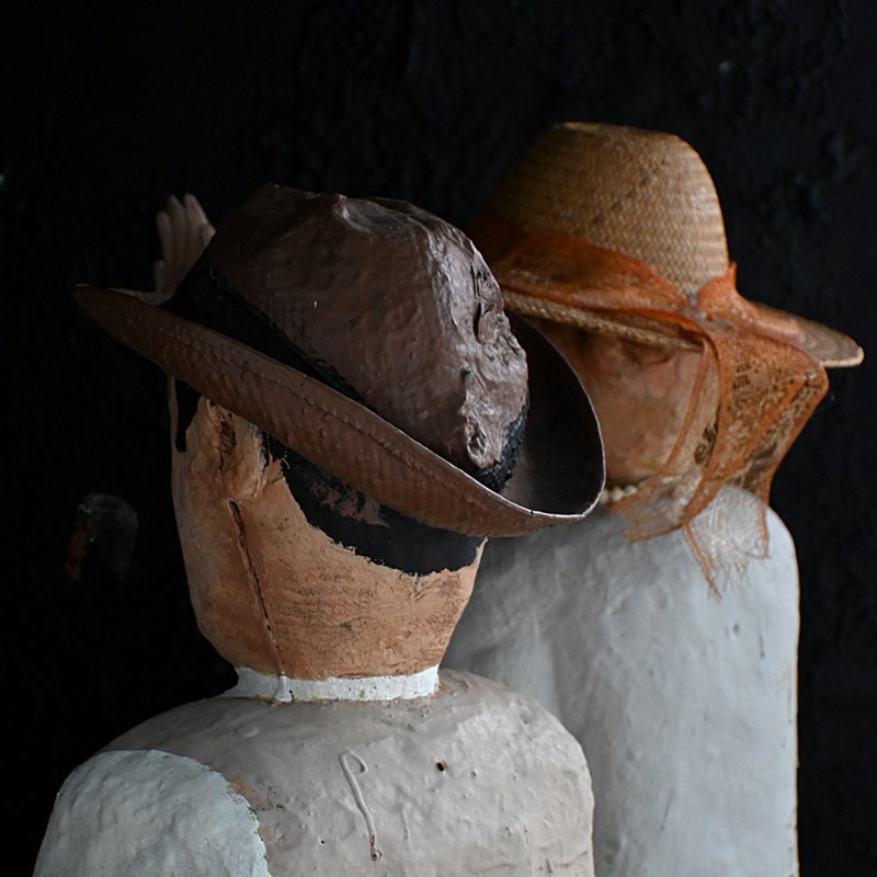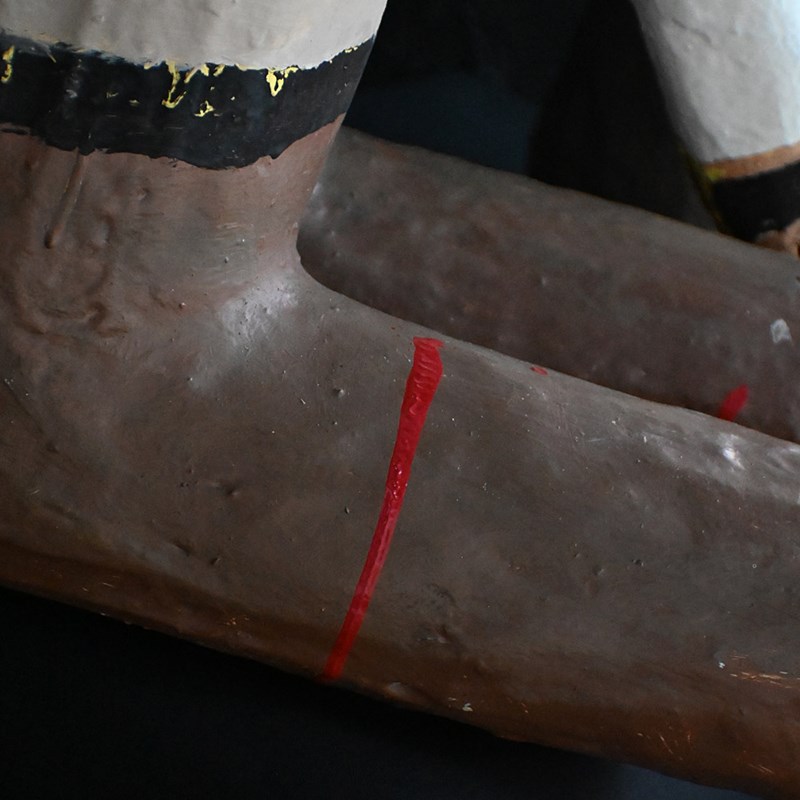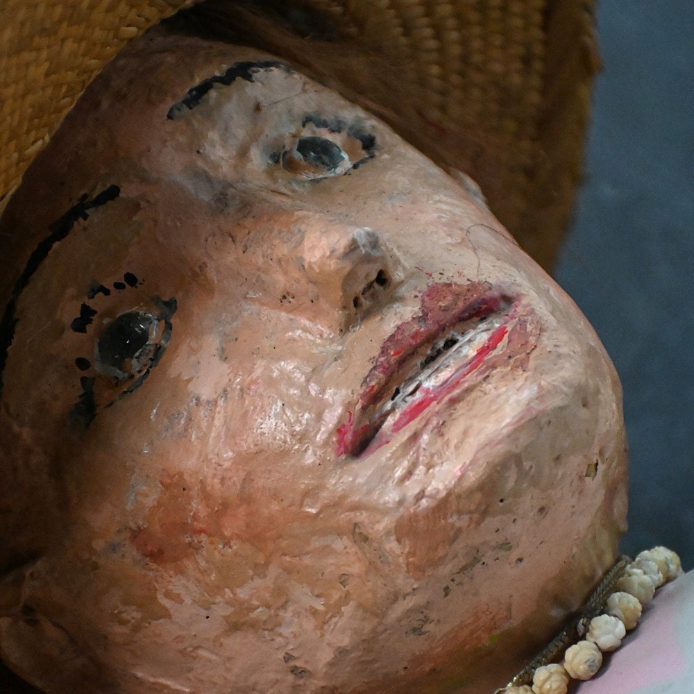 We sometimes create amazing things for the love of them, these two hand carved figures are just brilliant in our humble opinion. Seated with handcrafted detail, both in fixed seated position, we have been informed by the collector we uncovered them from that they sat outside a grocery store in the summer on a bench in Amsterdam for several years to attract customers and create an element of fun on the high-street for the shoppers passing by. The man is wearing a painted straw hat, smoking a pipe, wearing an old watch and clog shoes. The female has a woven straw hat, glass eyes, plastic necklace, old rings on her fingers and is overlayed with papier mache (both figures are heavy painted with a sheen paint that protects them from the elements. The male weighs roughly 12kg and the female about 8kg.