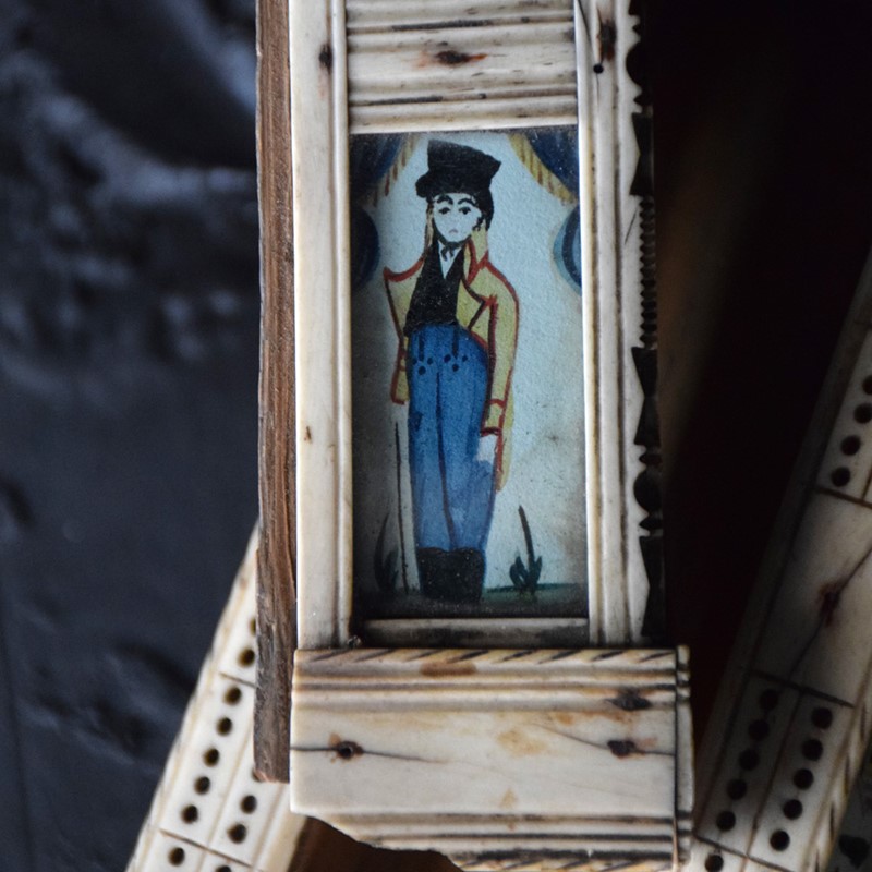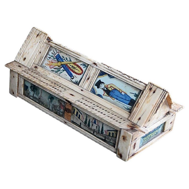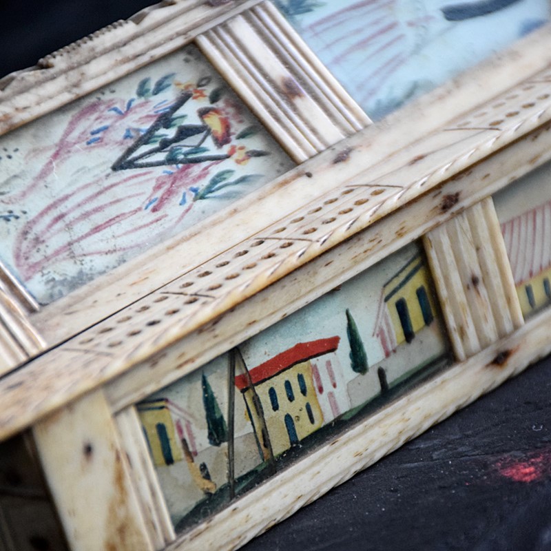 We share what we love, and we love this early 19th century Napoleonic prisoner of war hand painted casket dominos set. One of the most detailed and finely hand carved pieces of folk art we have had the pleasure to uncover. Quite simply, amazing attention to detail and a true work of art.