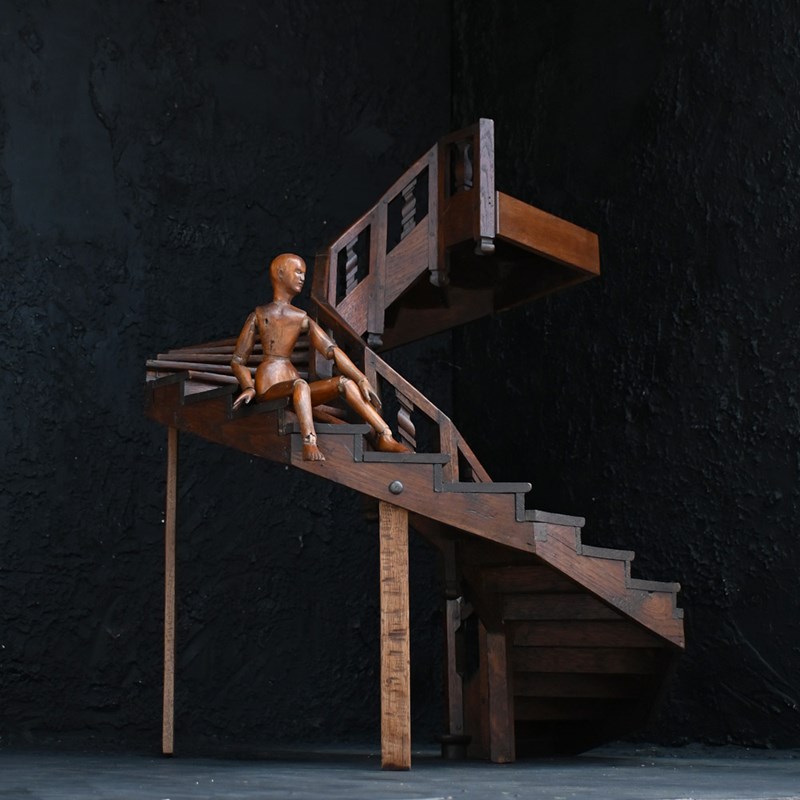 Rare over sized early 20th Century hand crafted architectural stair case model