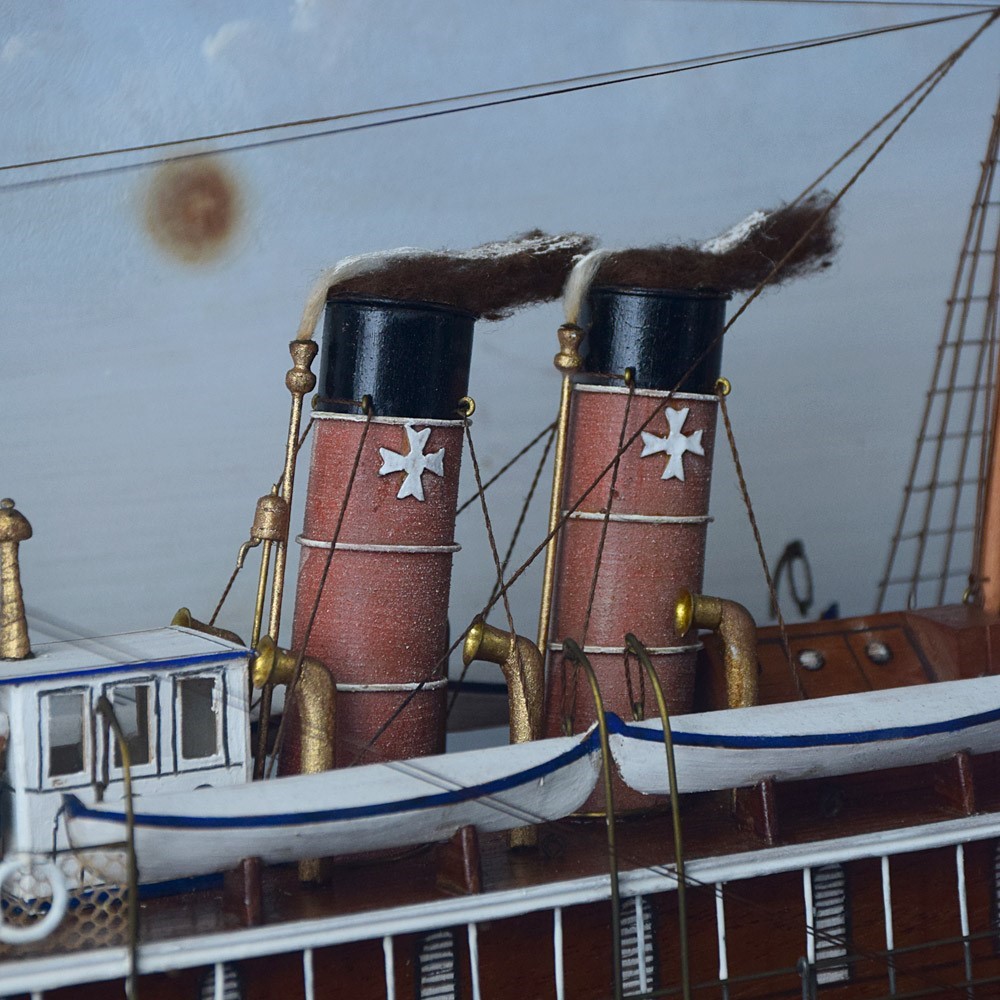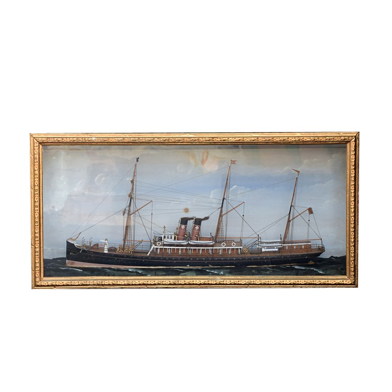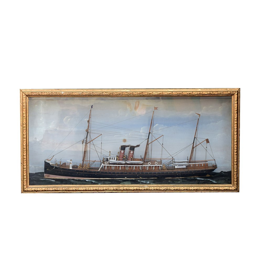 American Folk-art Steam Ship Encased Diorama