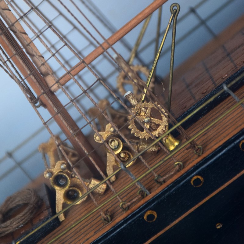 We share what we love, and we love this turn of the century hand crafted American folk-art encased steam ship model, created from a variety of found objects, including metal, fabric, and wood. The craftsmanship in create such a well-proportioned example demonstrates great skill as shown in the photos provided, Untouched in form and still preserved in its original glass fronted case.