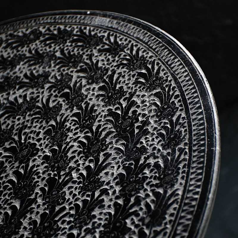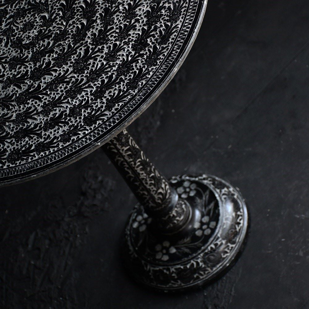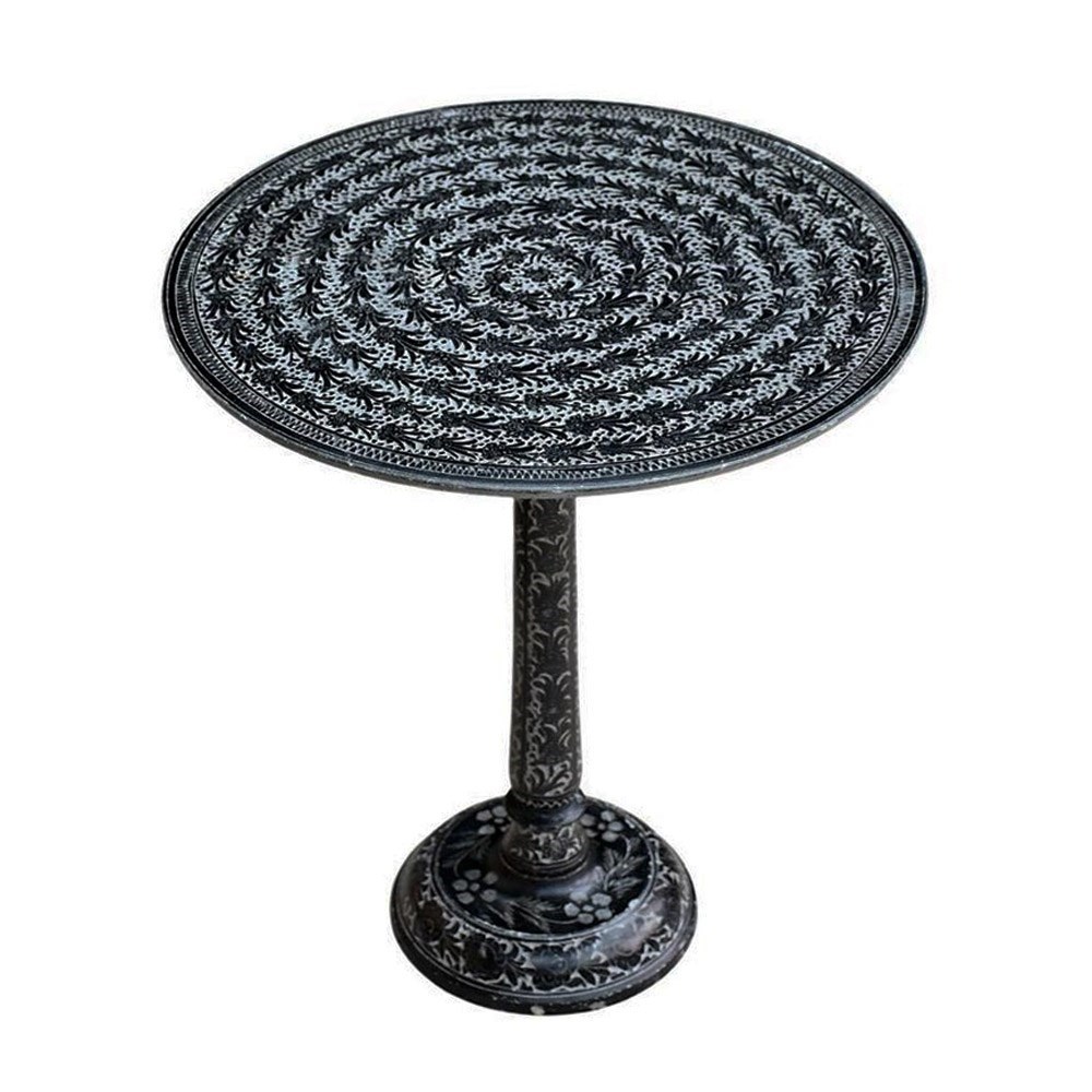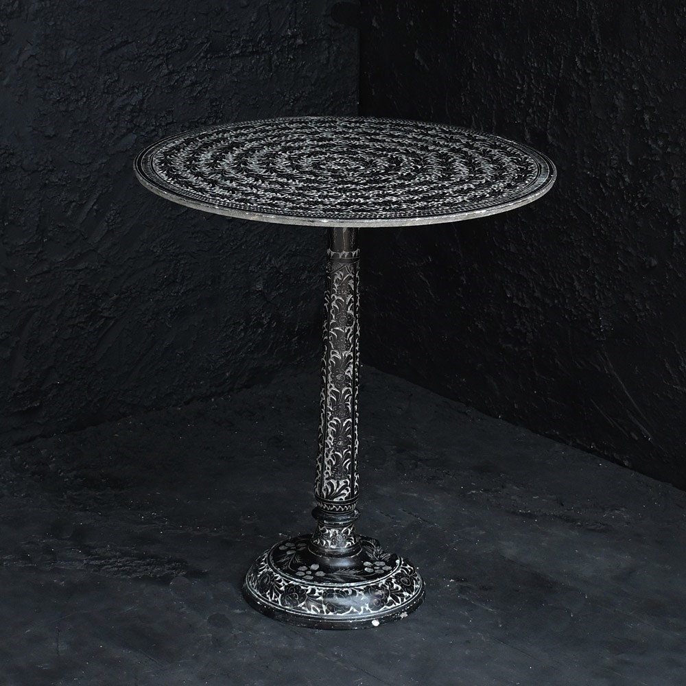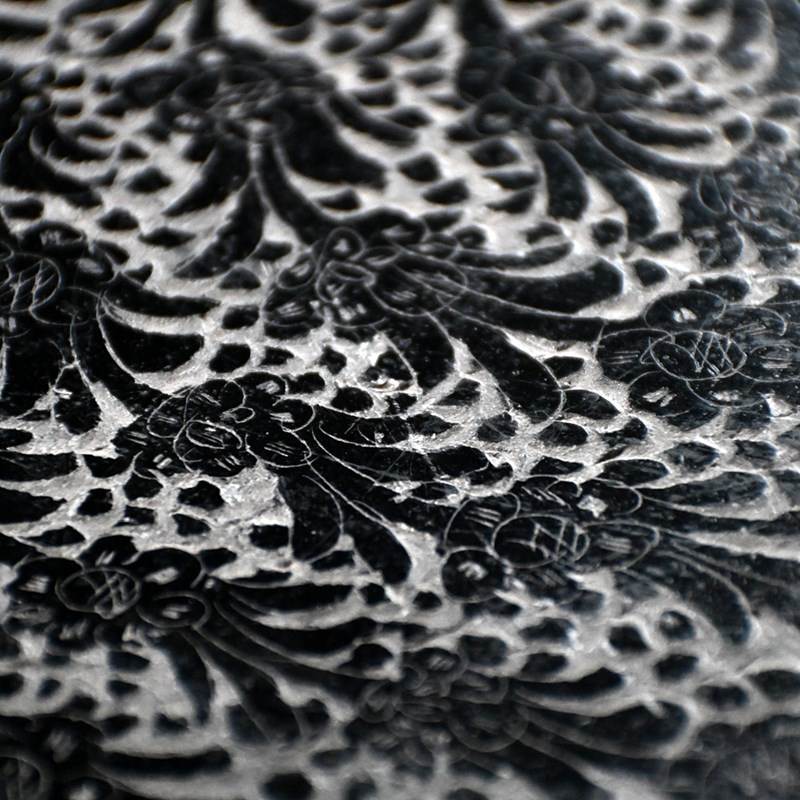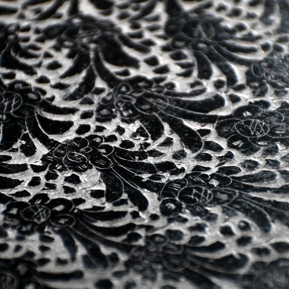Made from a stone material this side table is hand etched with a highly decorative floral detail.