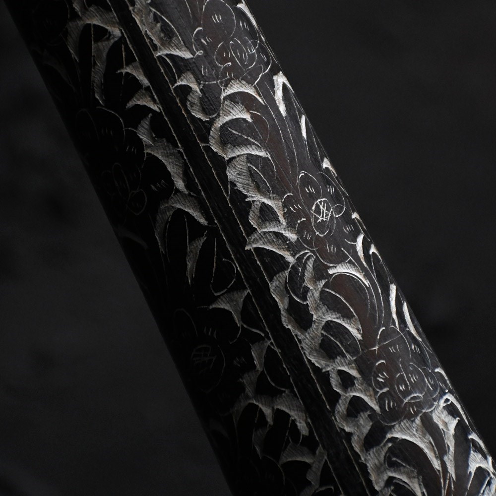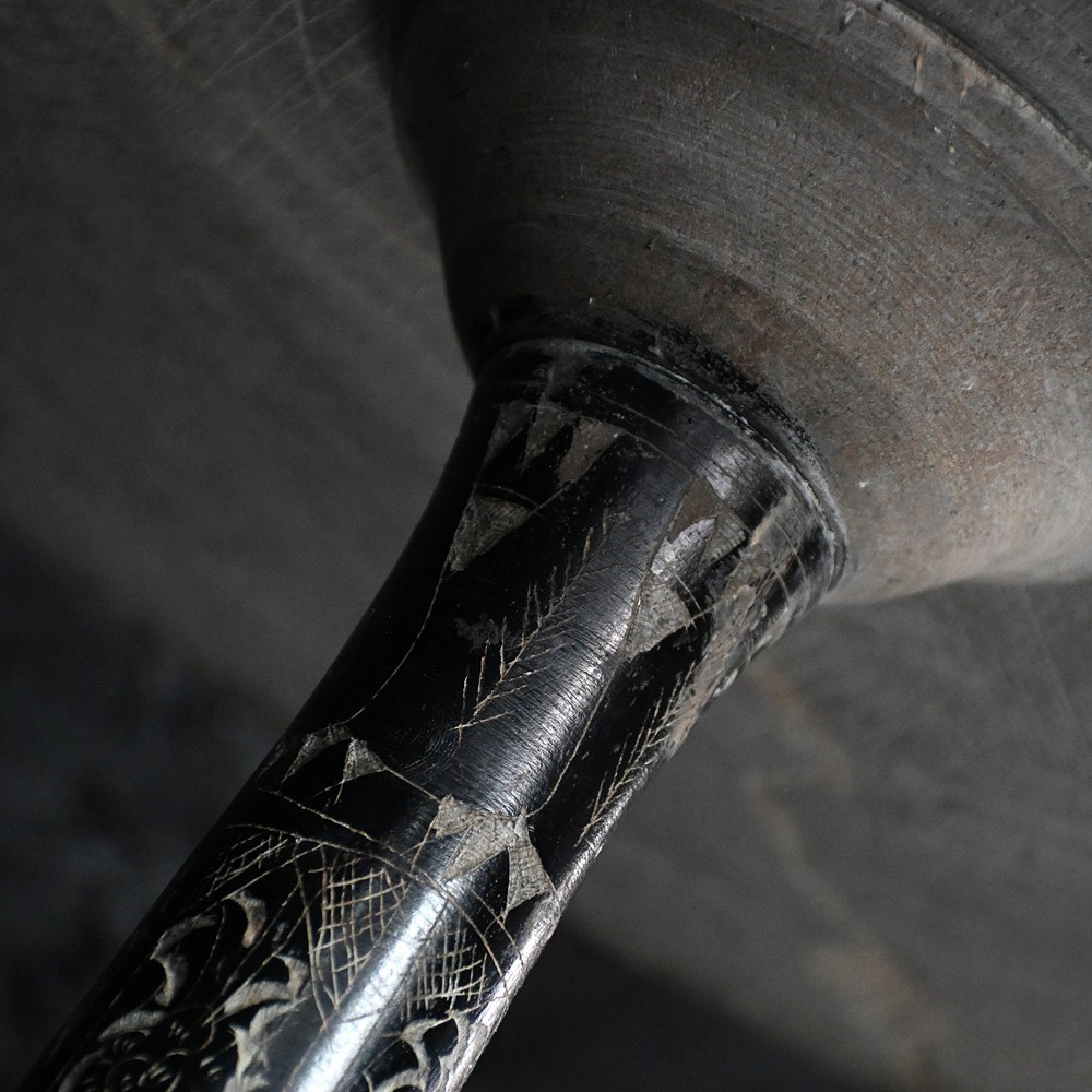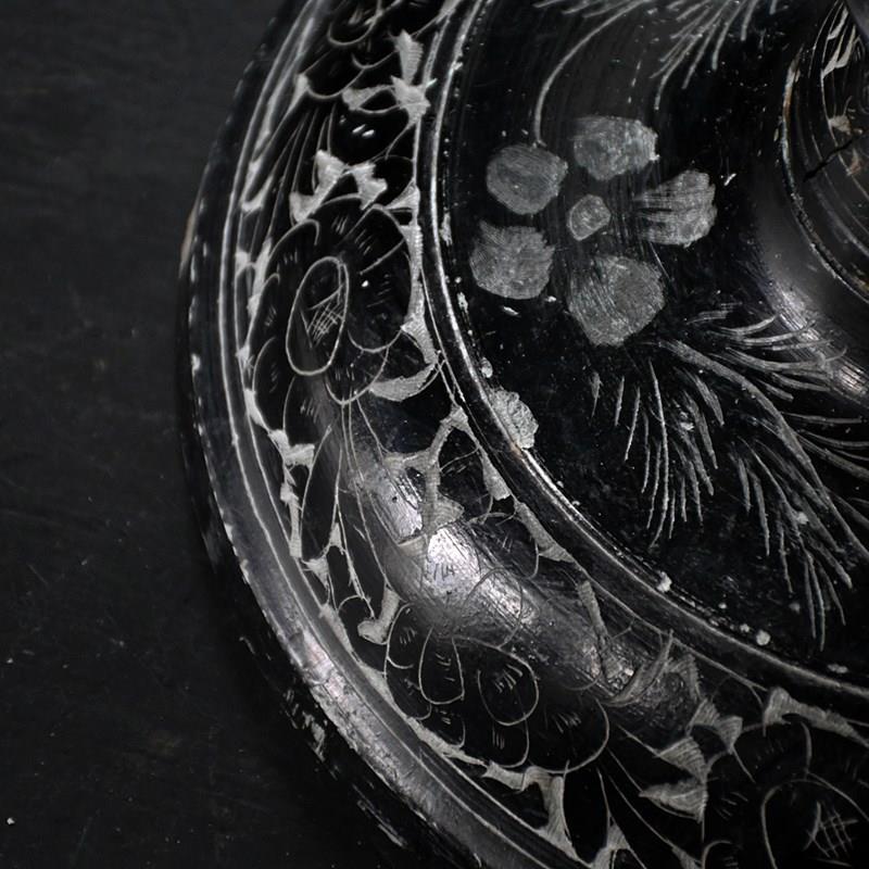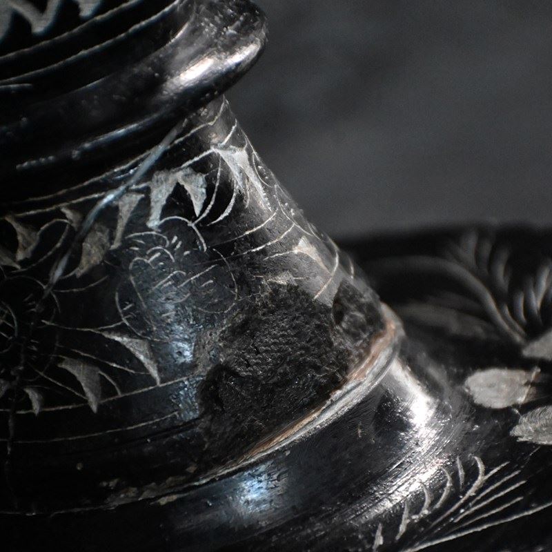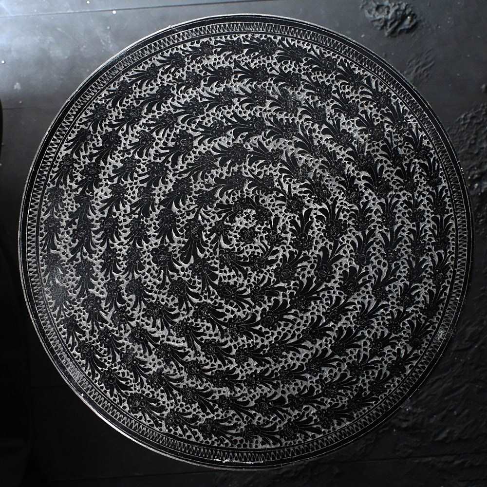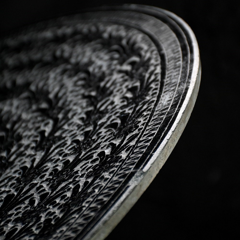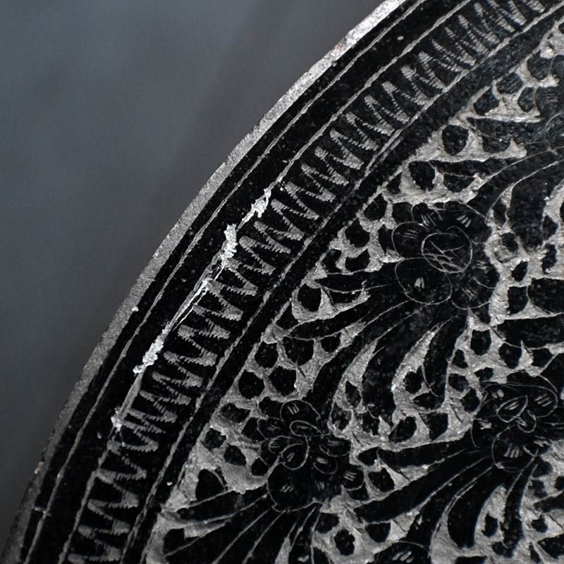 Made from a stone material this side table is hand etched with a highly decorative floral detail.