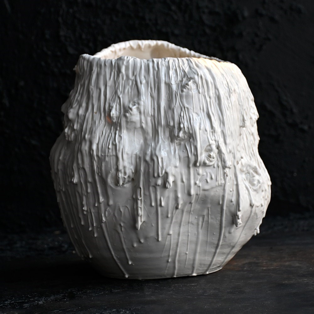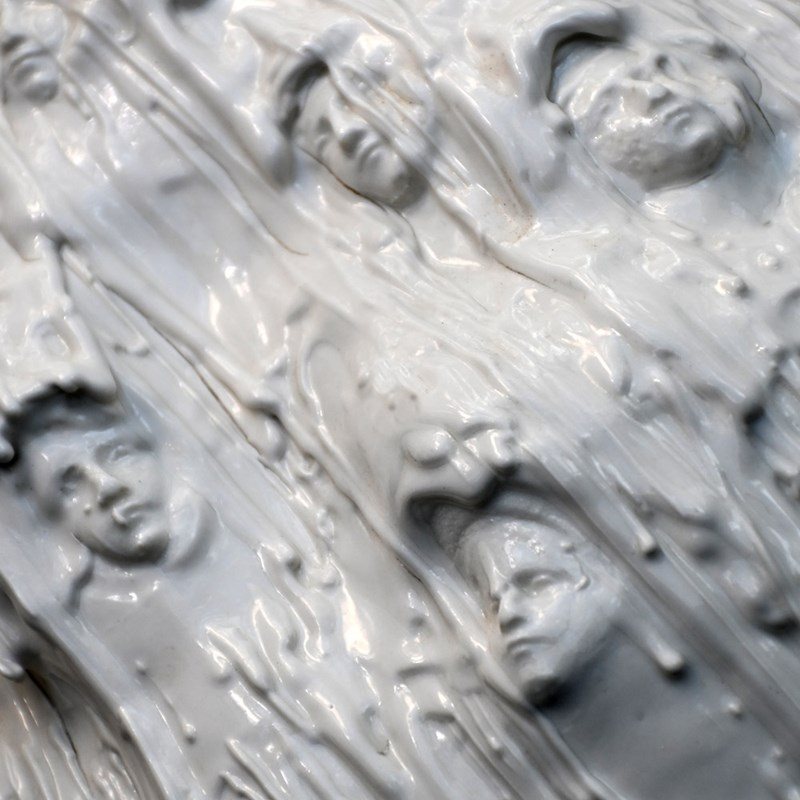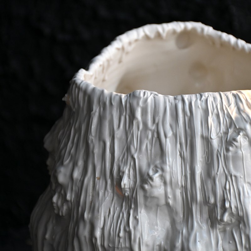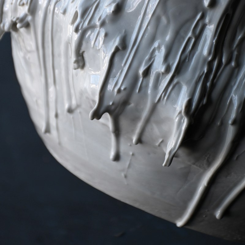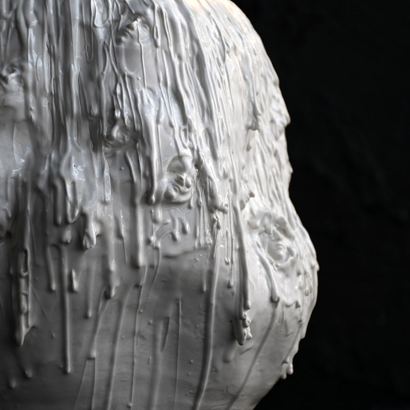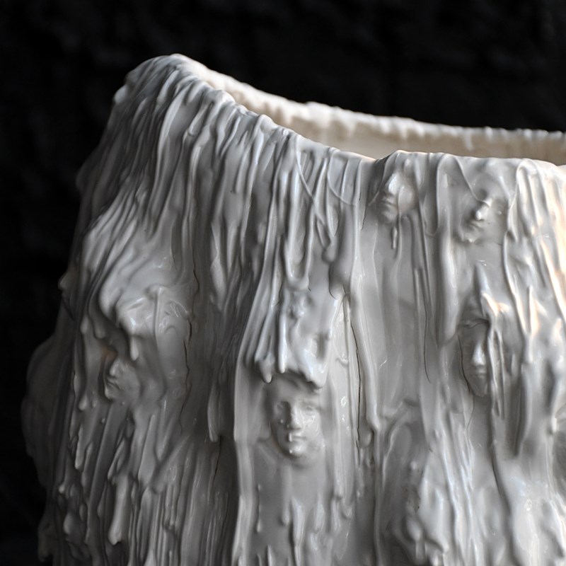 A stunning and highly unusual hand-crafted ceramic sculpture. Drip glazed in of white ceramic material with an organic form. The face of “Mother Mary” has been formed/sculpted into the inside base and outer areas of this piece of art. A highly unusual centre piece in our humble opinion.