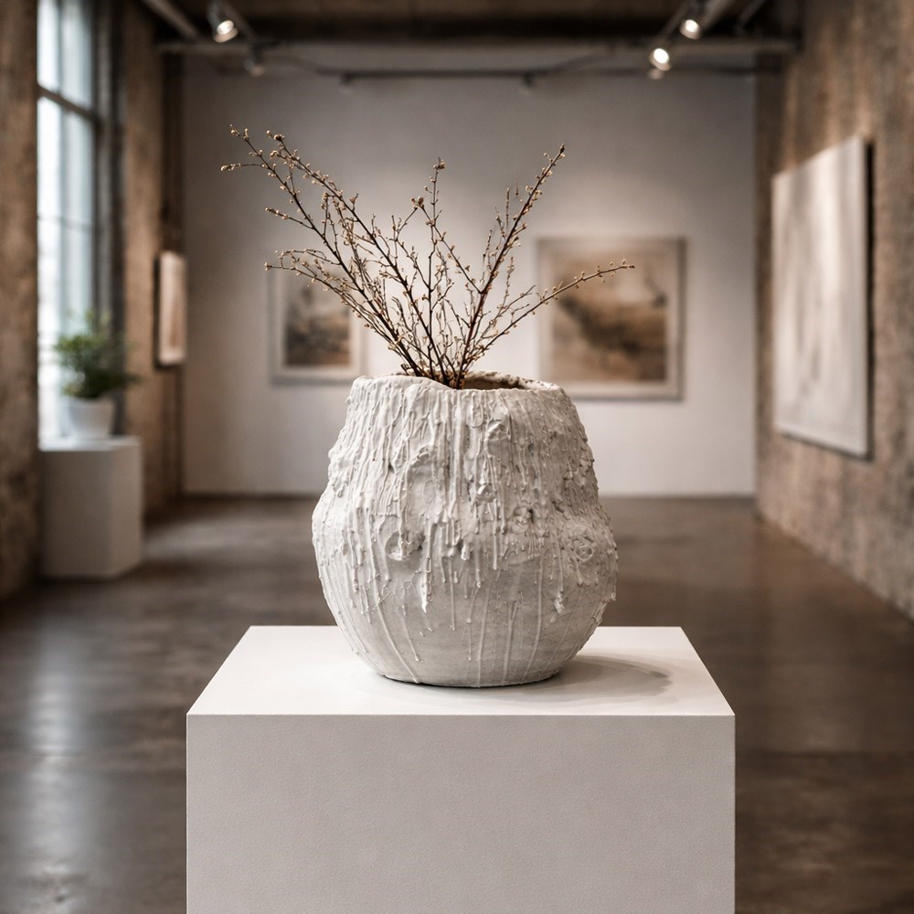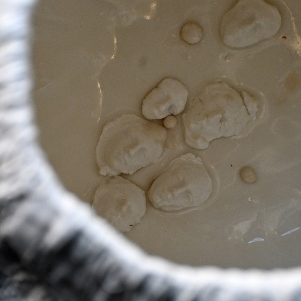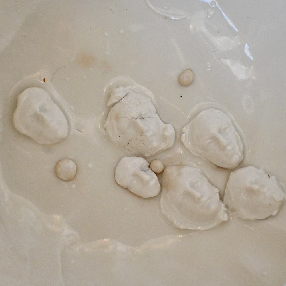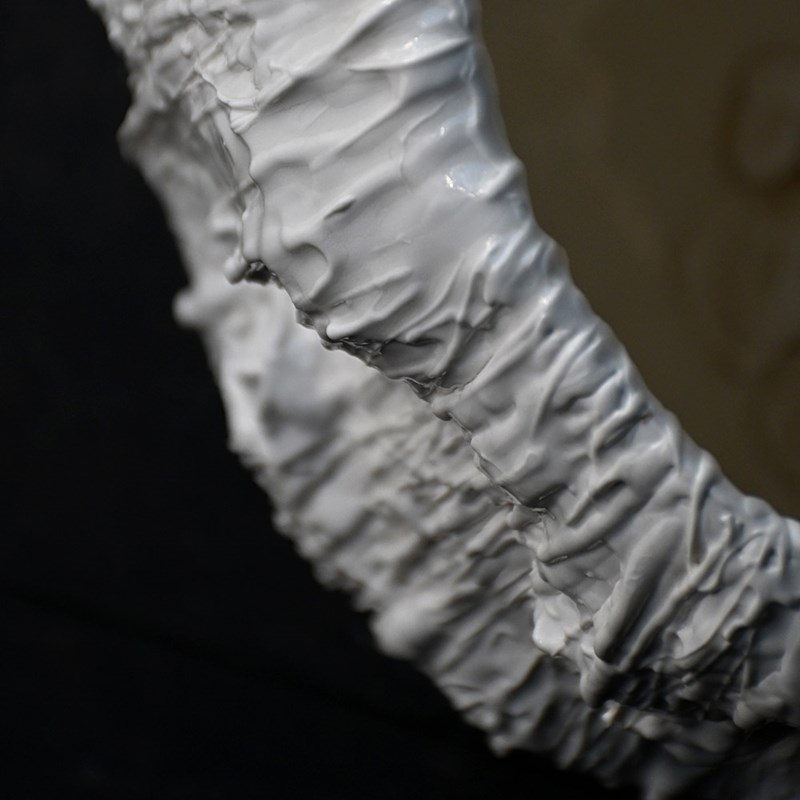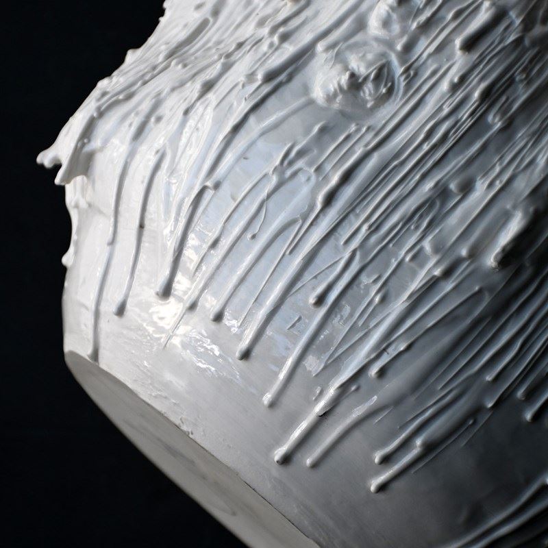 A stunning and highly unusual hand-crafted ceramic sculpture. Drip glazed in of white ceramic material with an organic form. The face of “Mother Mary” has been formed/sculpted into the inside base and outer areas of this piece of art. A highly unusual centre piece in our humble opinion.