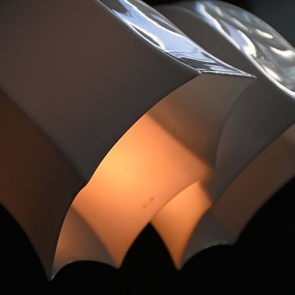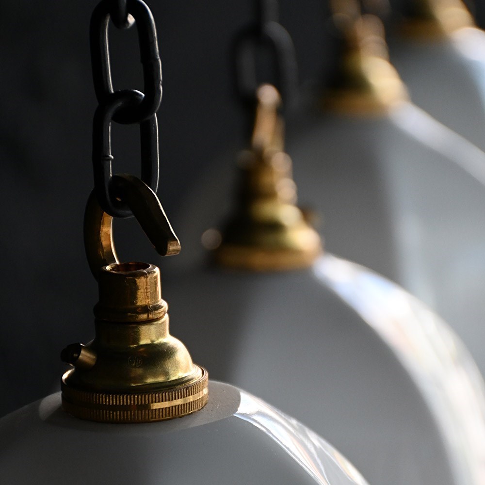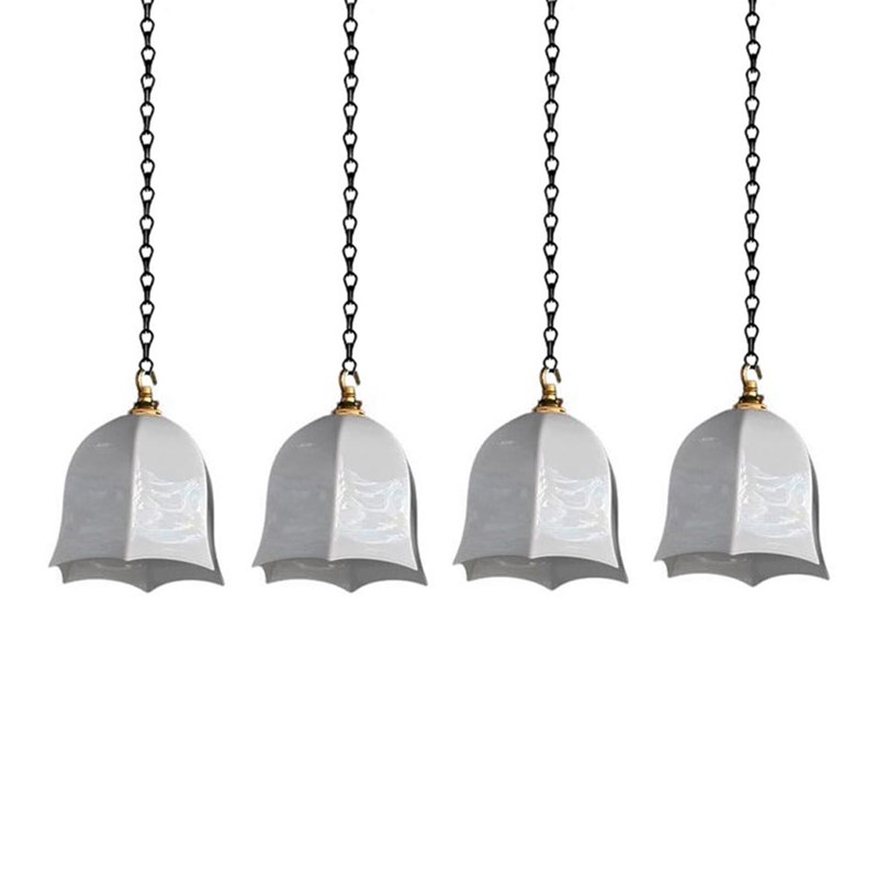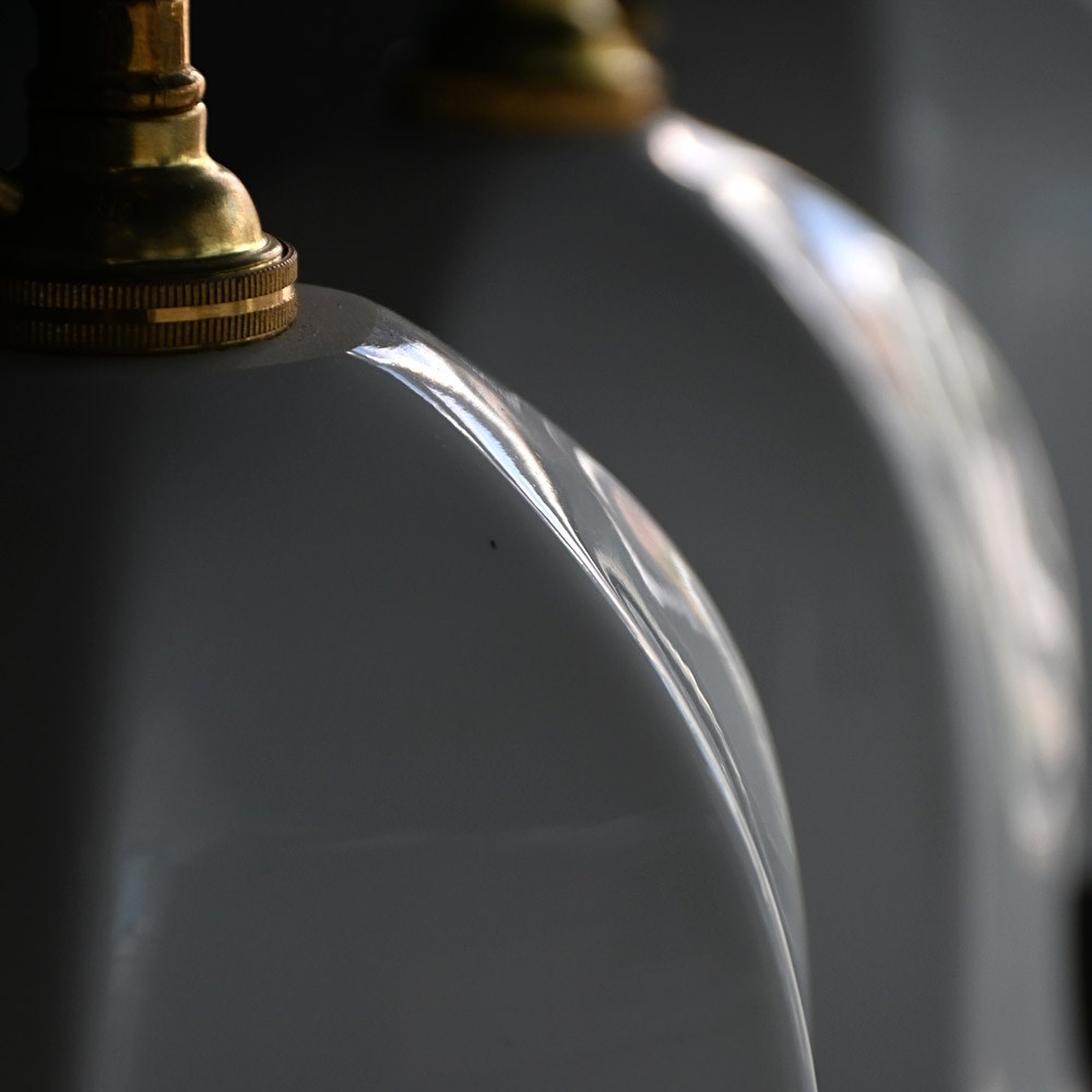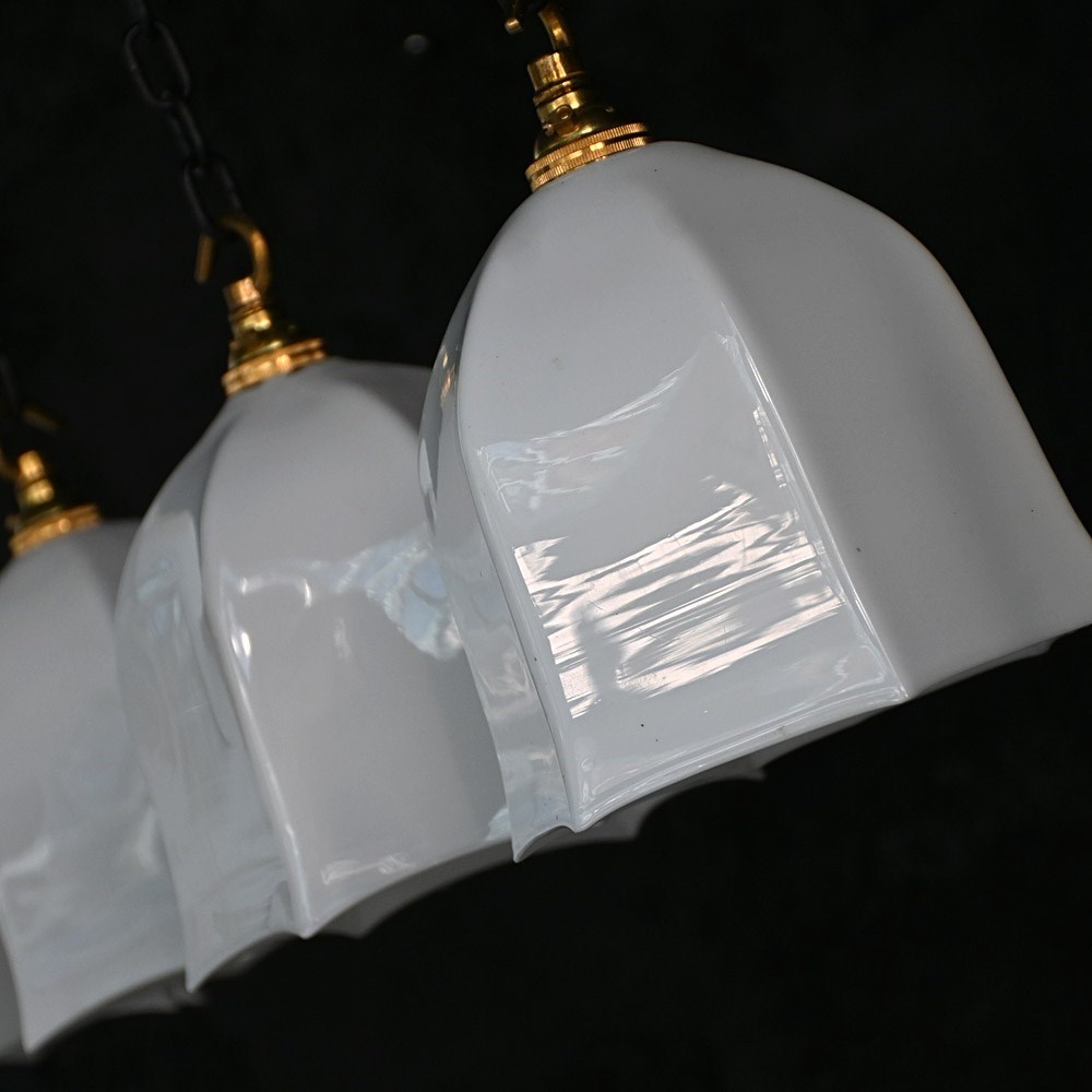 A highly decorative set of four English milk glass tulip shaped lights, with new brass light fittings and ready to be wired and used.