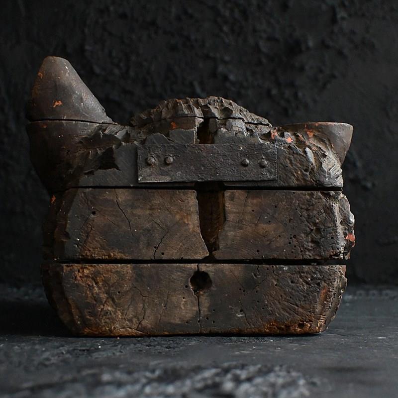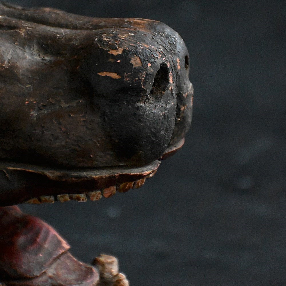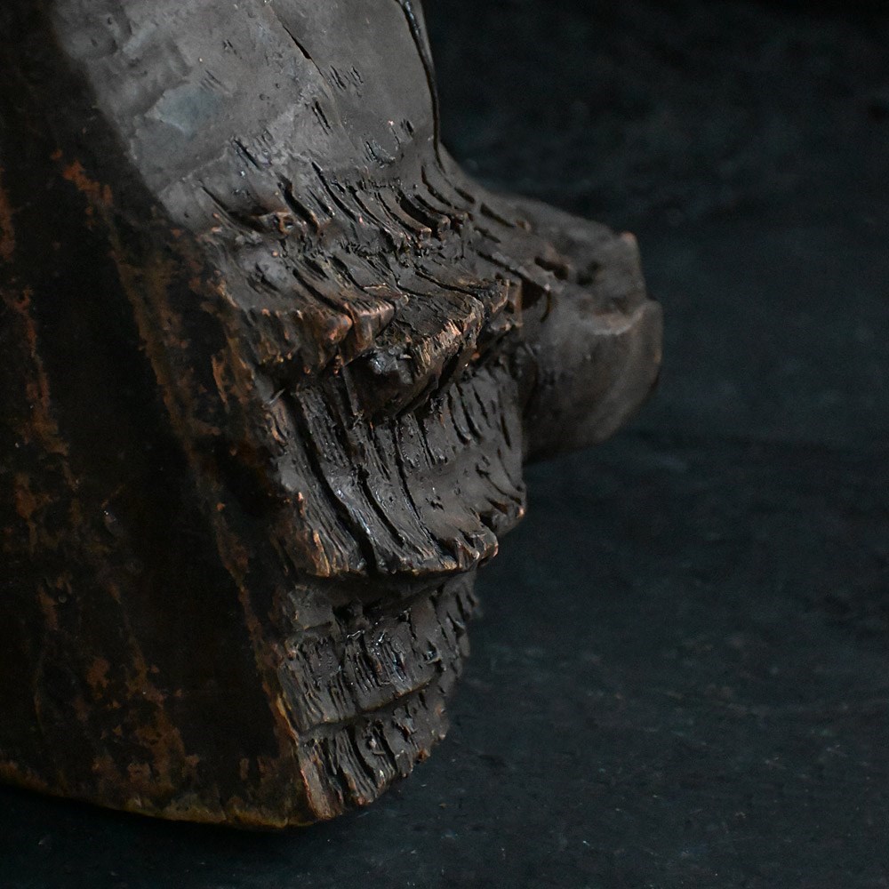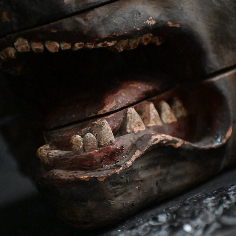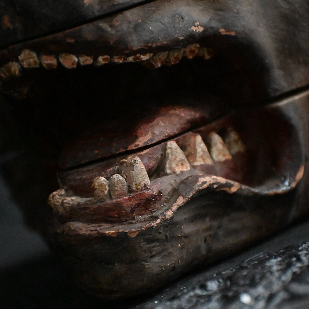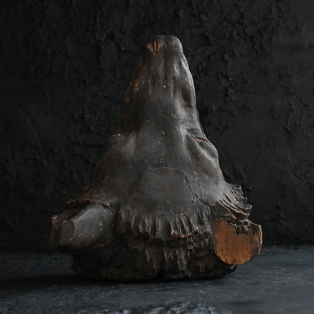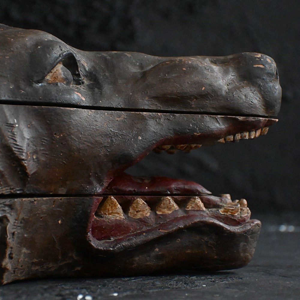 Early 19th century hand carved hunting lodge fragment wolfs head