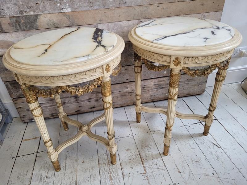Pair Of French Neo Classical Marble Top Lamp /Side Tables