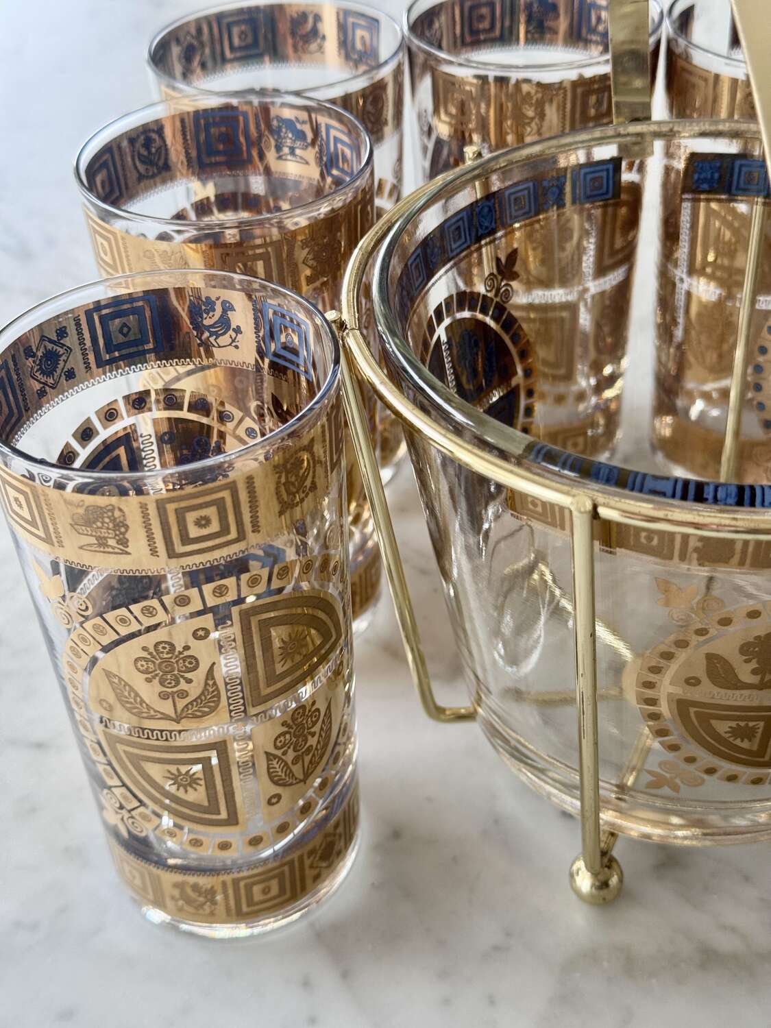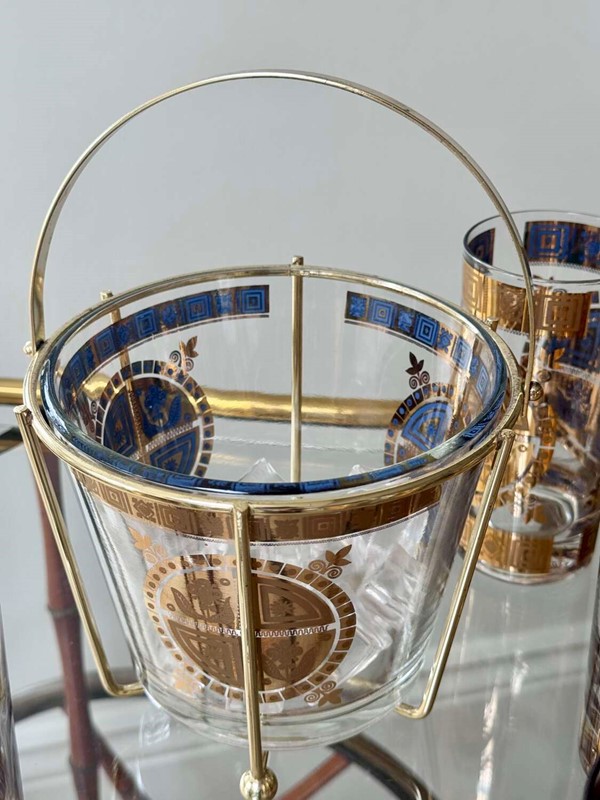 22ct gold & enamel Culver cocktail glasses & ice bucket set C1950