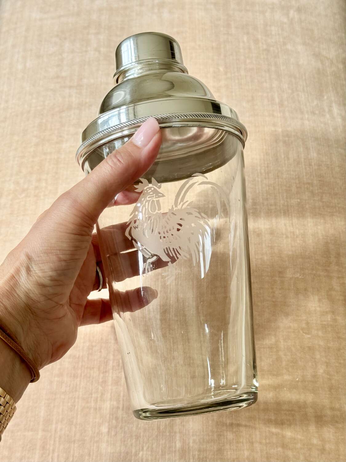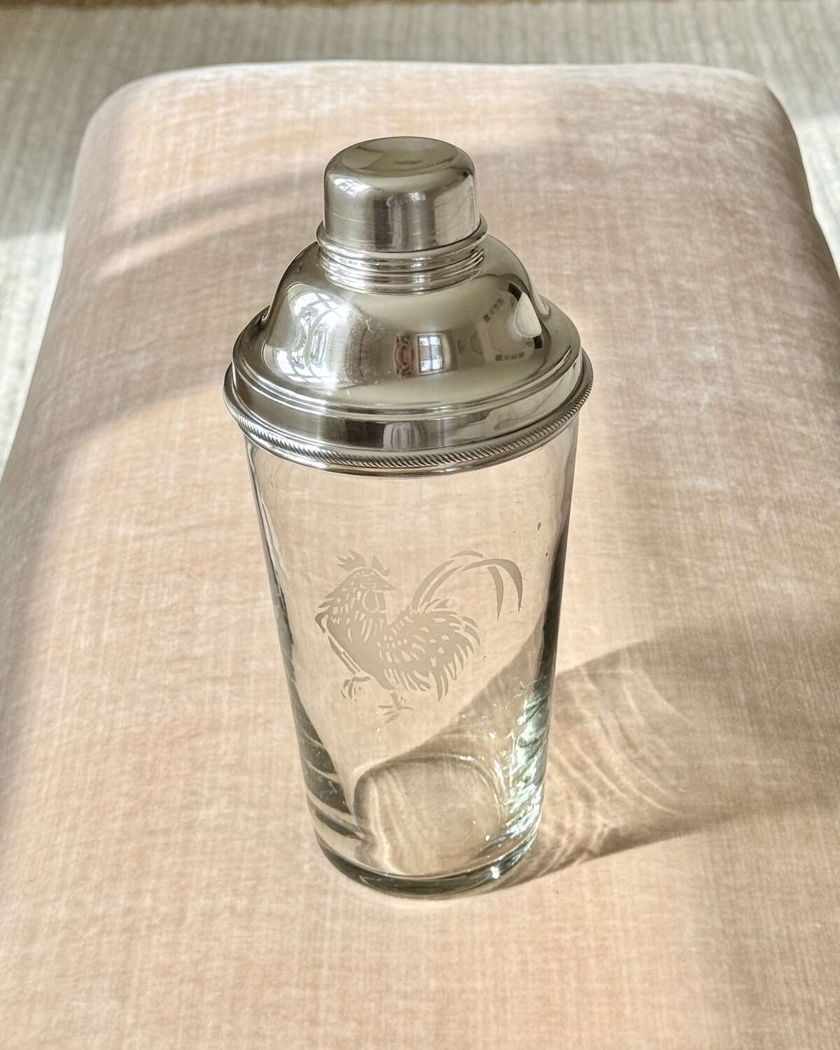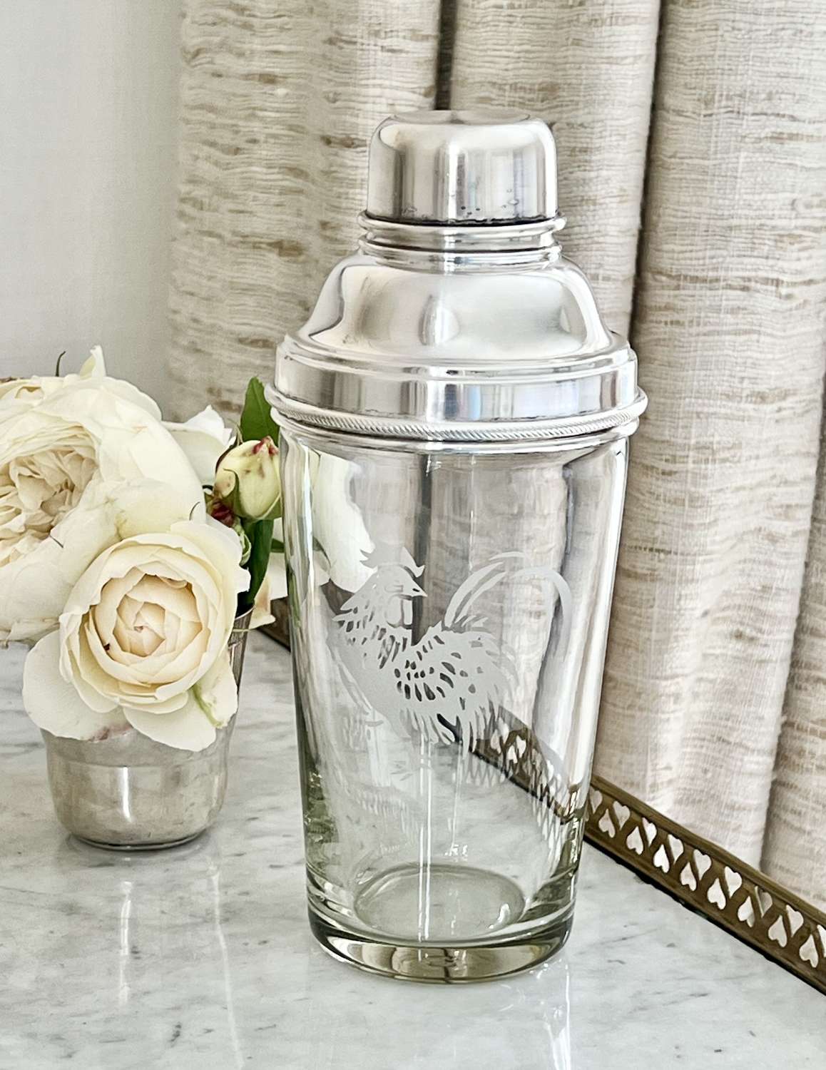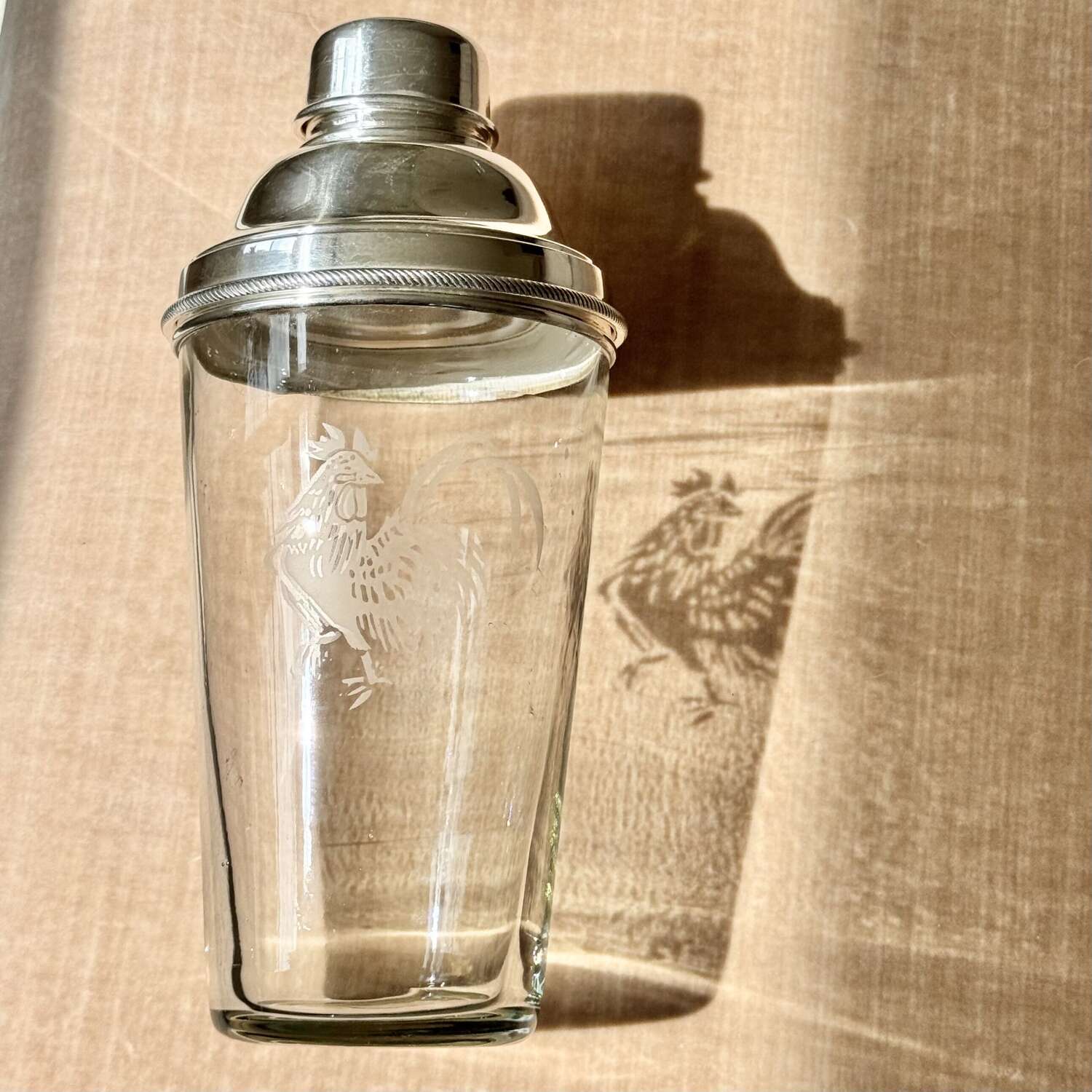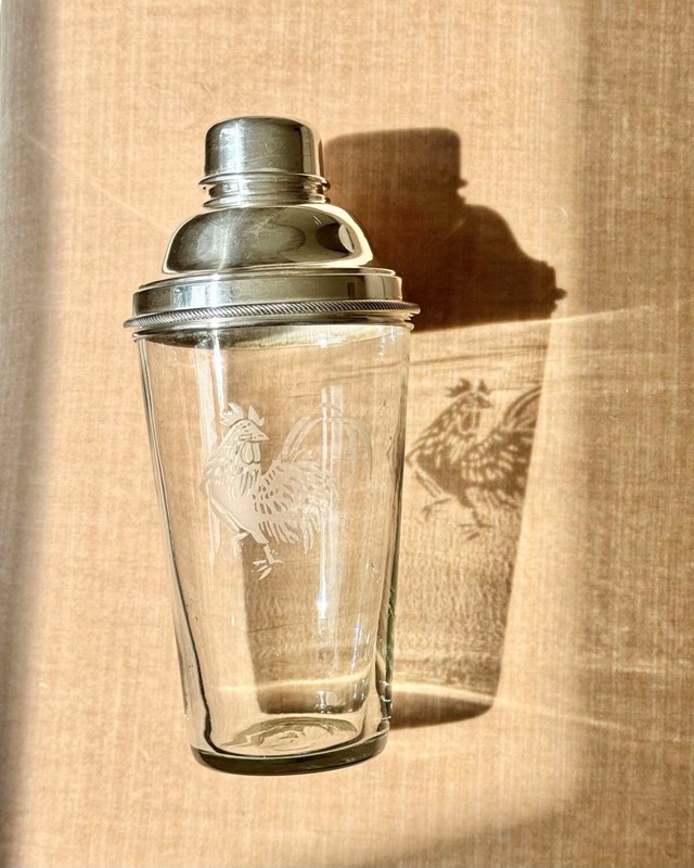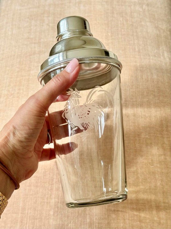 Art Deco Cockerel Etched Cocktail Shaker By James Dixon & Co
