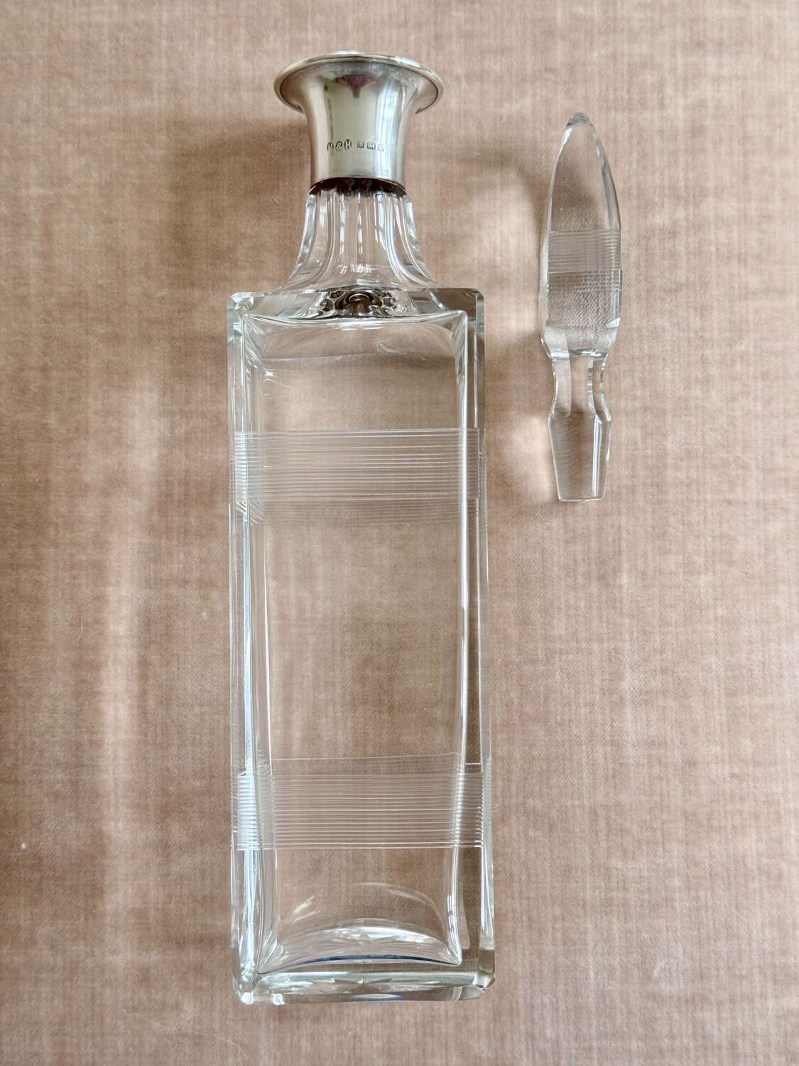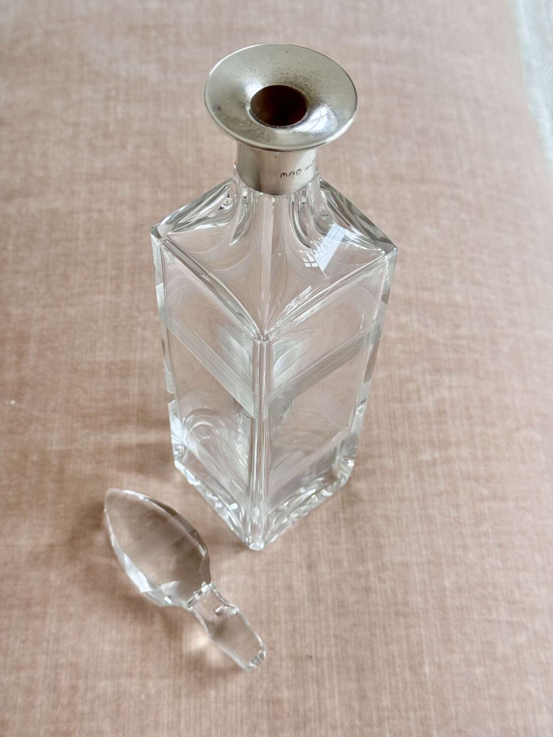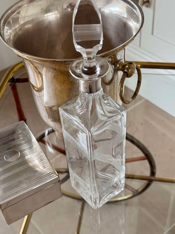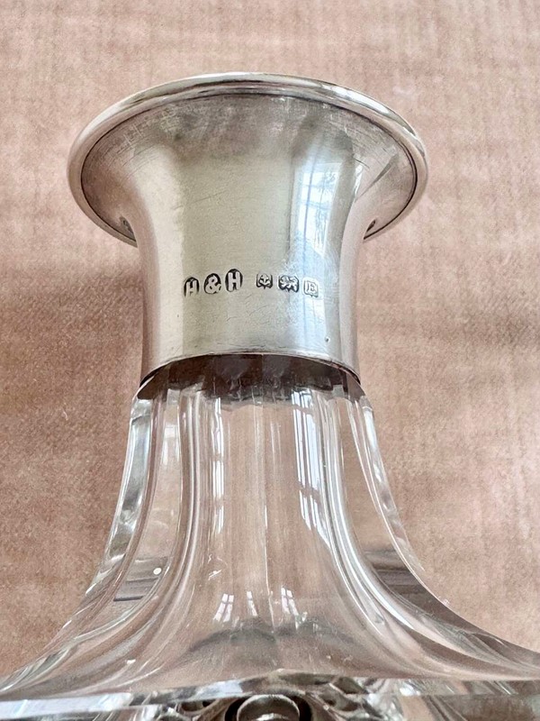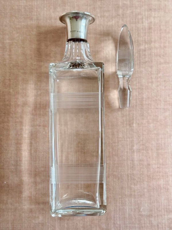 Art Deco silver collar crystal decanter by Hukin & Heath date 1929