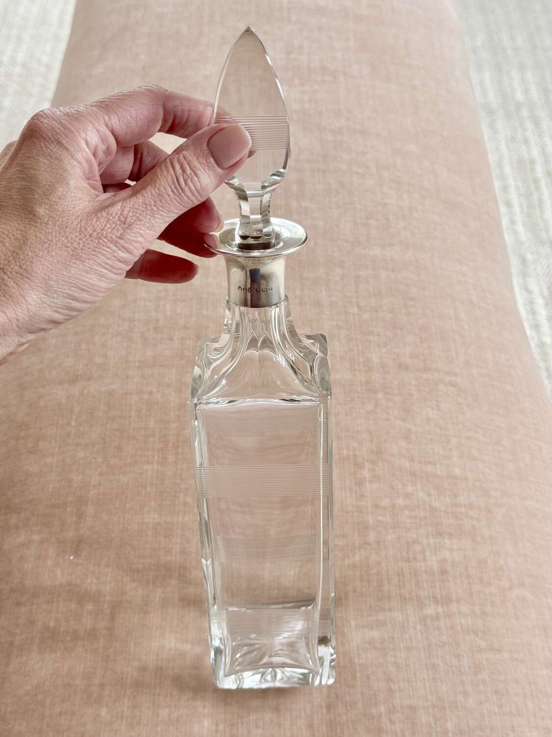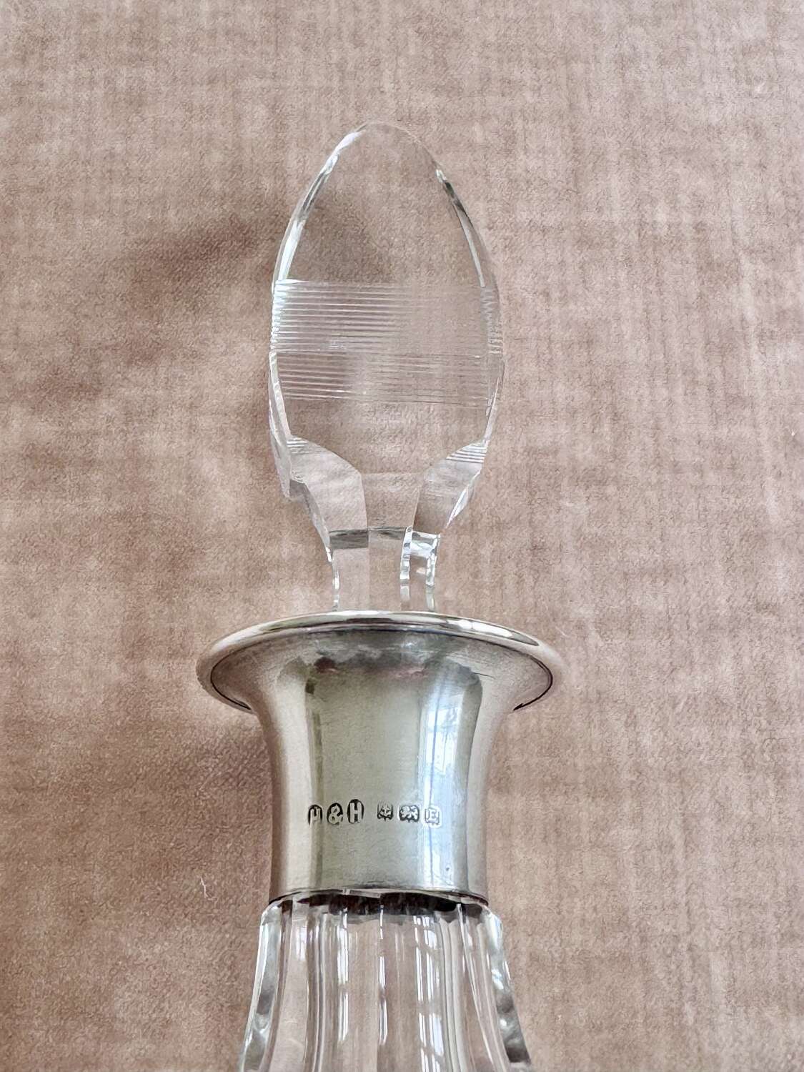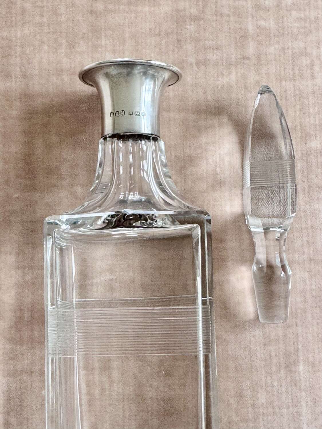 Art Deco silver collar crystal decanter by Hukin & Heath date 1929