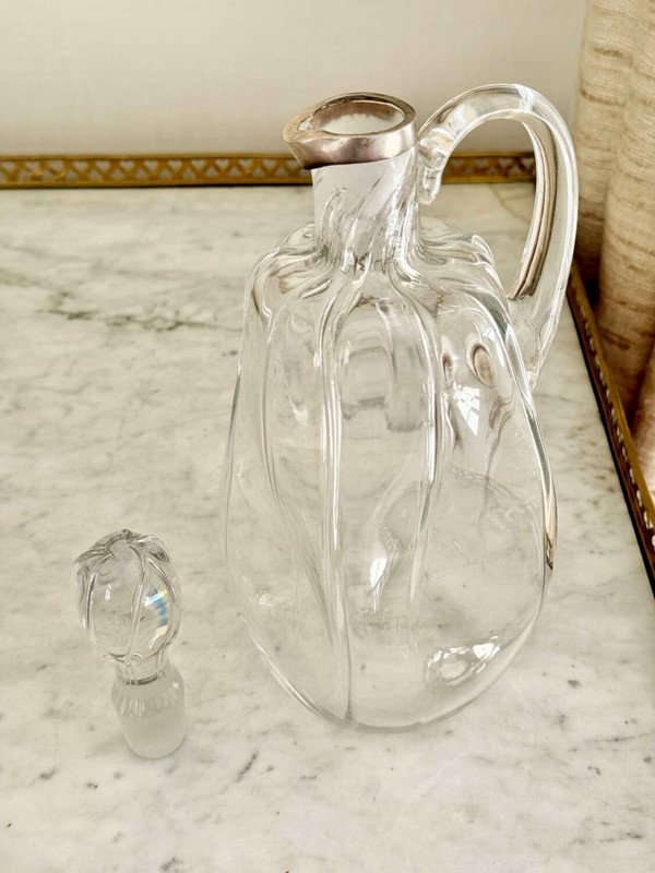 Art Nouveau Silver Rim Claret Jug Decanter & Stopper