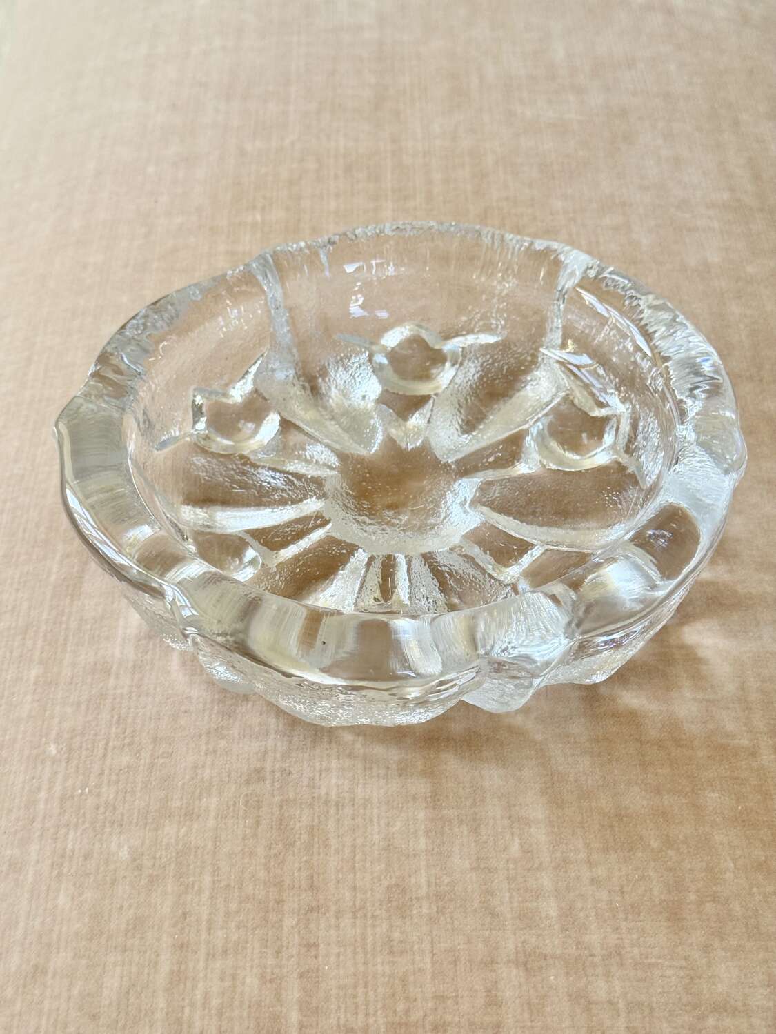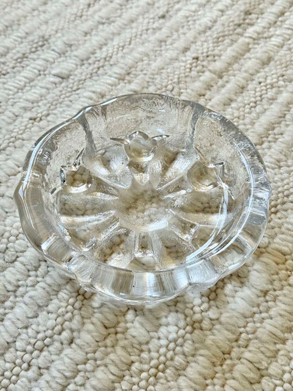 Achunky, solid glass Brutalist design decorative bowl, Circa 1970s. This Scandinavian design, possibly by Orrefors, would look splendid used as a paperweight, ashtray or decorative accent.