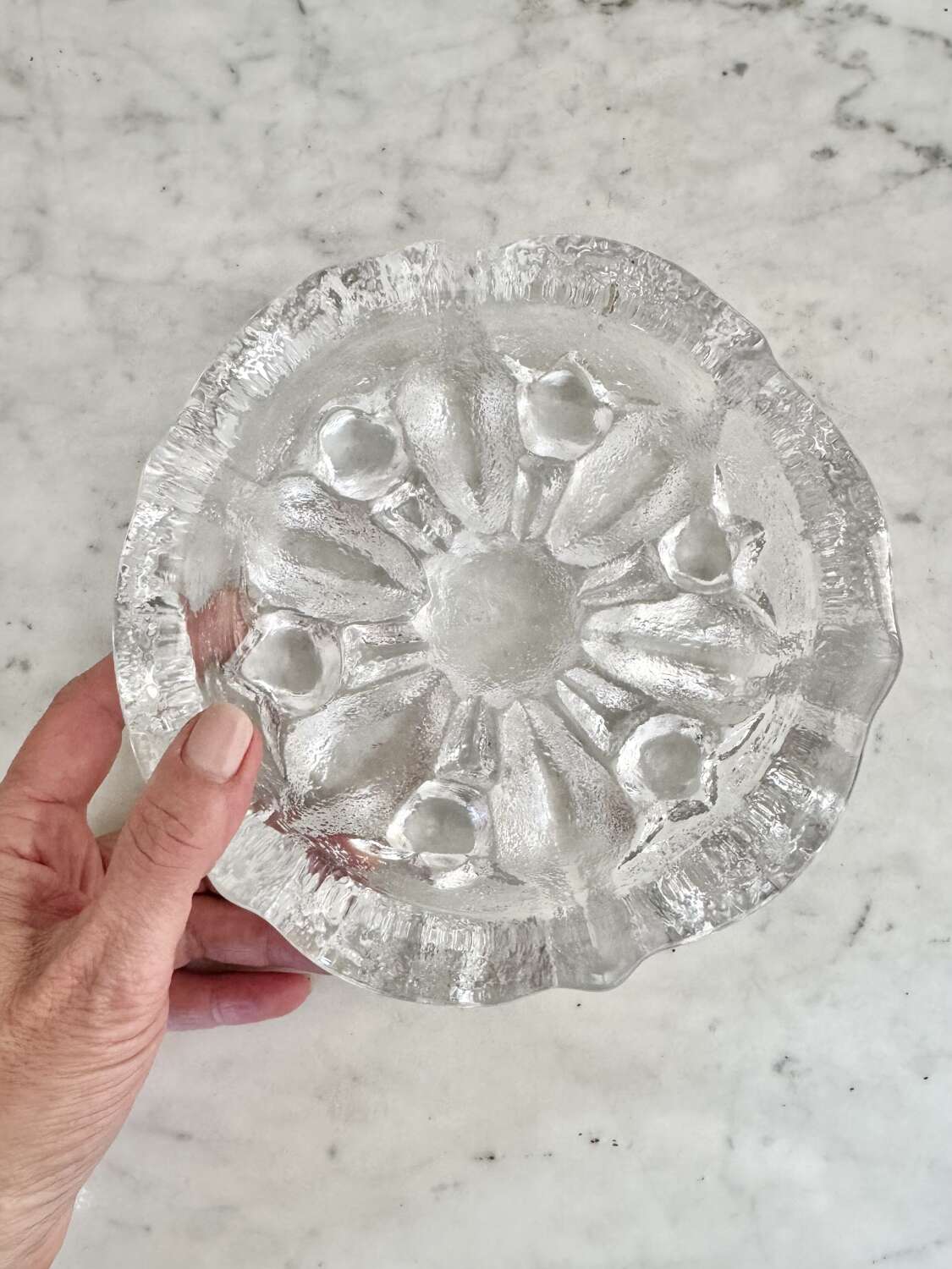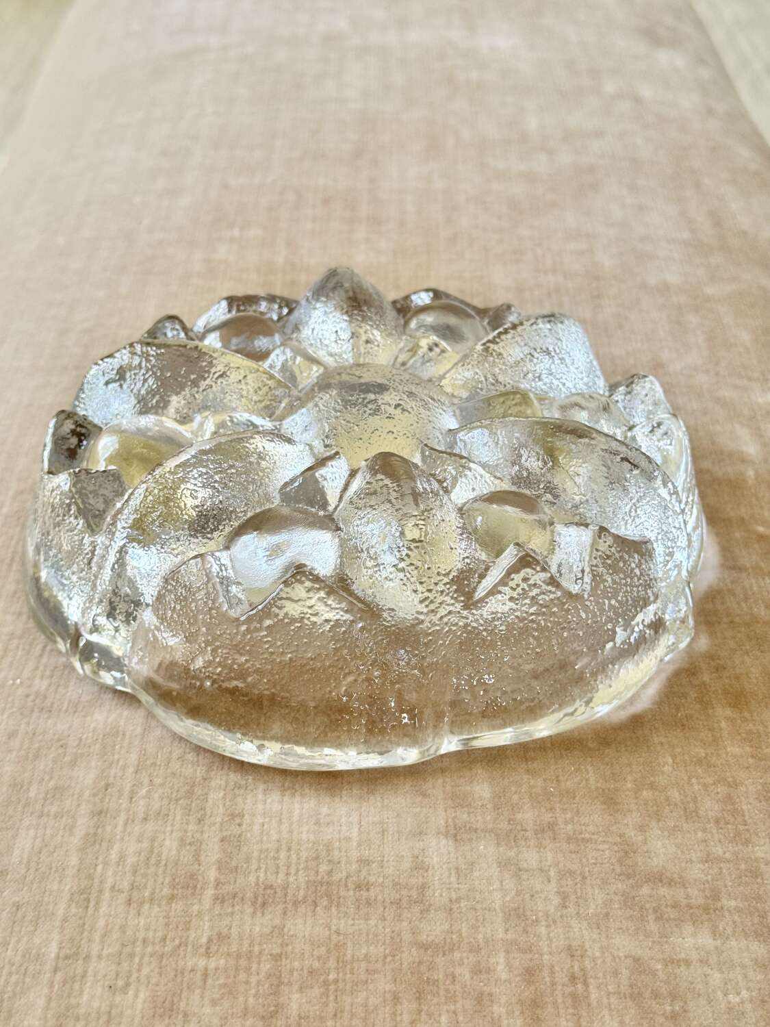 Brutalist Scandinavian frosted solid glass bowl C1970