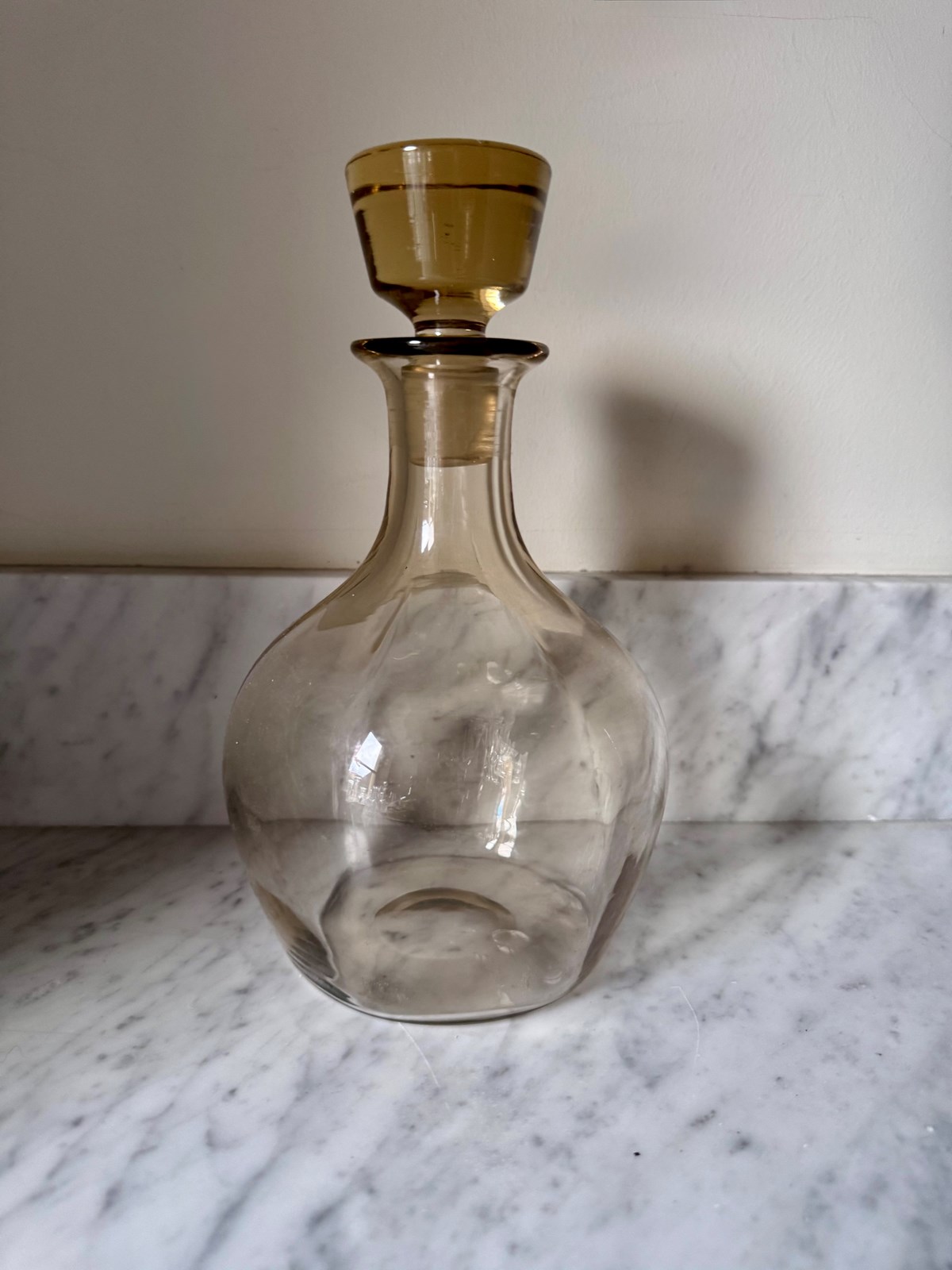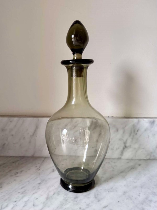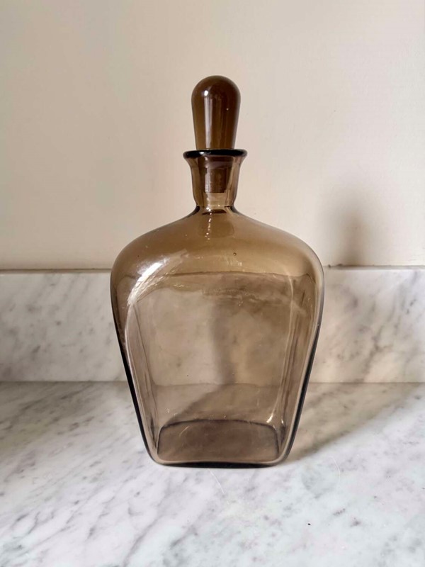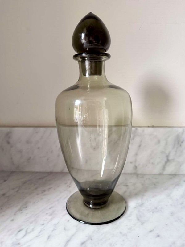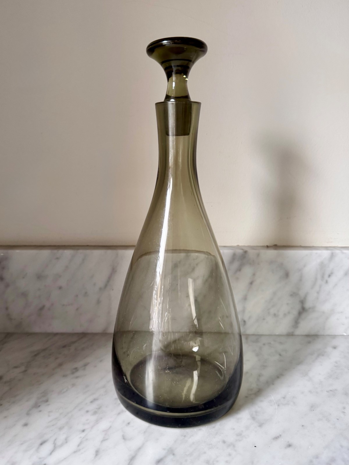Cluster of Scandinavian Mid Century smoked glass decanters