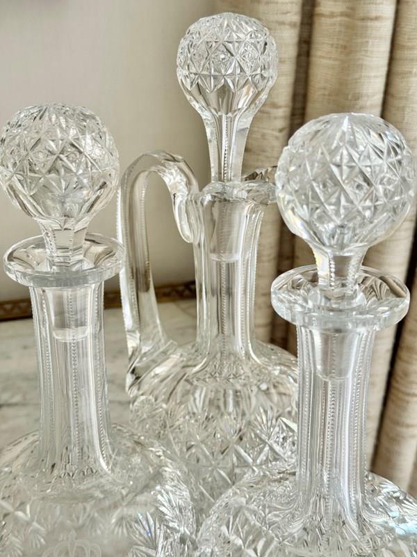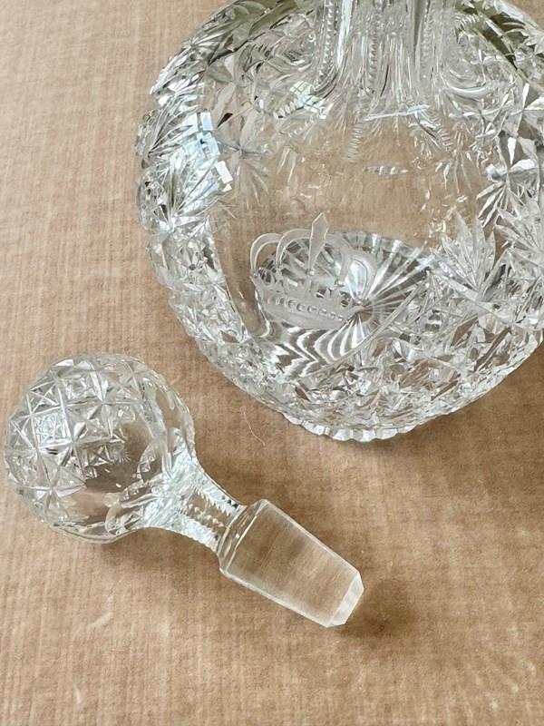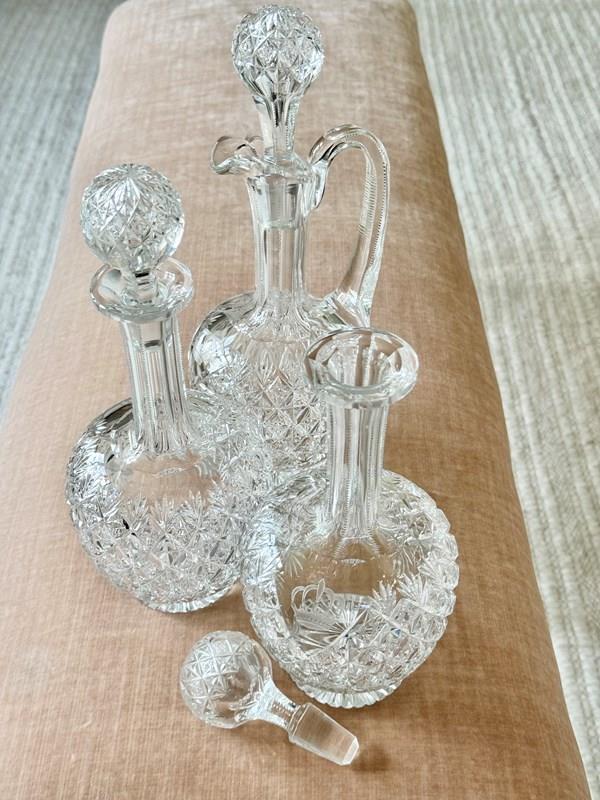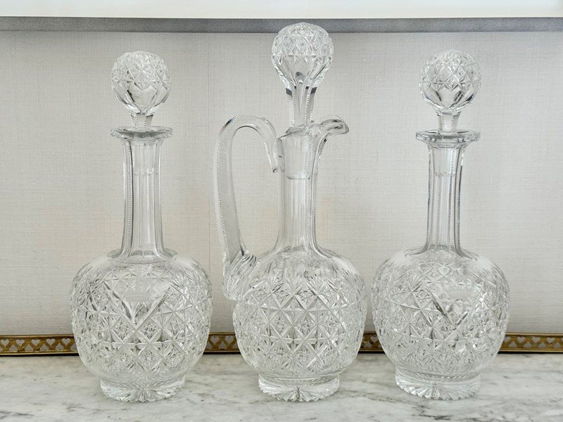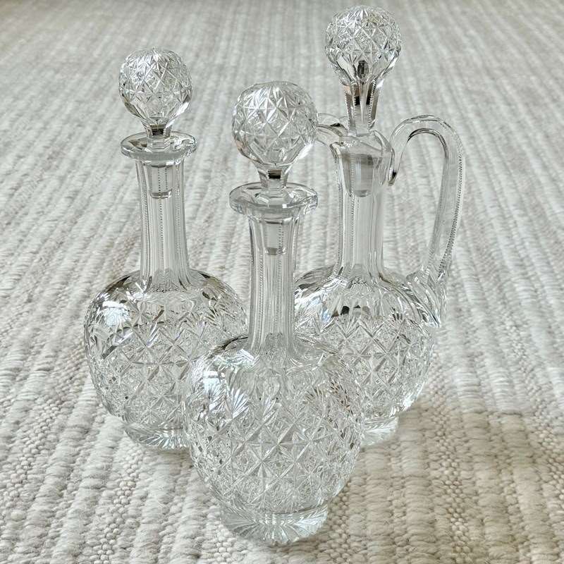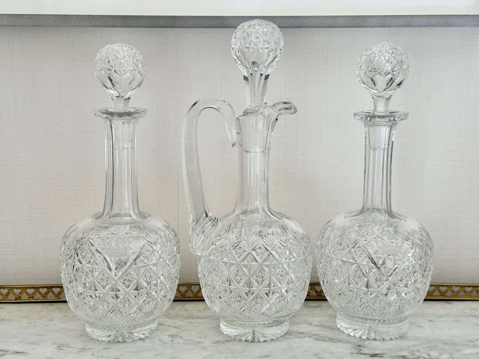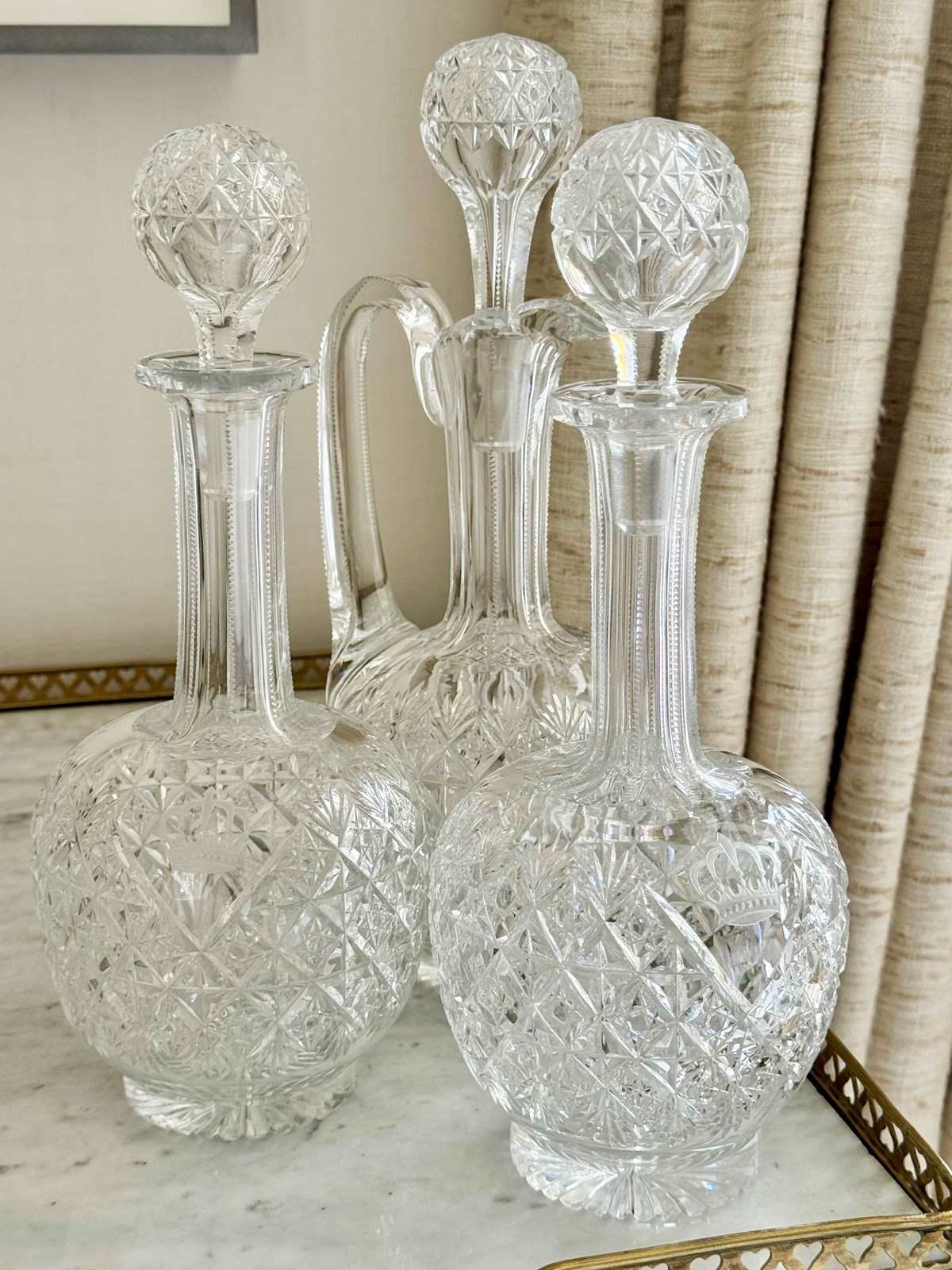 3 Crown Etched Crystal Wine Decanters By Thomas Webb