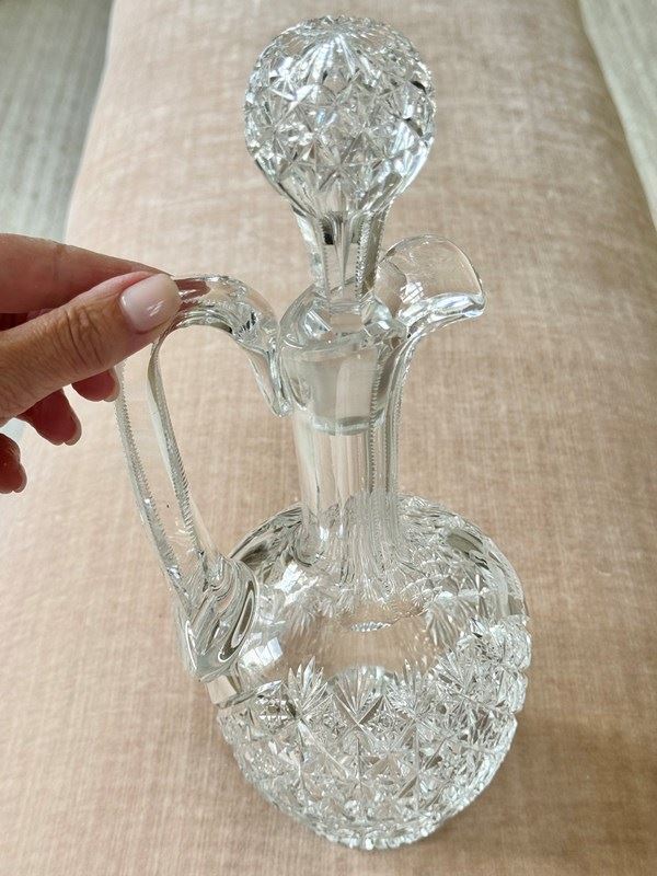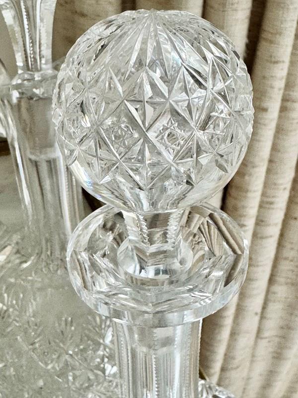 Claret jug 31cm high, 13cm diameter. Pair of Decanters 29cm high, 13cm diameter