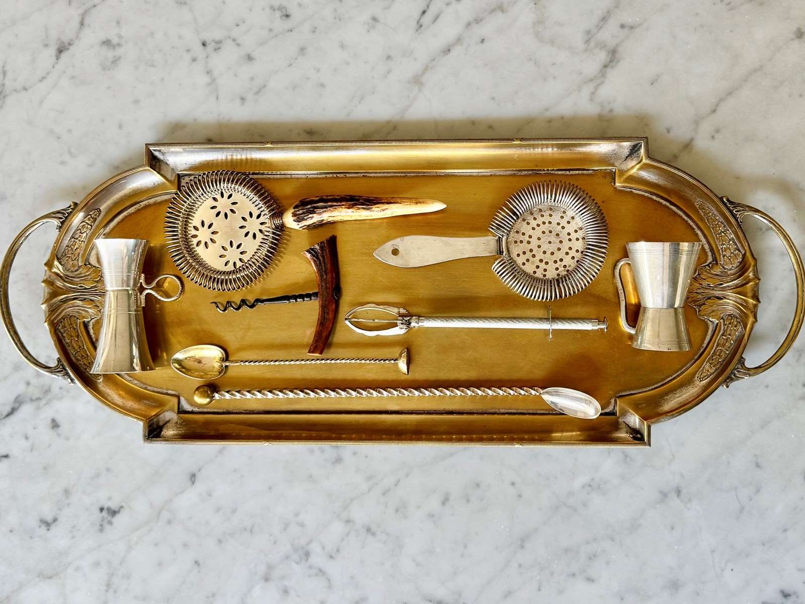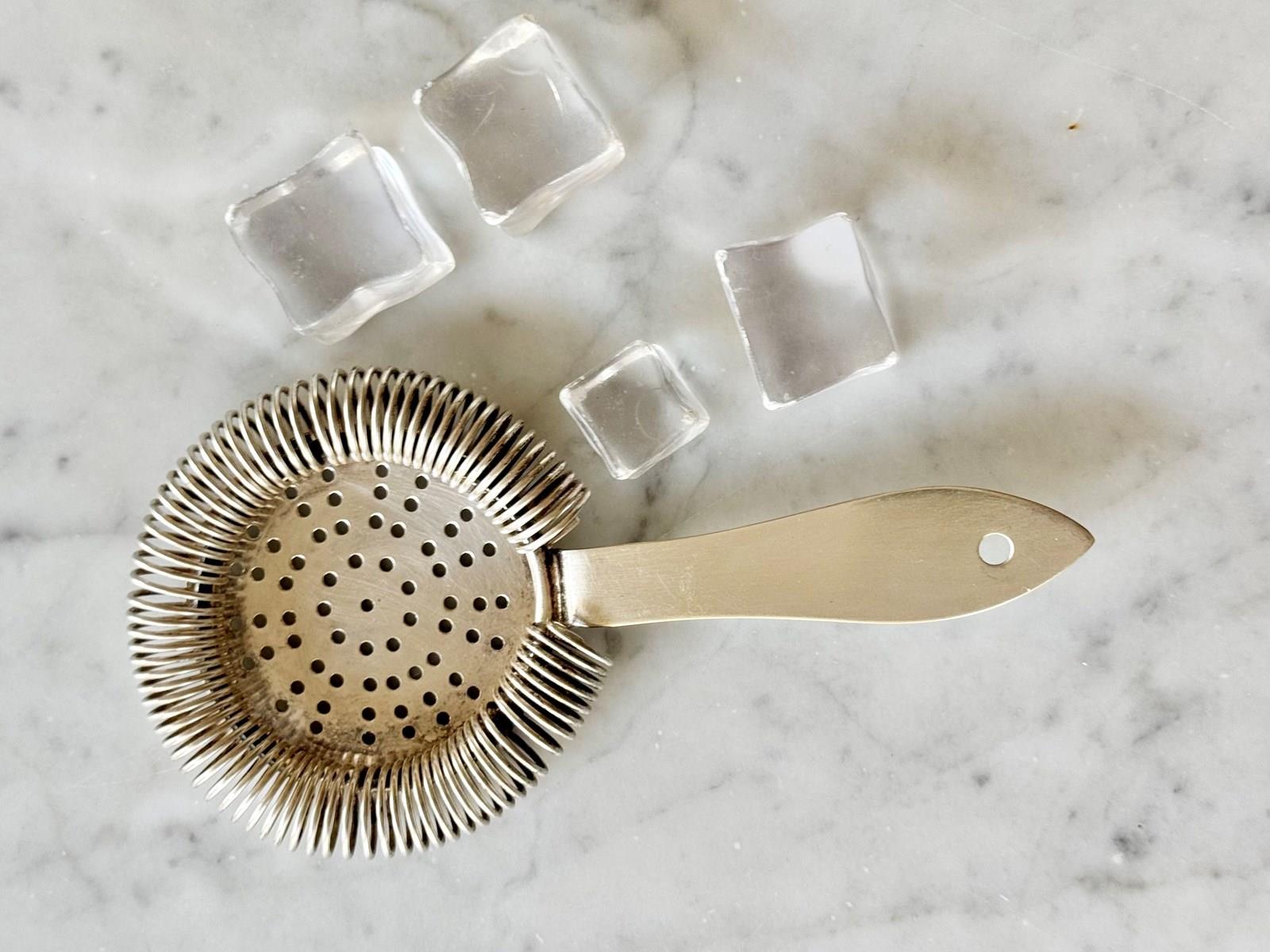 A good quality Art Deco English silver plated cocktail bar strainer, with makers mark to the handle for Gaskell & Chambers. Use when pouring from a cocktail jug to keep the ice back…