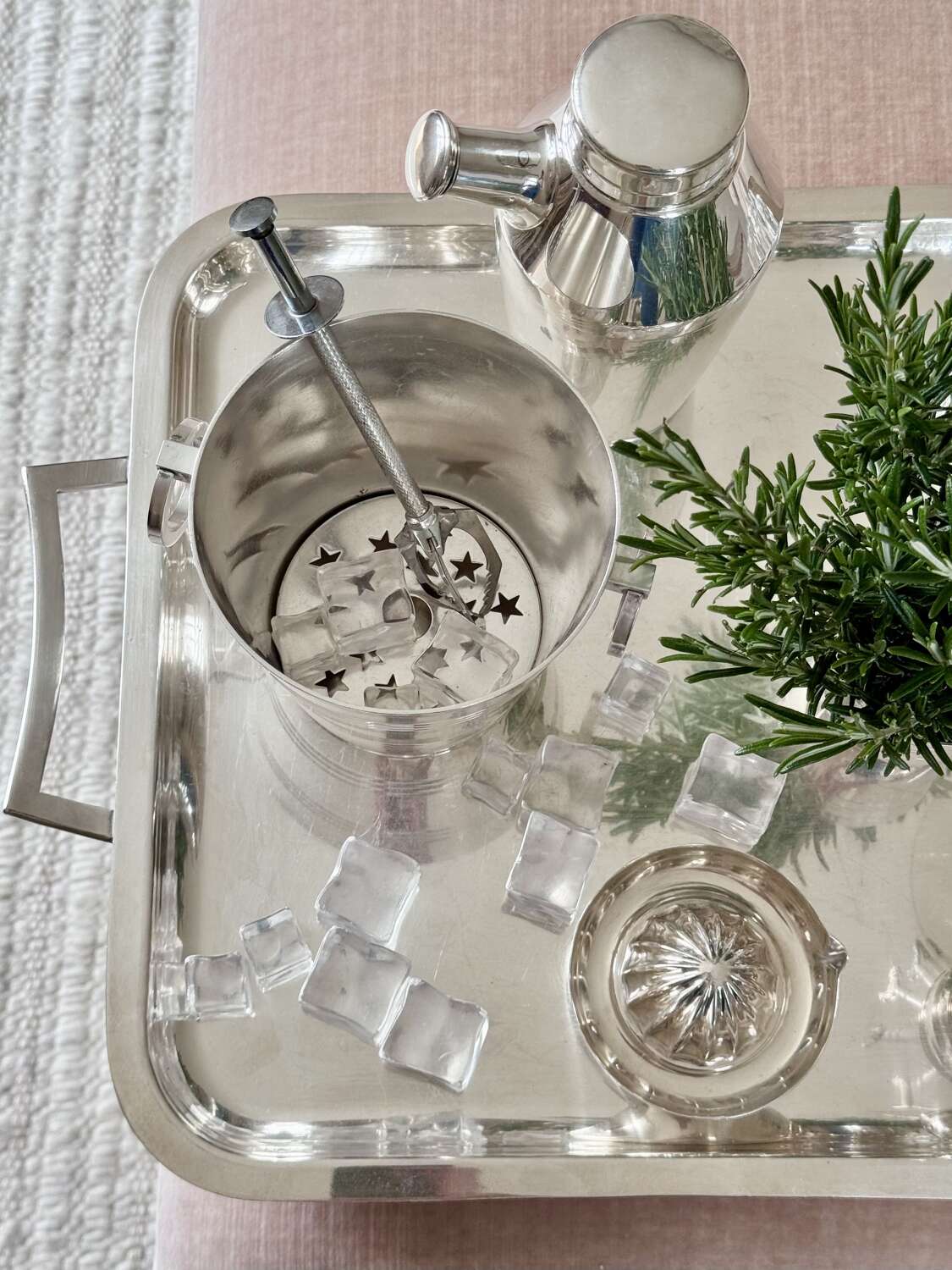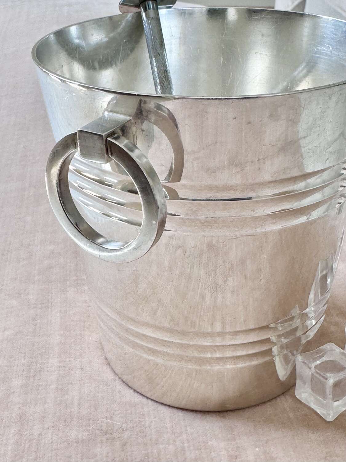 Excellent St Medard silver plated ice bucket & star cut ice melt tray C1940s