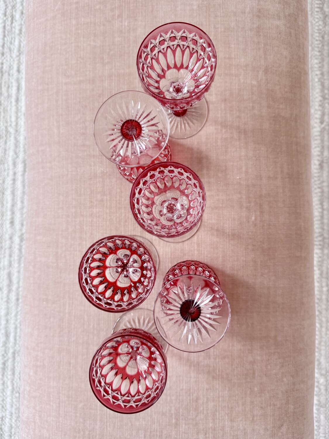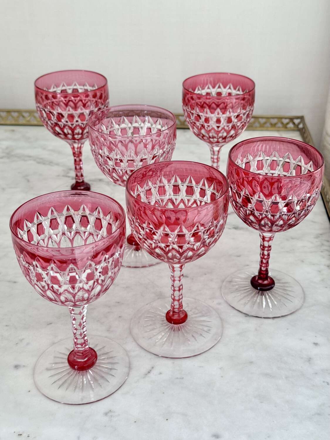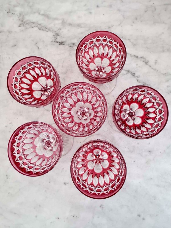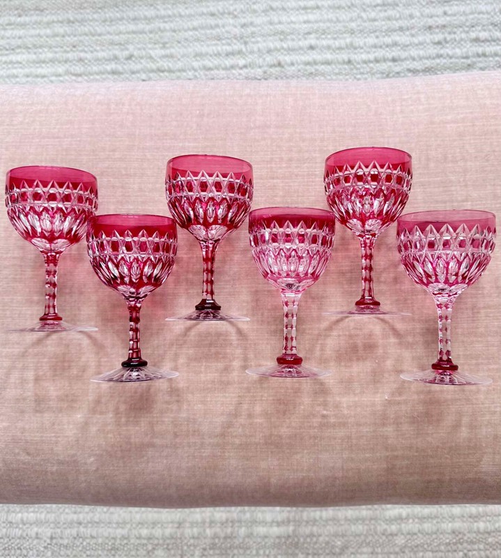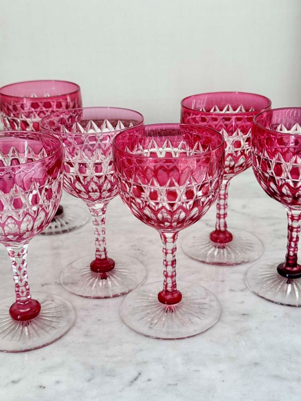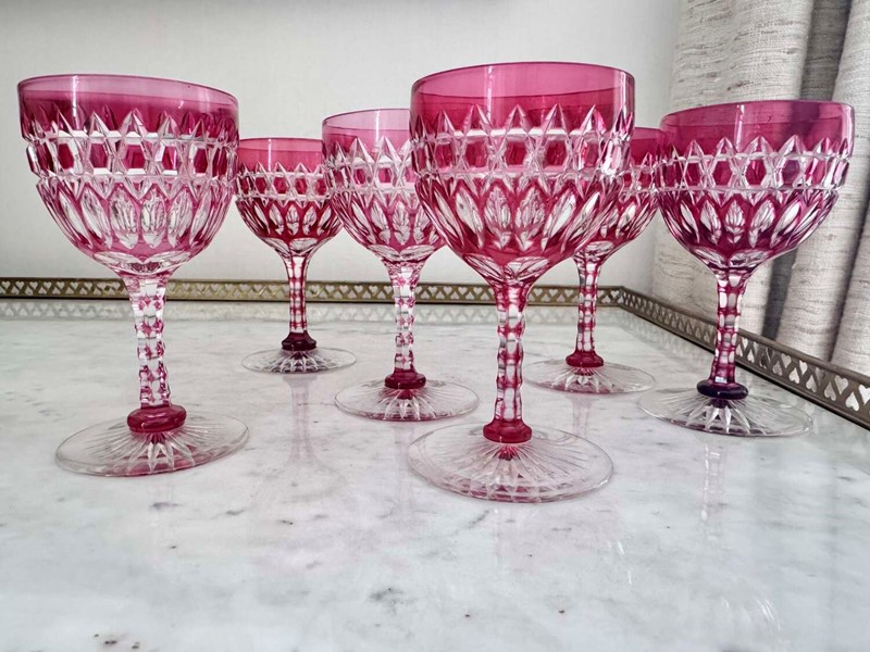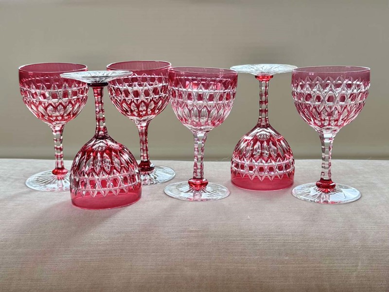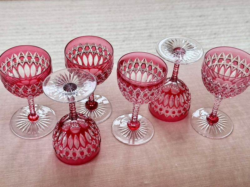 Exquisite Victorian ruby cut to clear crystal glasses C1860