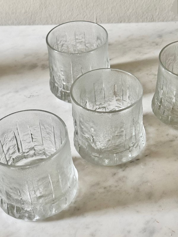 Oh, so wonderfully of their time in terms of design, this fabulous set of C1970s Scandinavian glass tumblers are perfect for whiskey, G&T or cocktails. In the manner of Tapio Wirkkala, these are great glasses to have in the home bar.