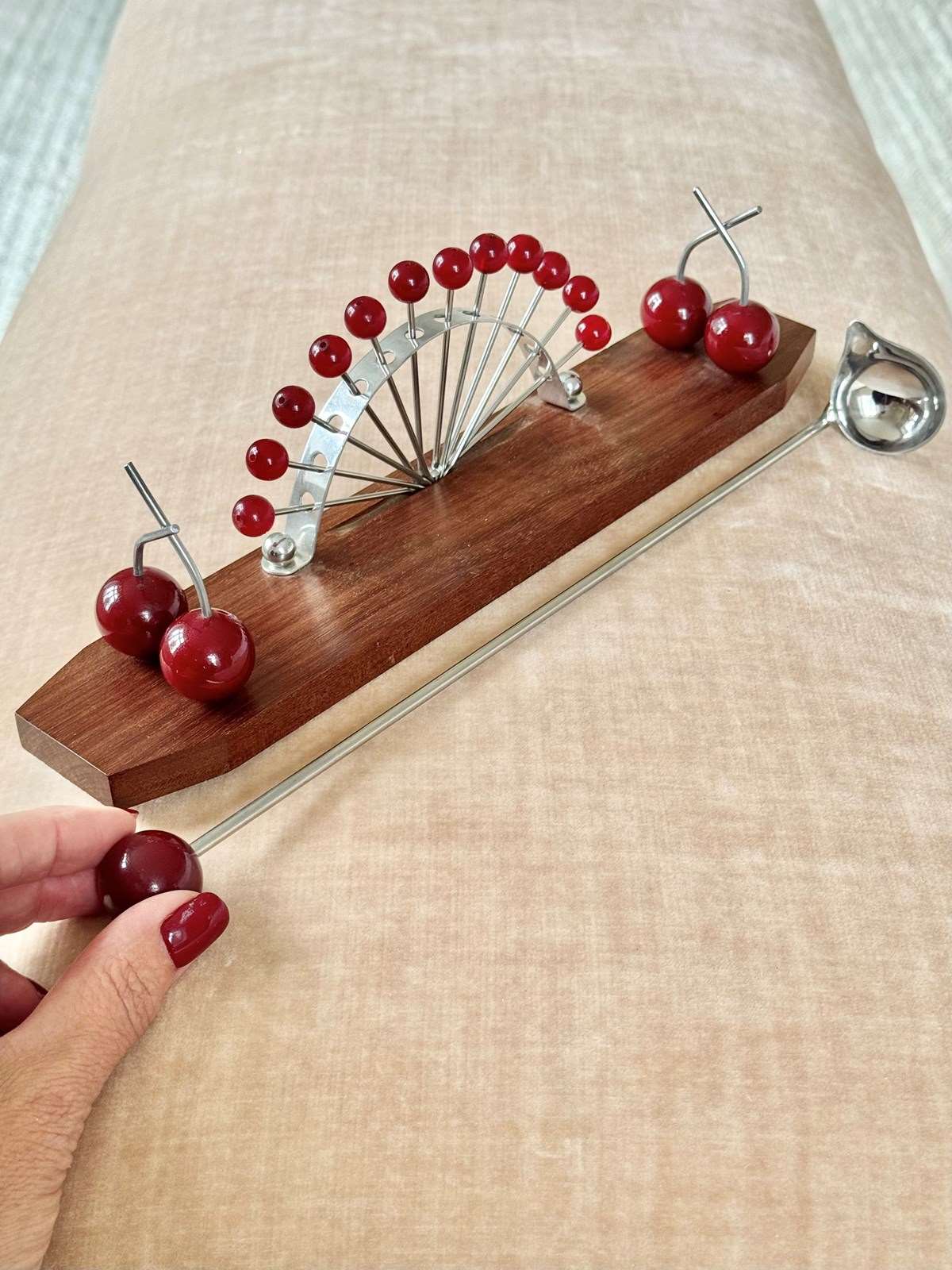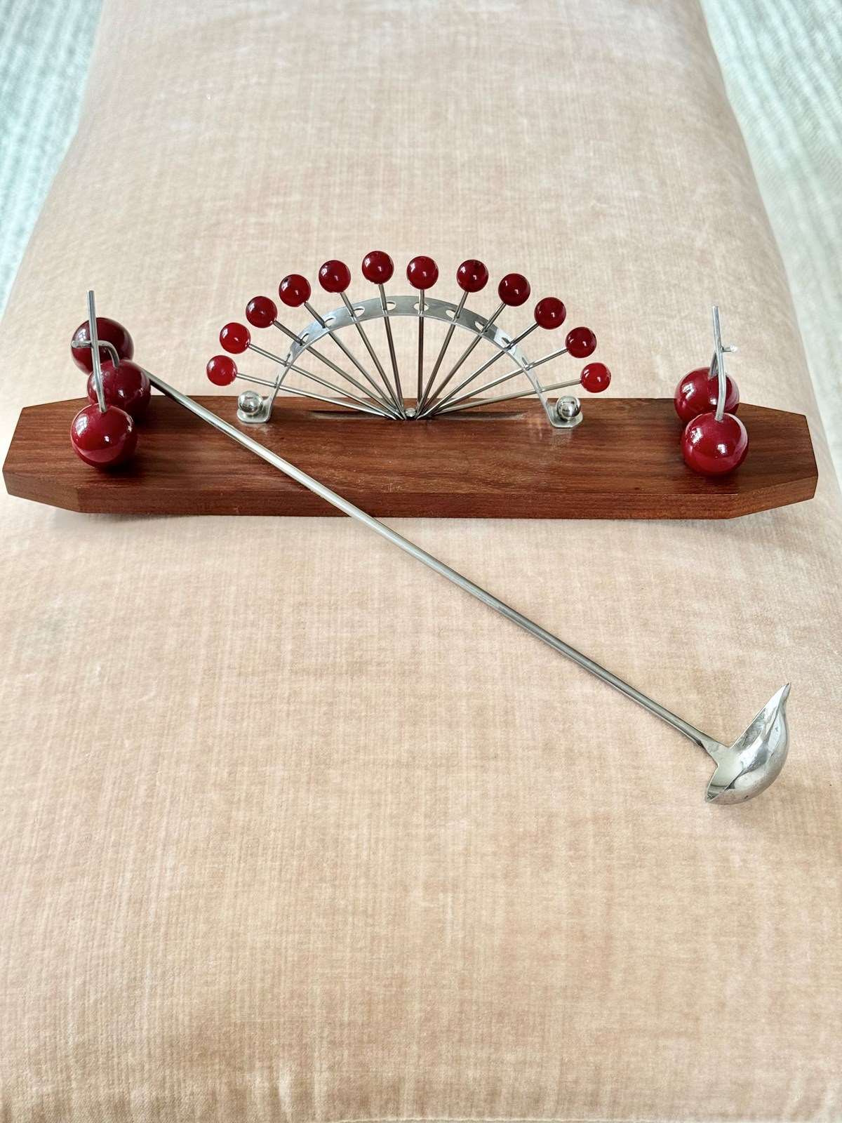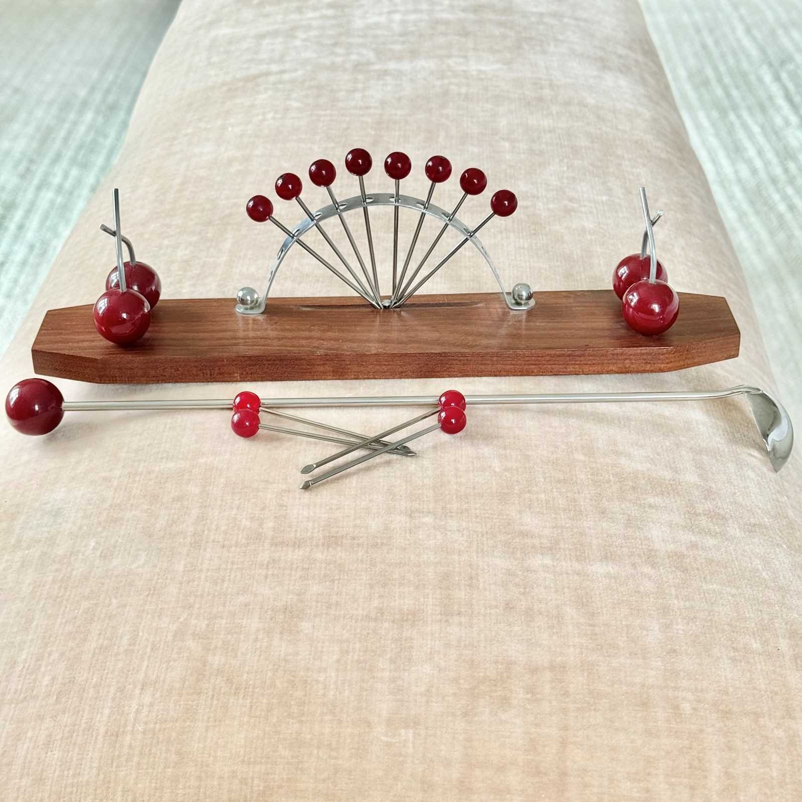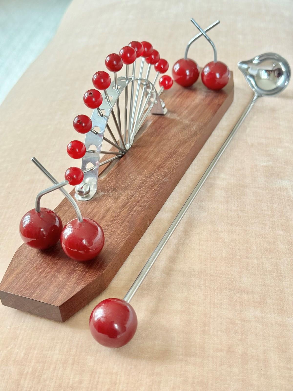 French Bakelite Cherry & Macassar Wood Cocktail Sticks Stand
