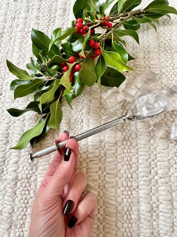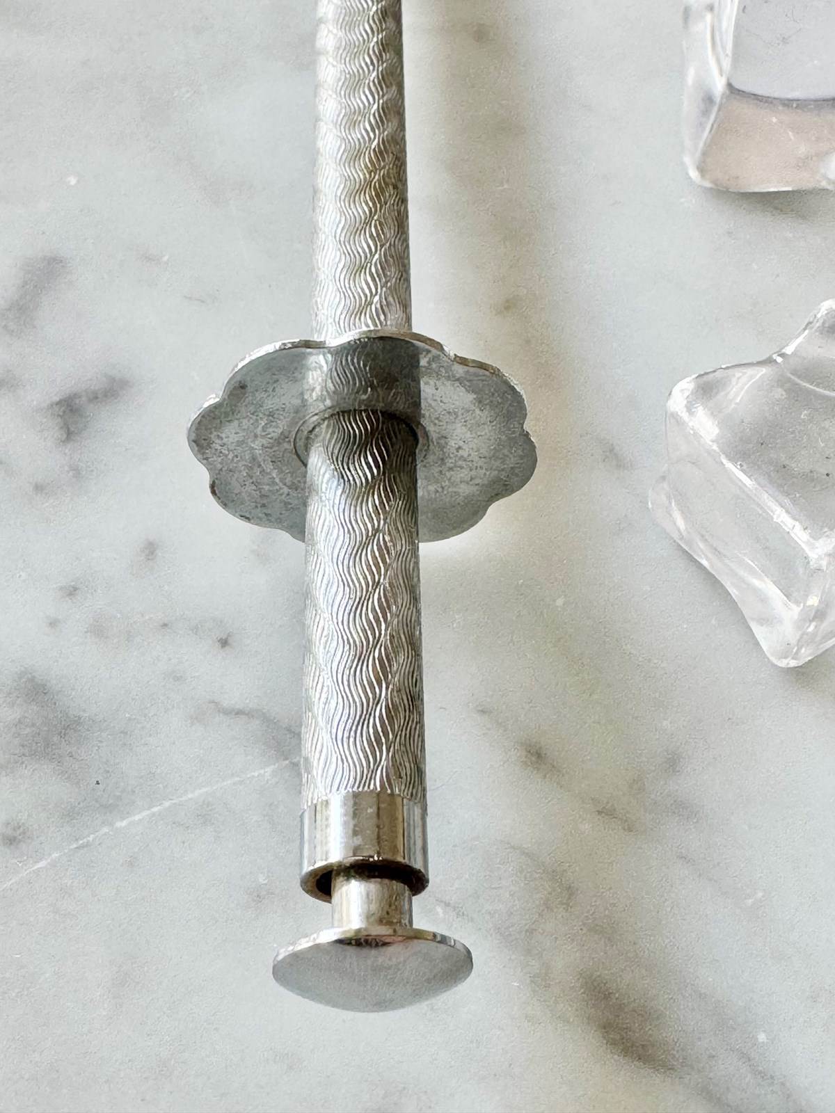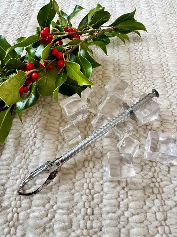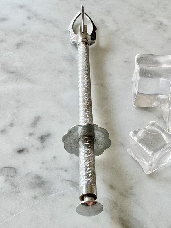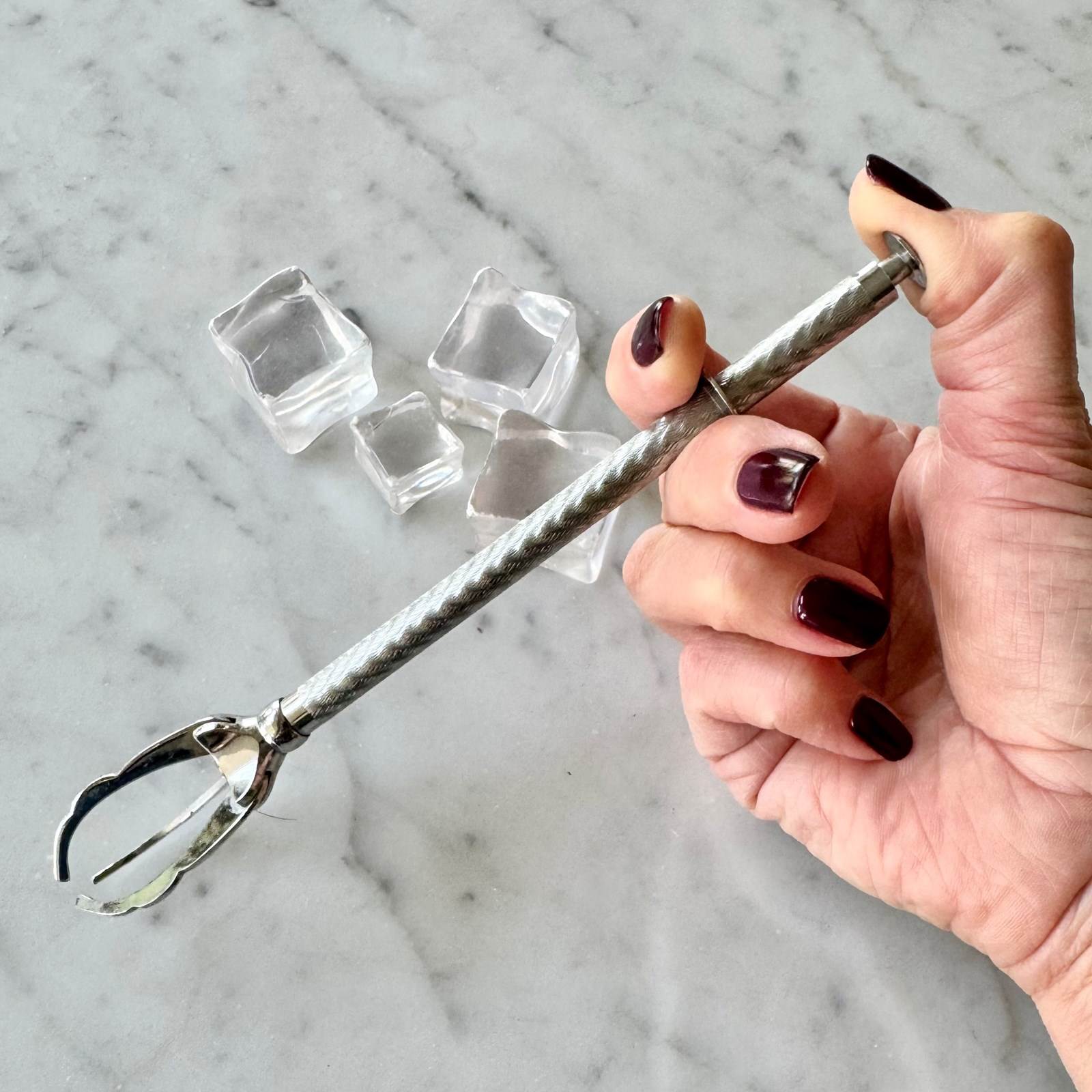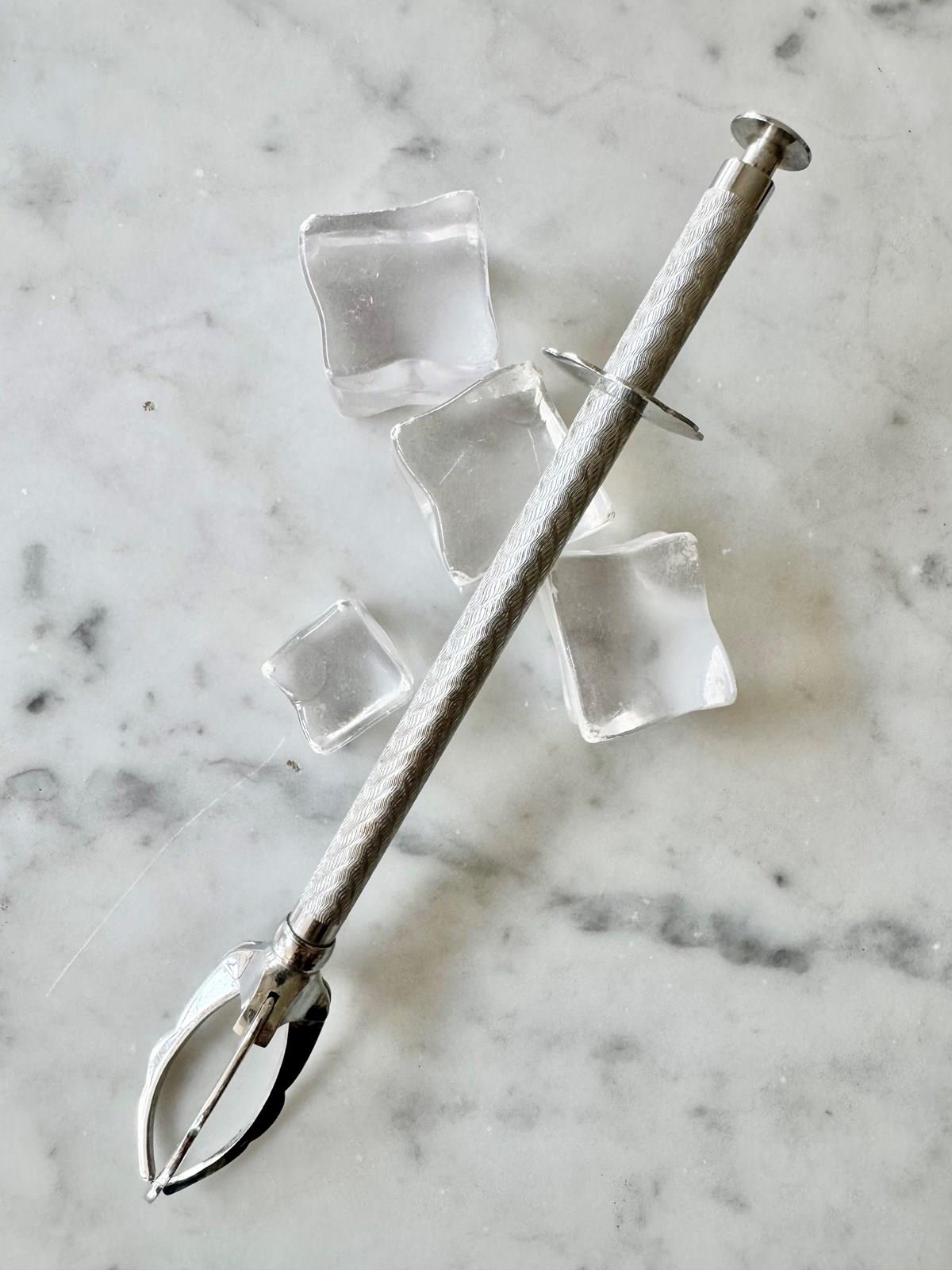 A nice quality French engine turned chrome plated set of ice grabber tongs, Circa 1950s.