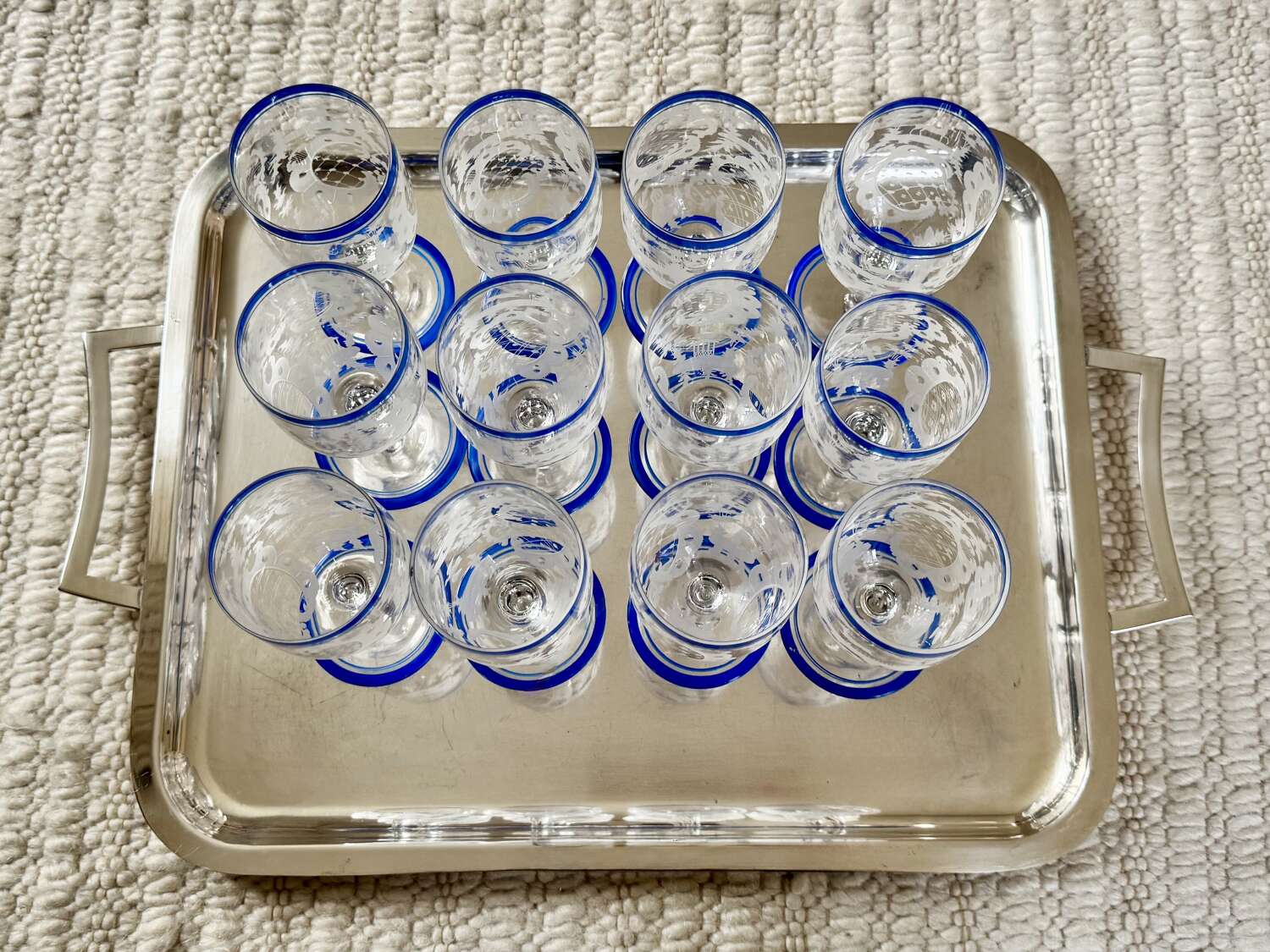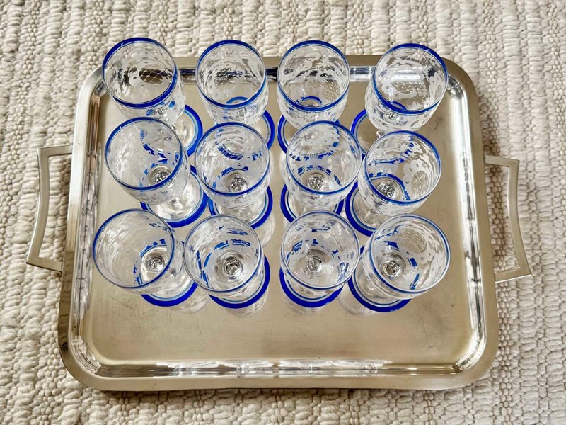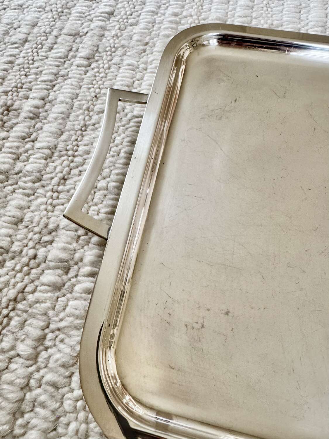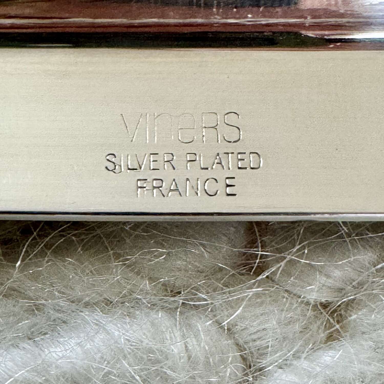 A nice quality large silver plated twin handled drinks serving tray, Circa 1960, with makers mark for Viners, France. Unusually, this renowned English silver brand branched out to France during the 1960s and for a short time, these pieces bore the makers mark based in France rather than England. Modernist in design, this simple tray would work well in any home setting.