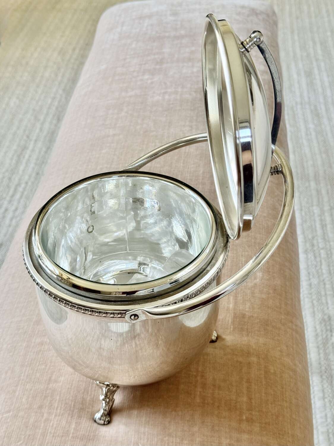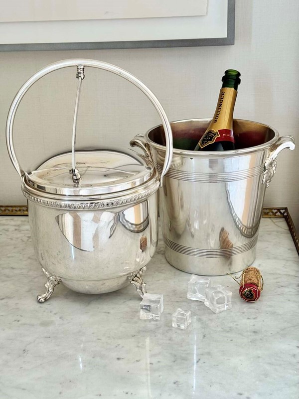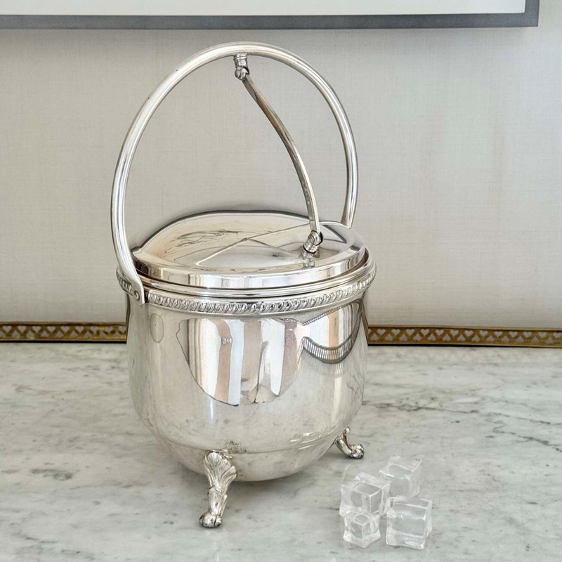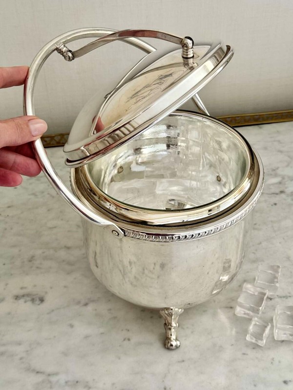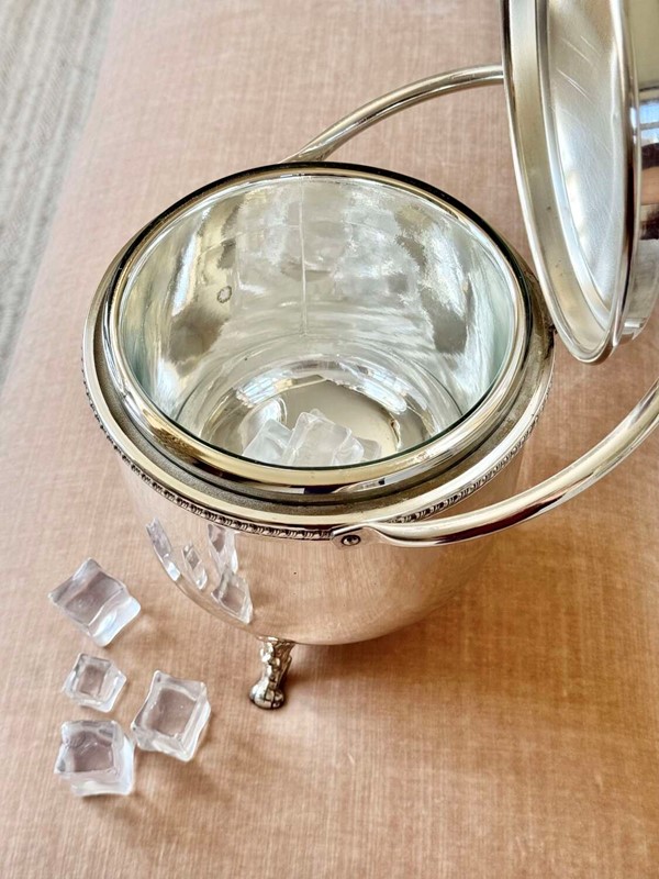 Large Vintage 1950S Silver Plated Hinged Thermal Ice Bucket