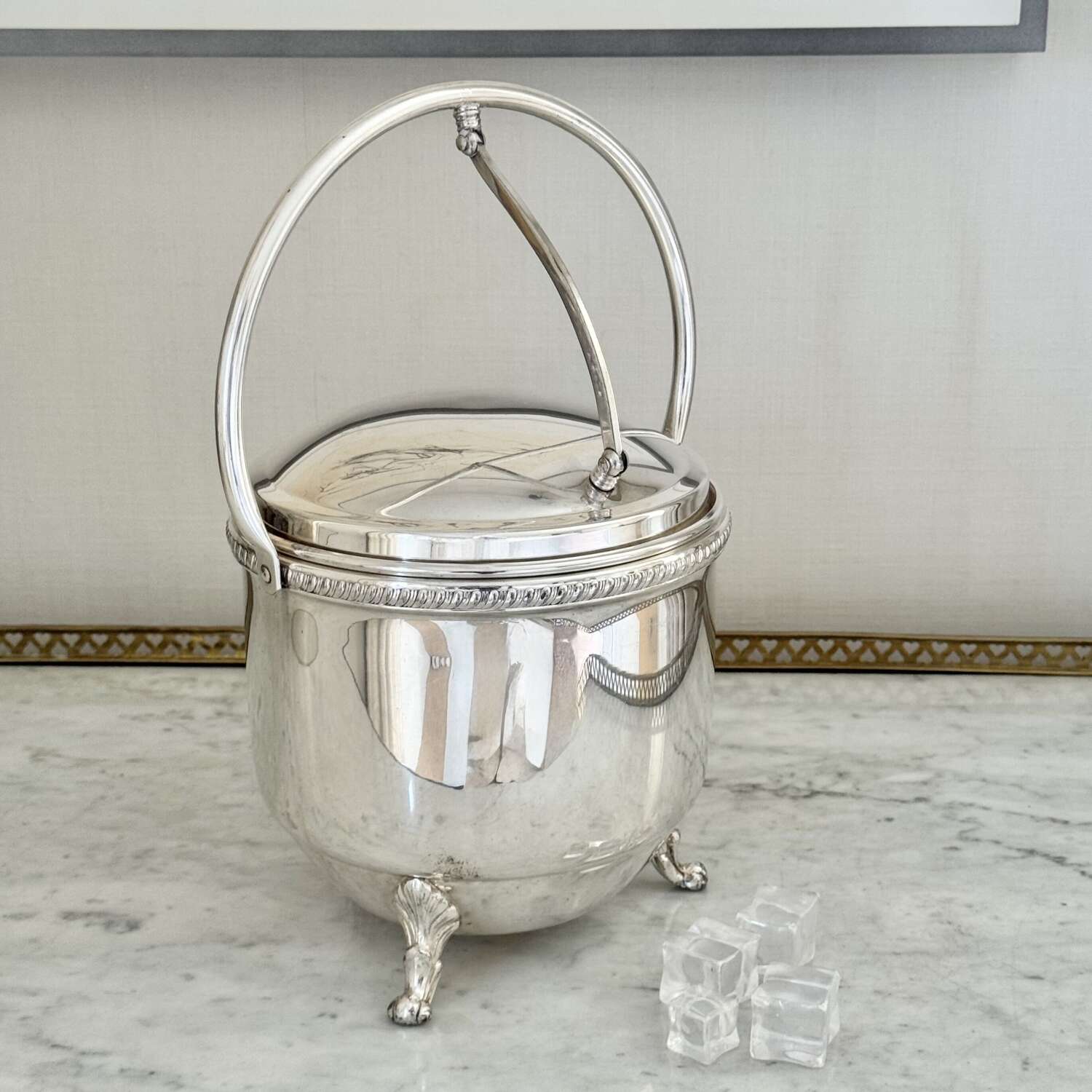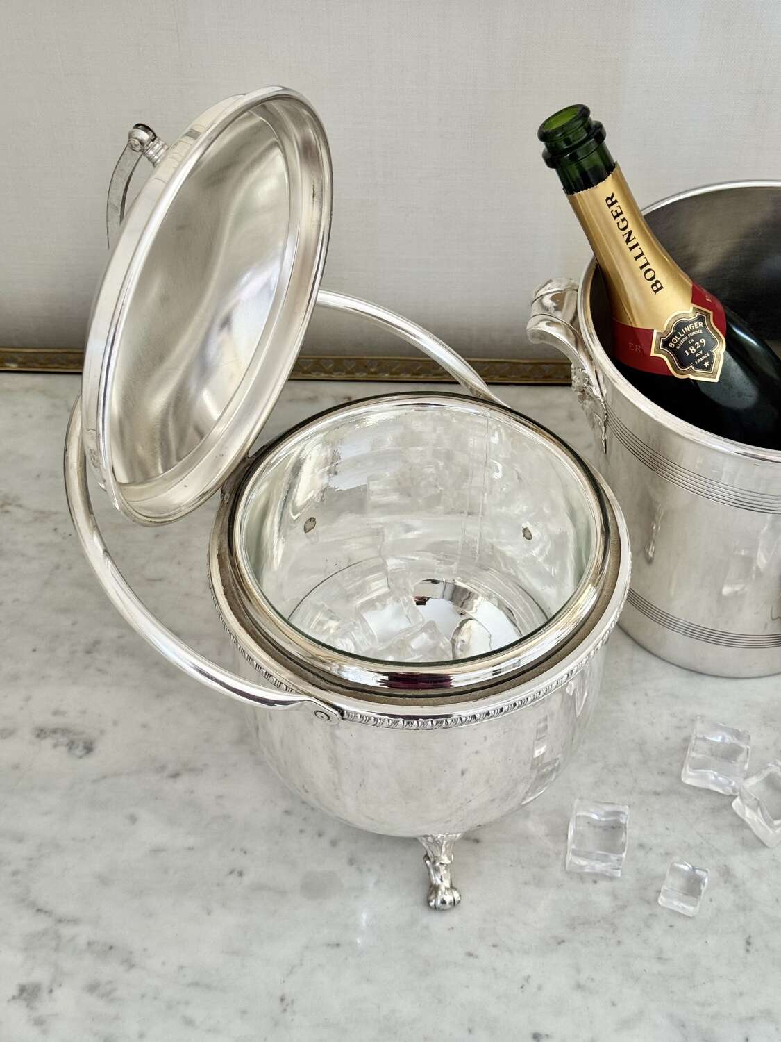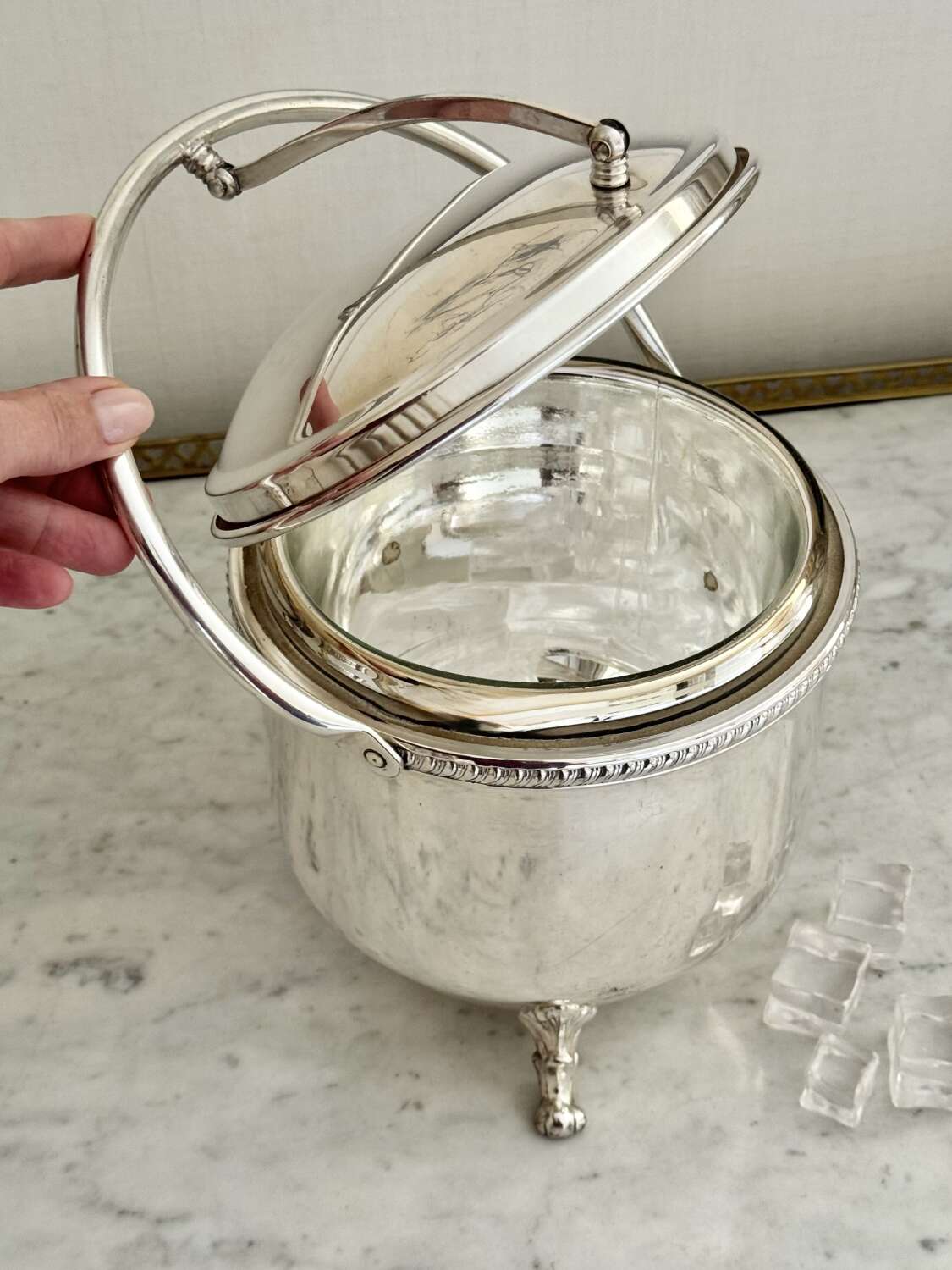 Large Vintage 1950S Silver Plated Hinged Thermal Ice Bucket