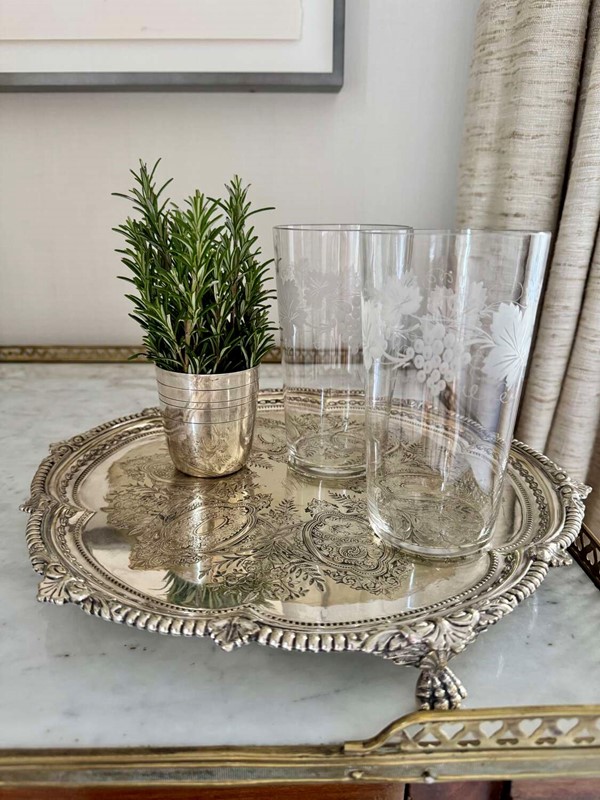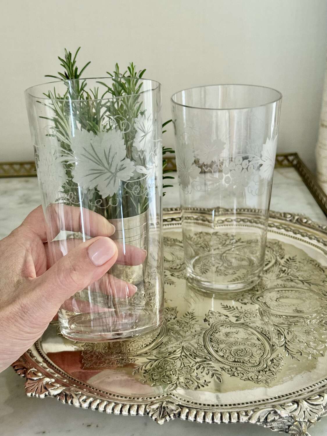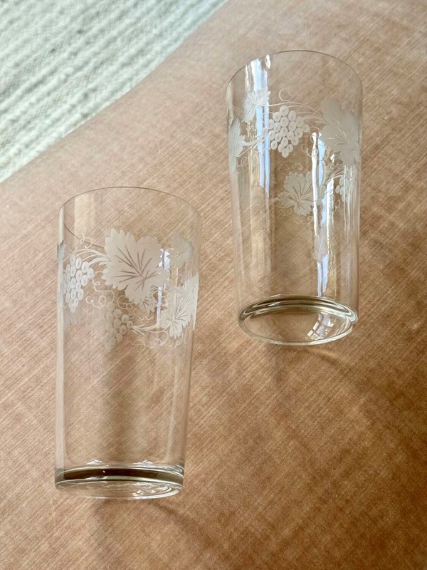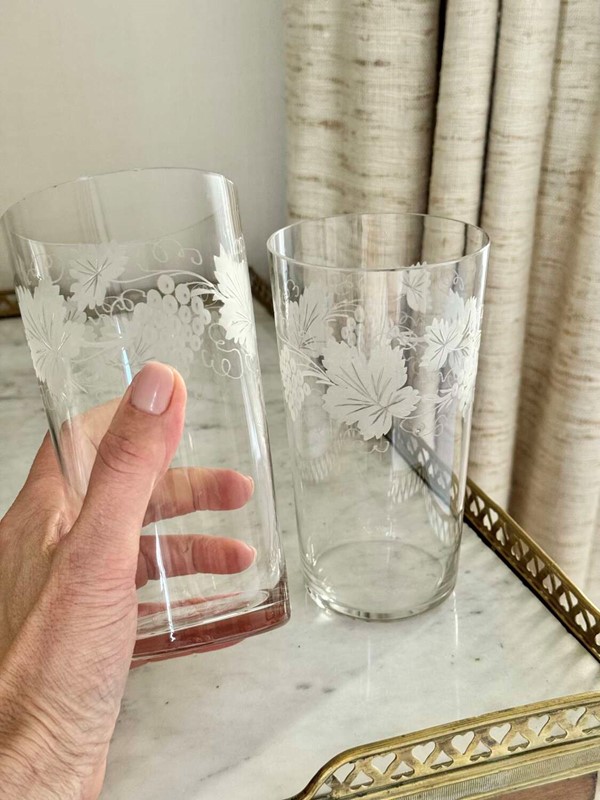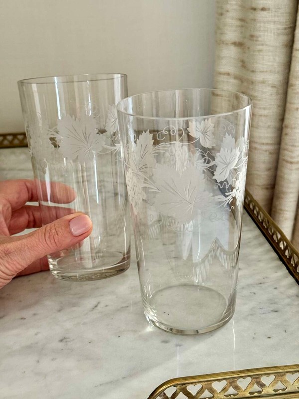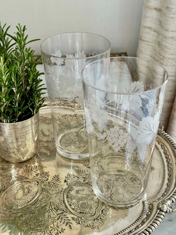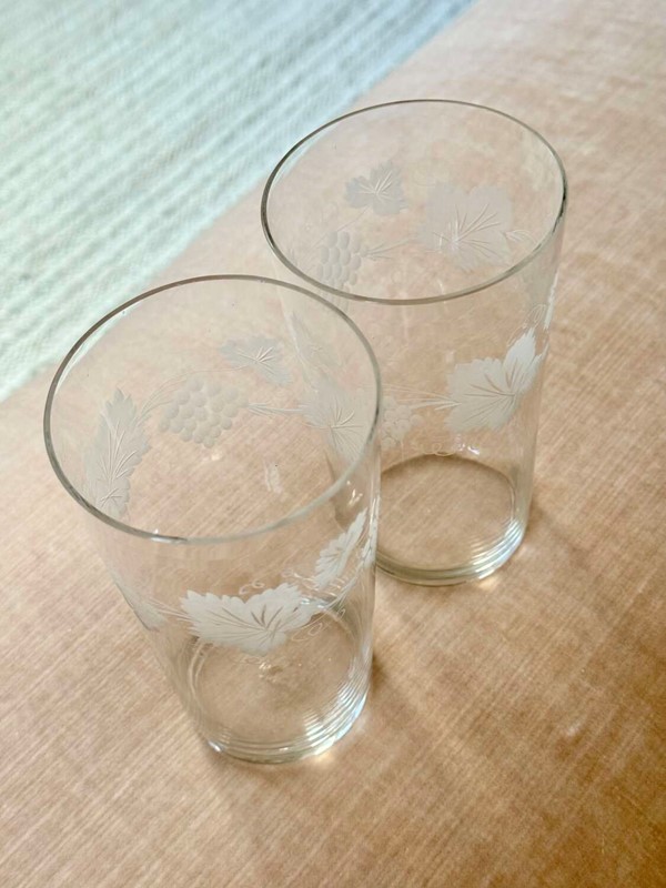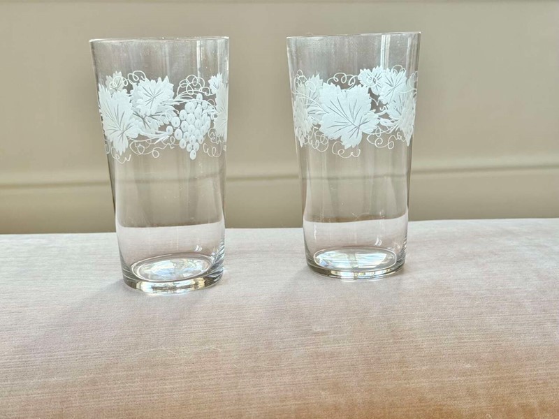 Pair of 19th Century vine etched 1 pint ale tumblers