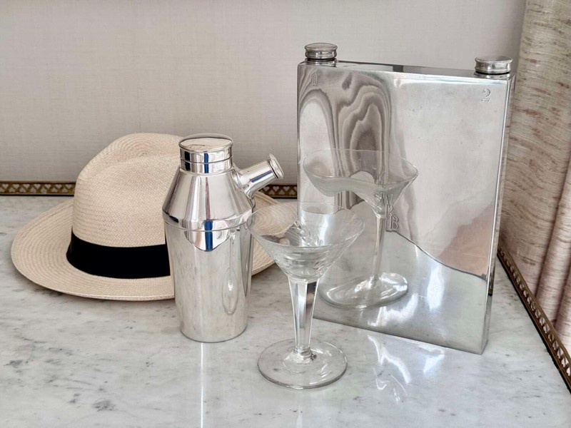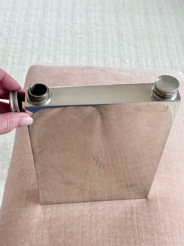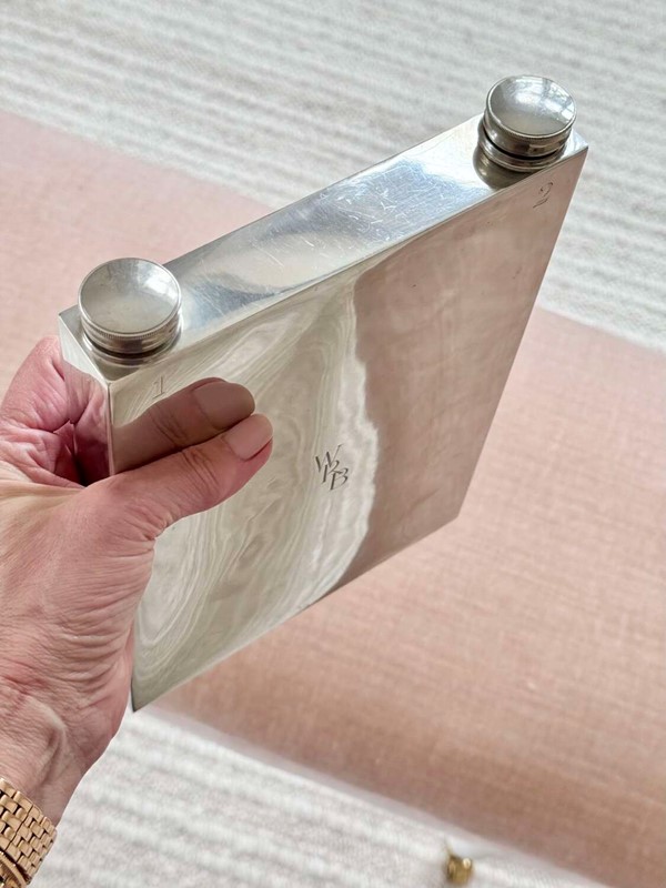 Rare Art Deco silver plated giant double hip flask by James Dixon & Sons